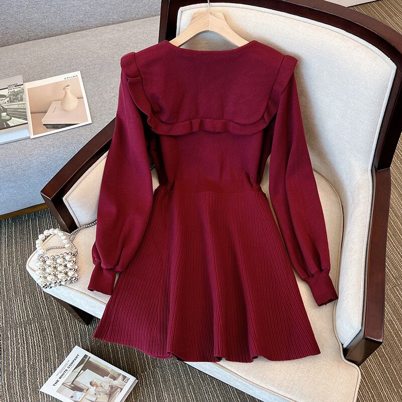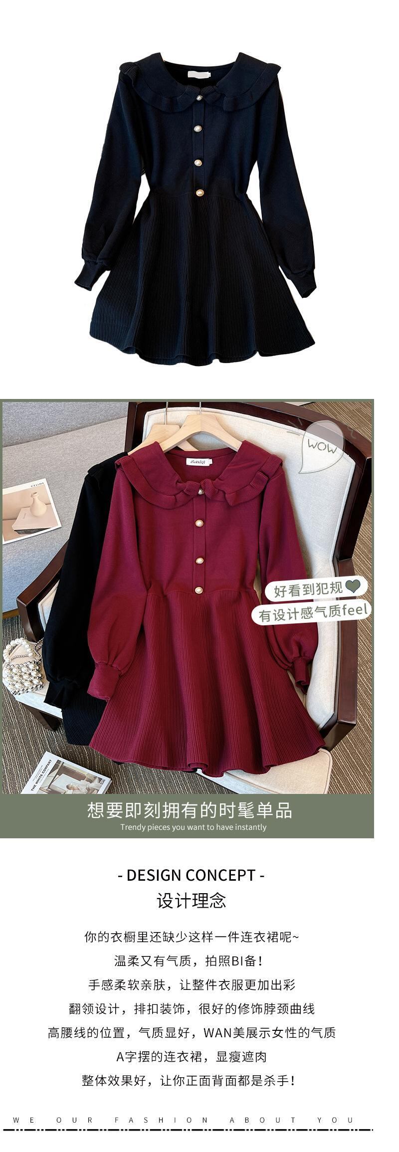 プラスサイズの婦人服 2023 ファットシスター春の新しいファッションウエスト縮小と年齢を減らす痩身底入れニットセータードレス 大きめサイズ スプリング 春物 8884186992621769