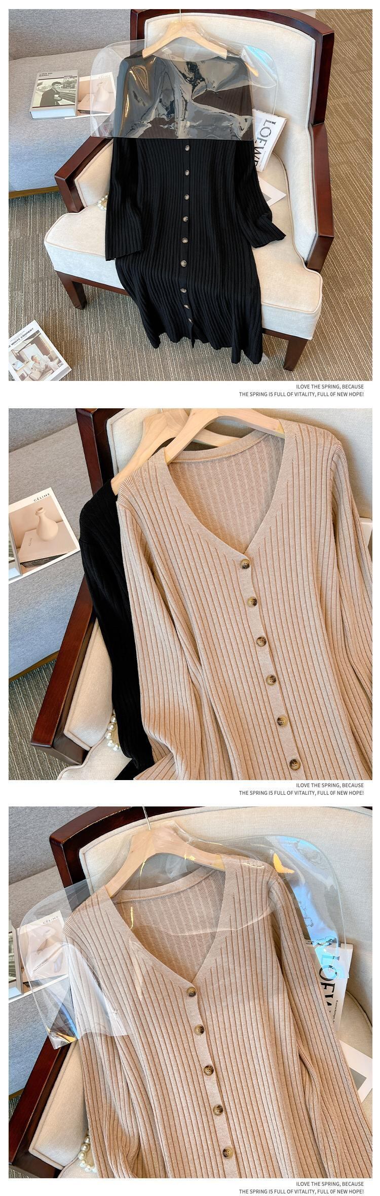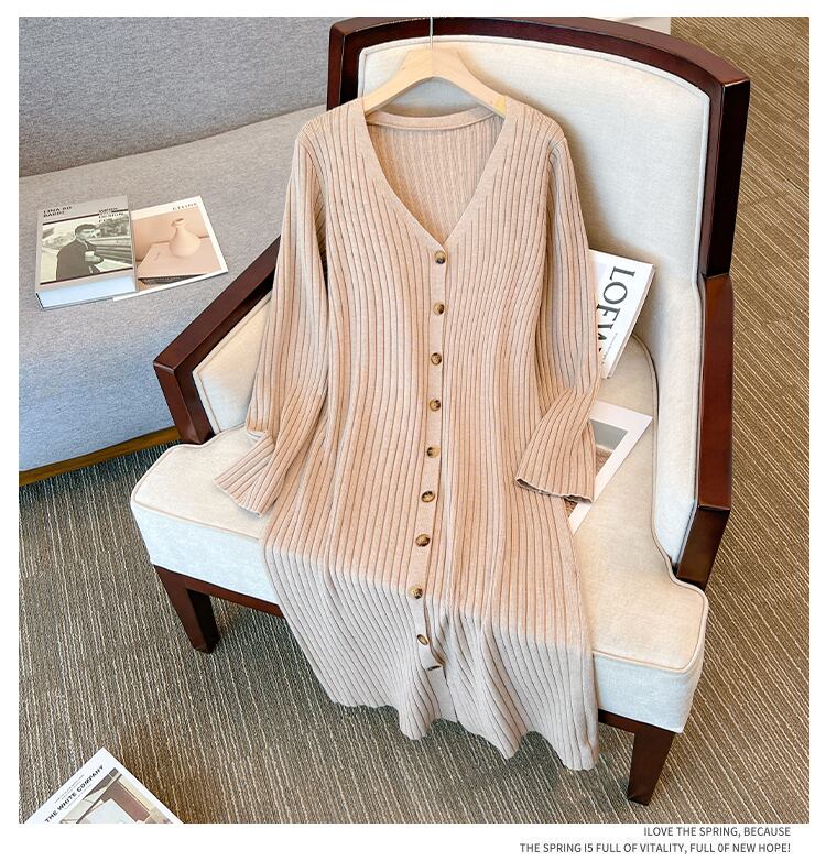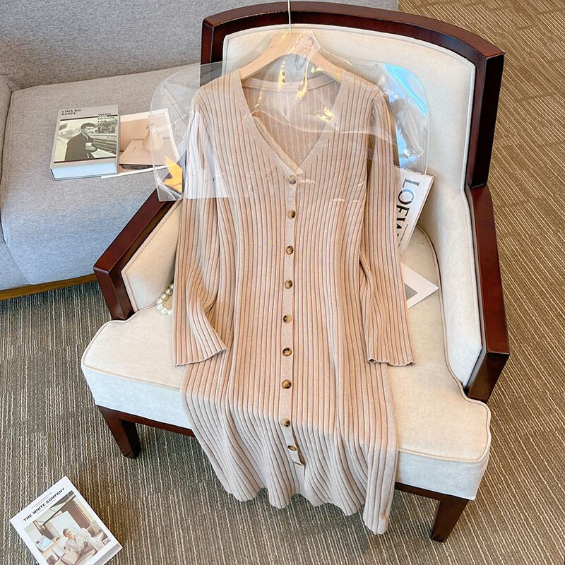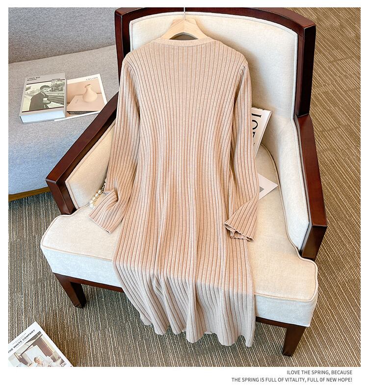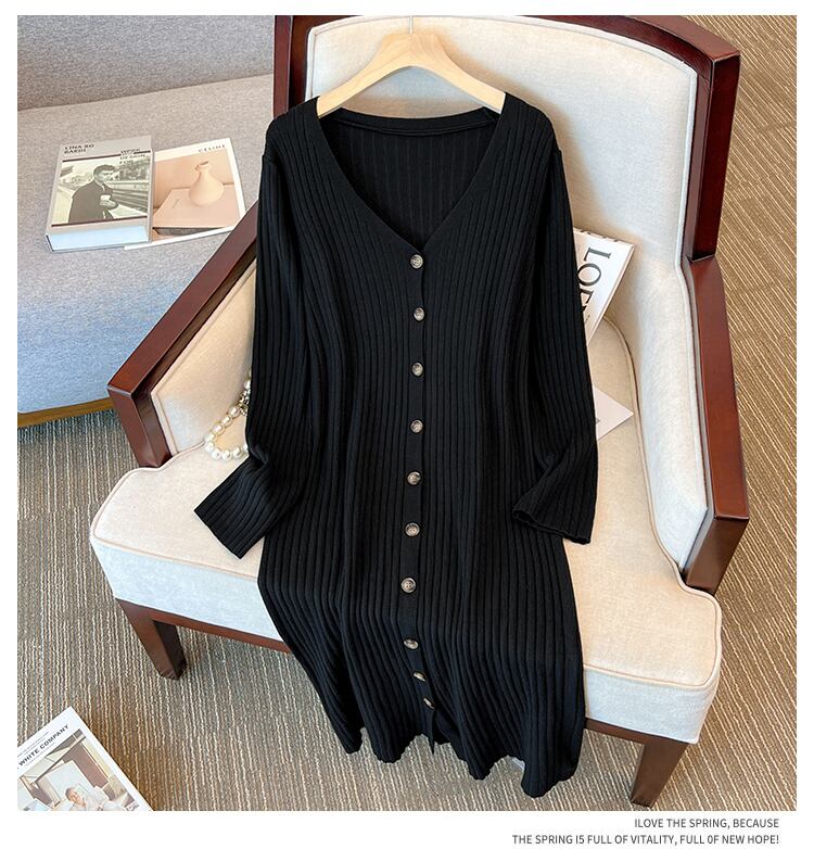 プラスサイズの婦人服2023春のスタイルの太った新しいスタイルの太った姉妹は、薄い気質のソリッドカラーのニットシックなカジュアルドレスに見えます 大きめサイズ スプリング 春物 8884142920040609
