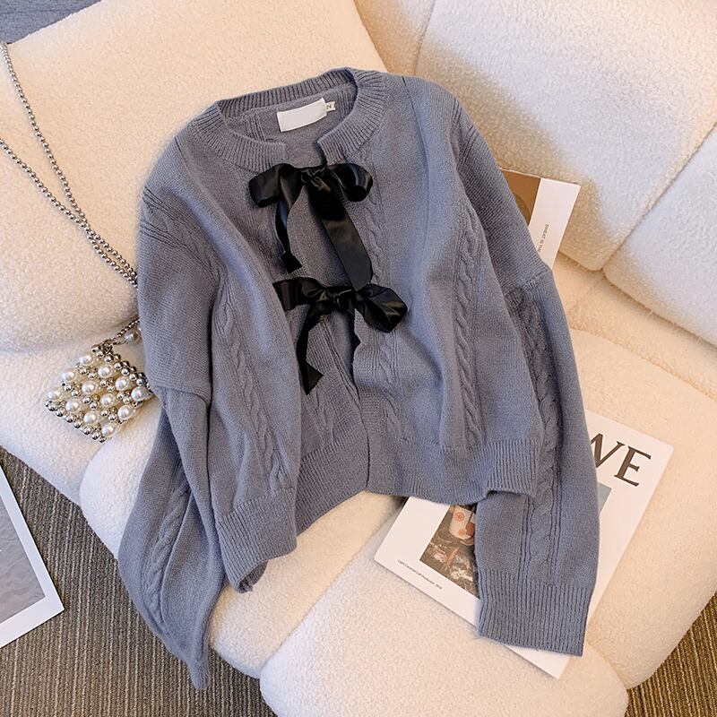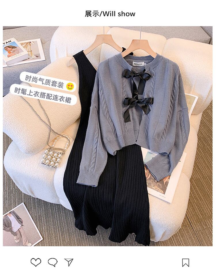 プラスサイズの婦人服 2023 ファットシスター春の新気質ちょうニットセータードレスツーピーススーツ リボン 大きめサイズ スプリング 春物 8884189037544976