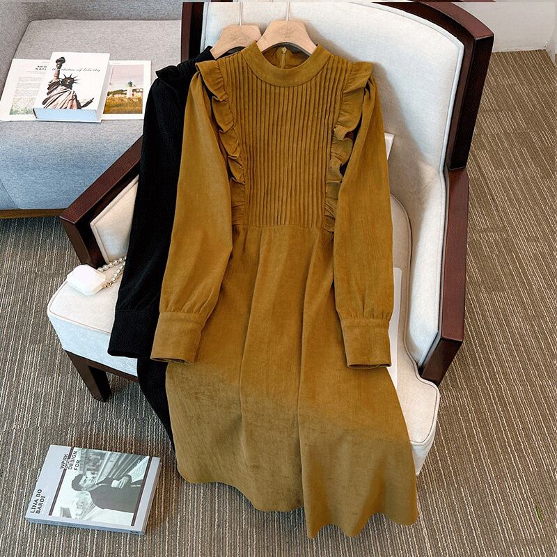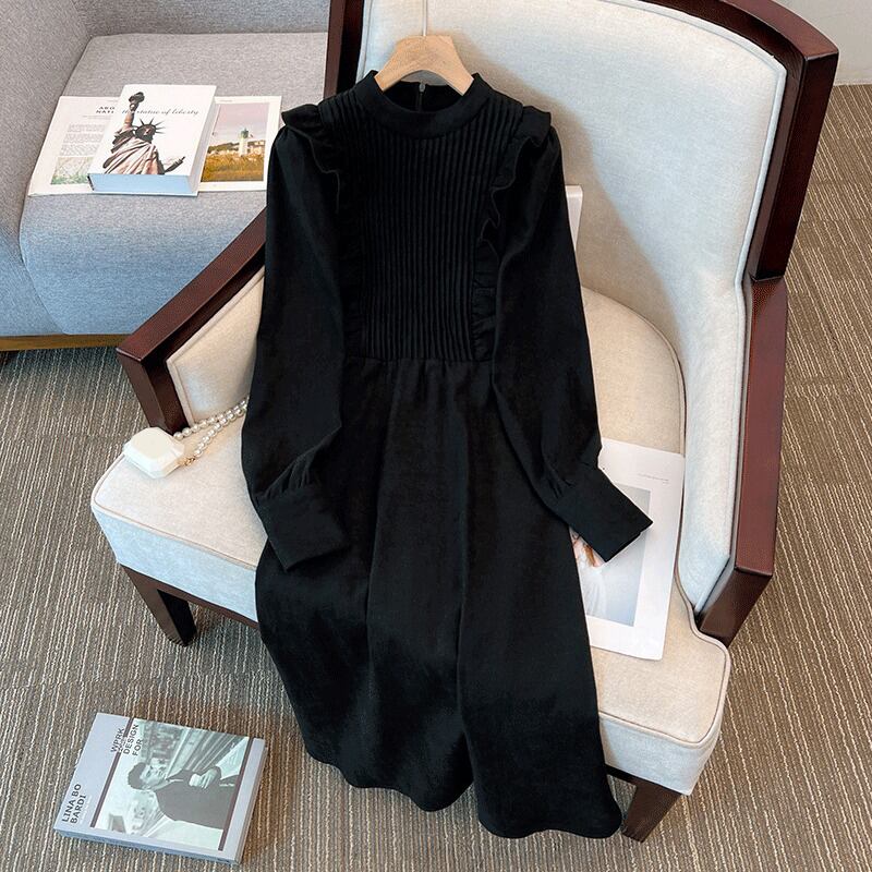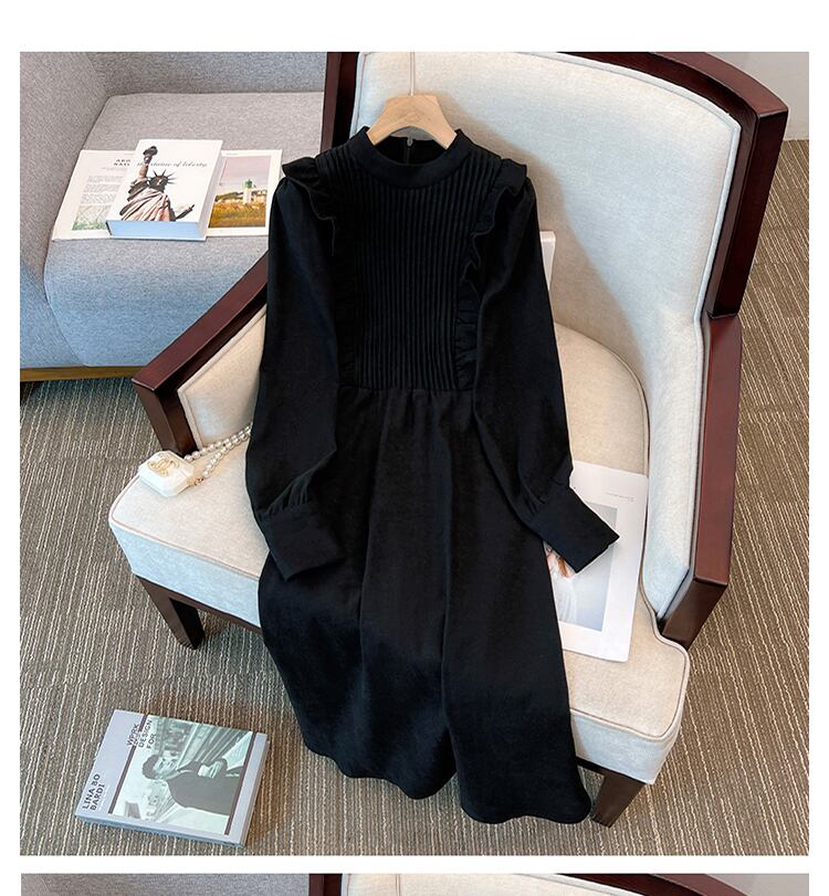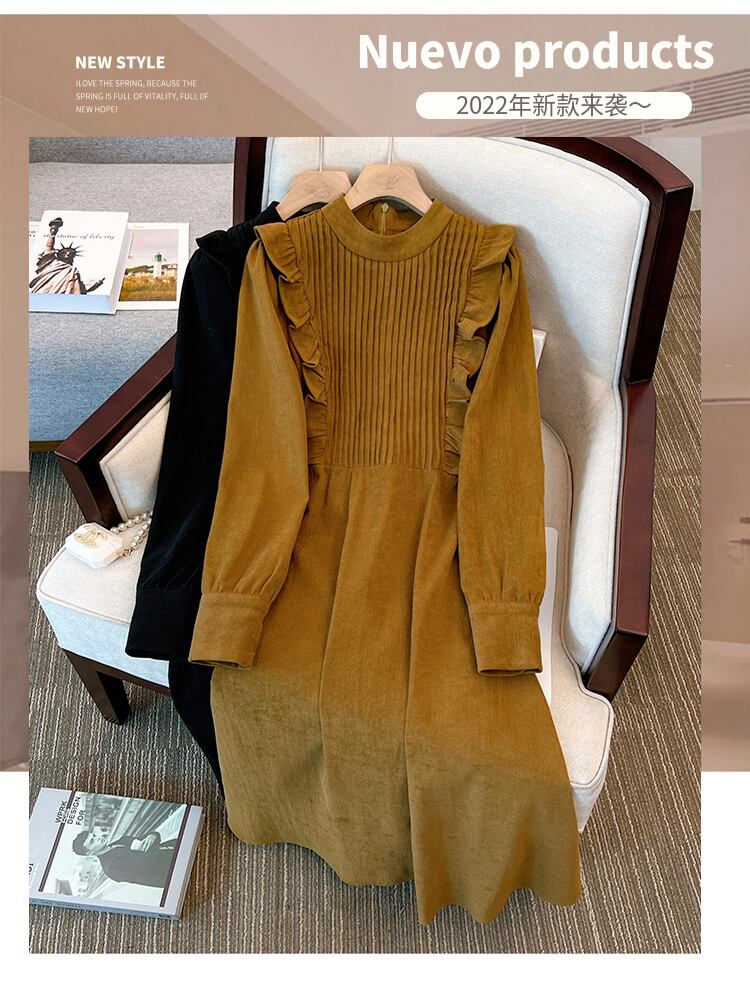 大きいサイズの婦人服 2023 春の新しい太った姉妹のデザインのファッションの年齢を減らすプリーツの木製の耳のドレスのスカート 大きめサイズ スプリング 春物 8884147998408941