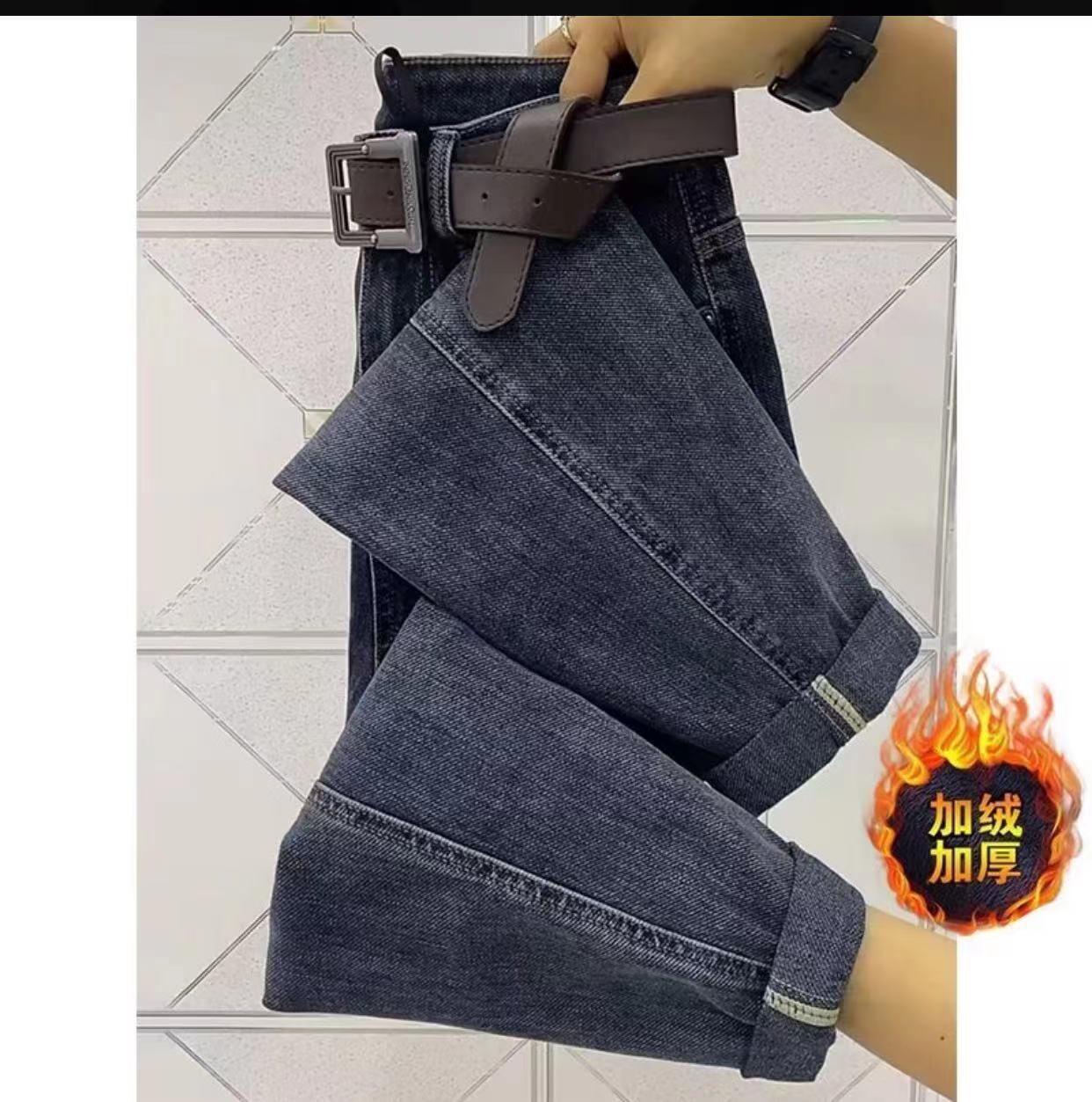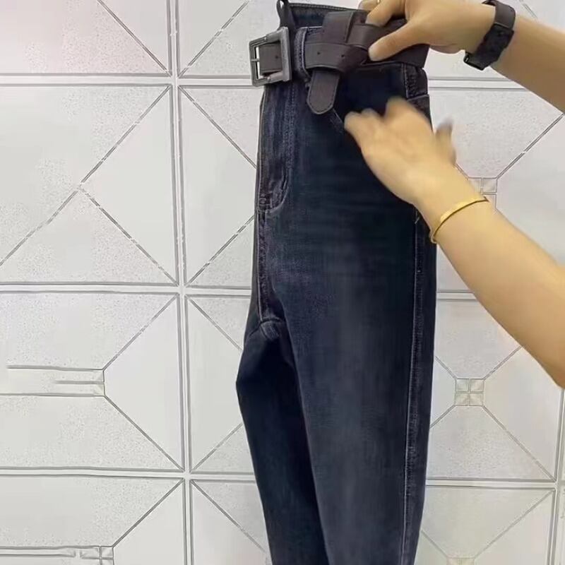 プラスサイズの女性のハーレムデニムバギーパンツ女性の 2023 春の新プラスベルベットスリムハイウエストストレートルーズパパパンツ ハイウェスト 大きめサイズ スプリング 春物 8884181335318337