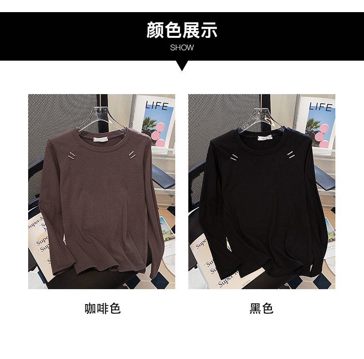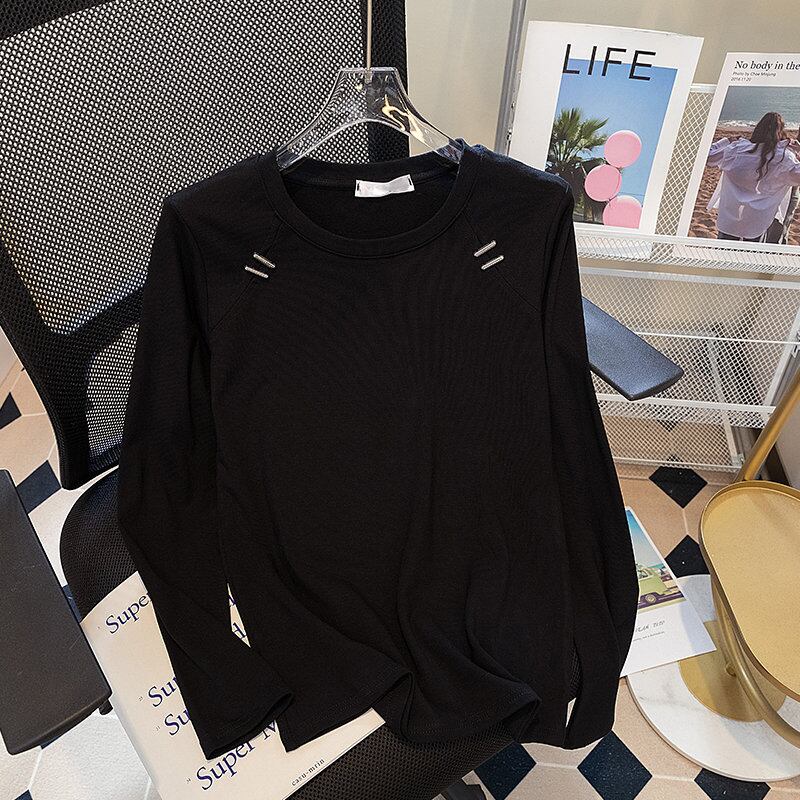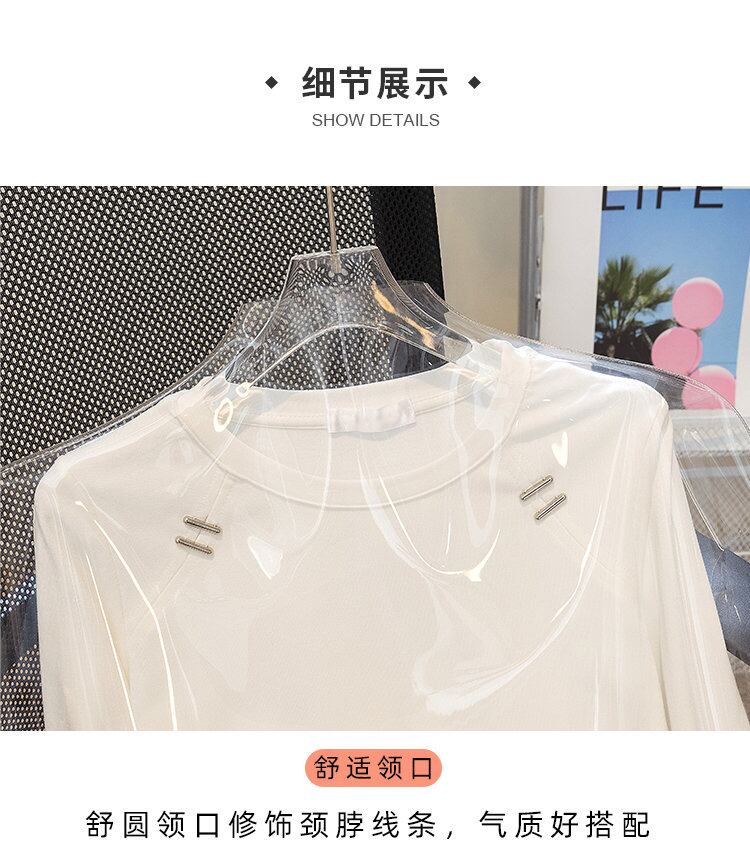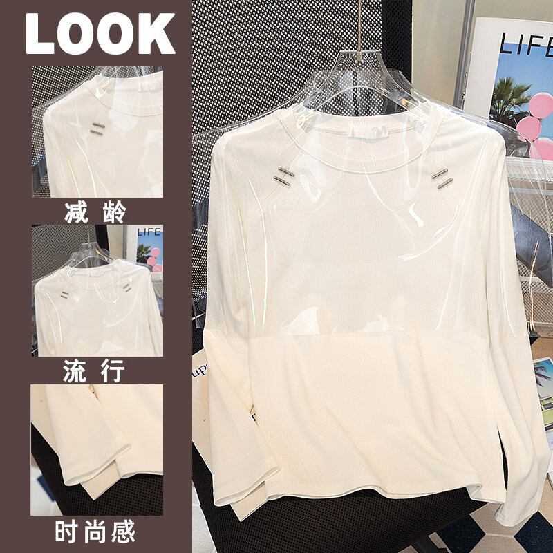 プラスサイズの婦人服 2023 ファットシスター春の新しい自己修養と薄い長袖 Tシャツ eign スタイル底入れシャツトップ女性 ロング 大きめサイズ スプリング 春物 8884166741127934