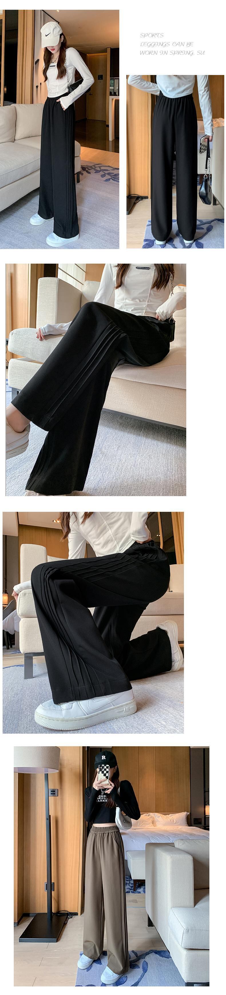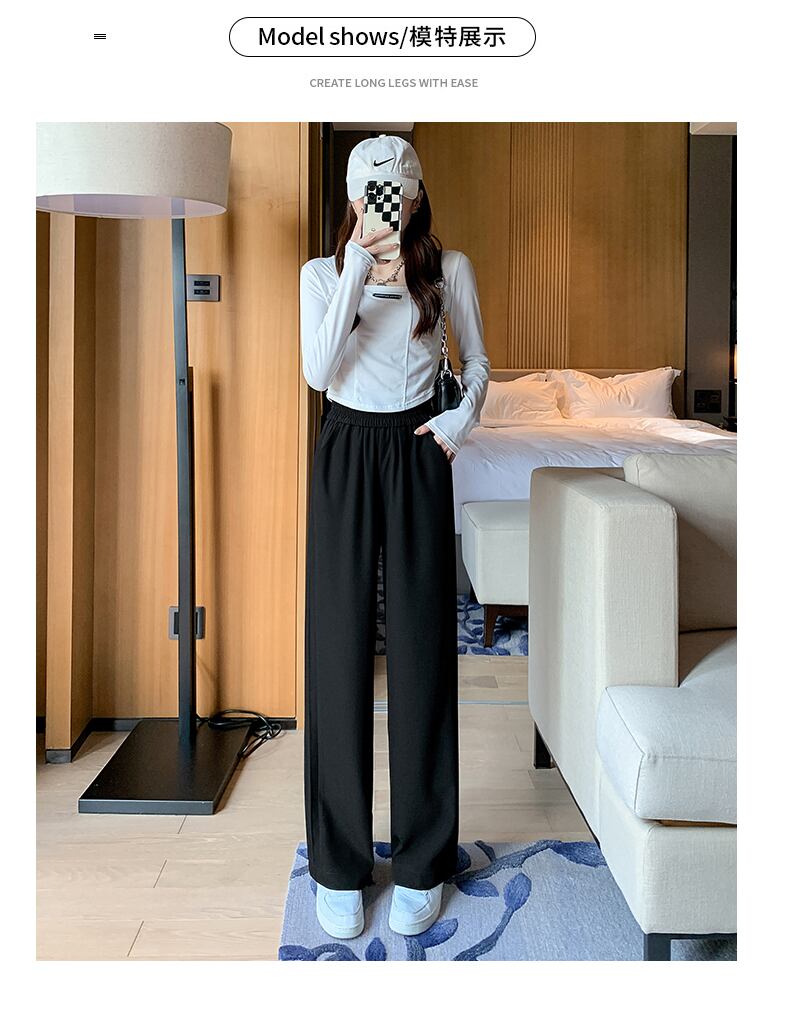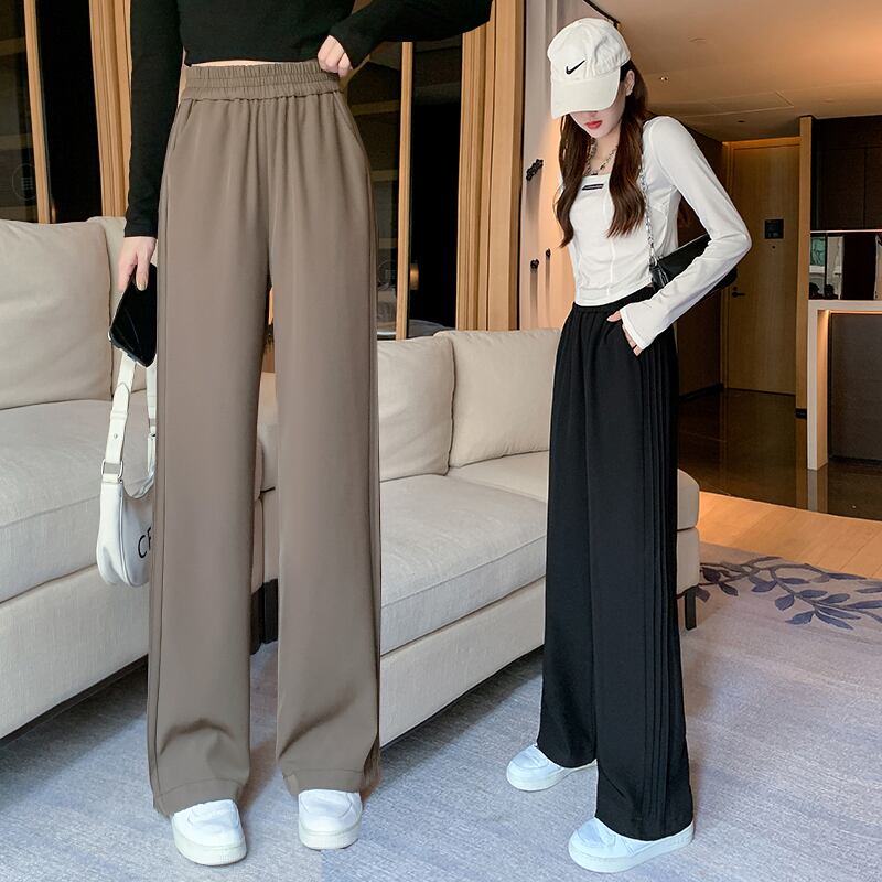 プラスサイズの婦人服 2023 ファットシスター春の新作ワイドレッグパンツルーズハイウエスト薄いストライプストレートレッグパンツ ハイウェスト 大きめサイズ スプリング 春物 8884196682843554