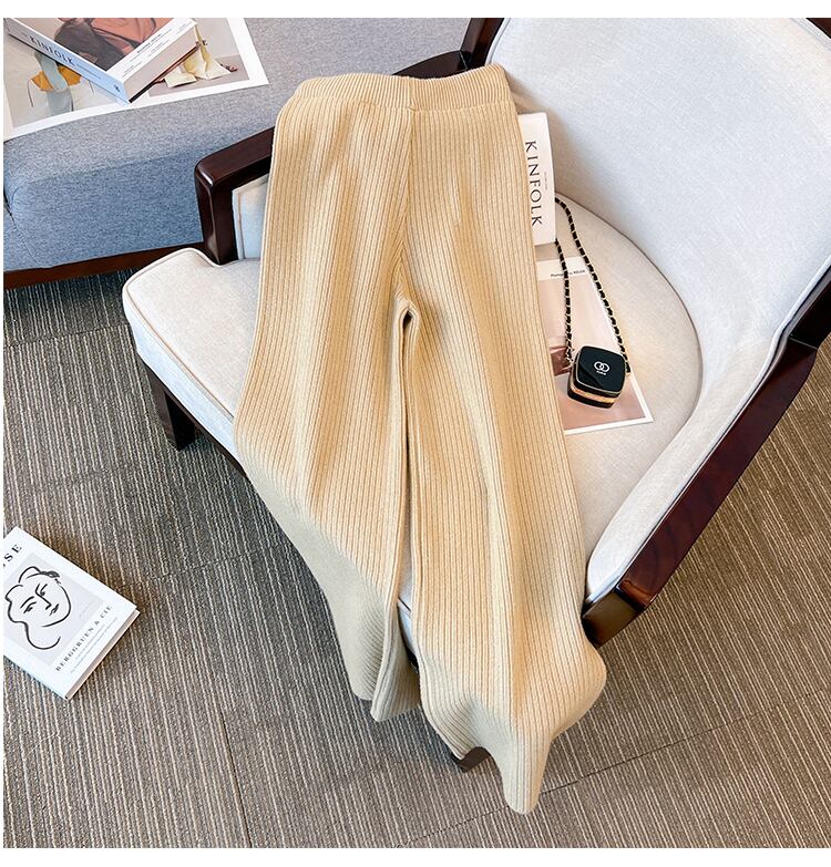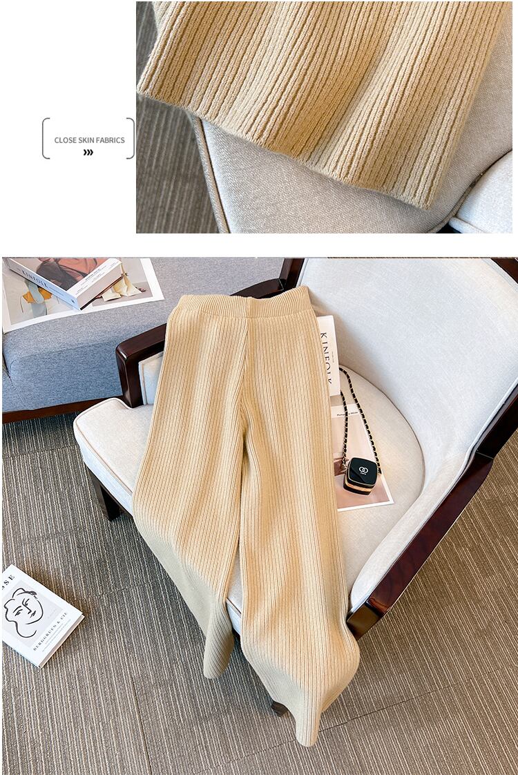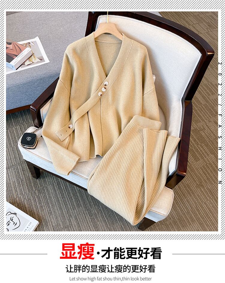 大きいサイズの婦人服2023ファットシスター春の新作ルーズニットセーターコートタテ感ストレートカジュアルパンツ2点セット 大きめサイズ スプリング 春物 8884180557613901