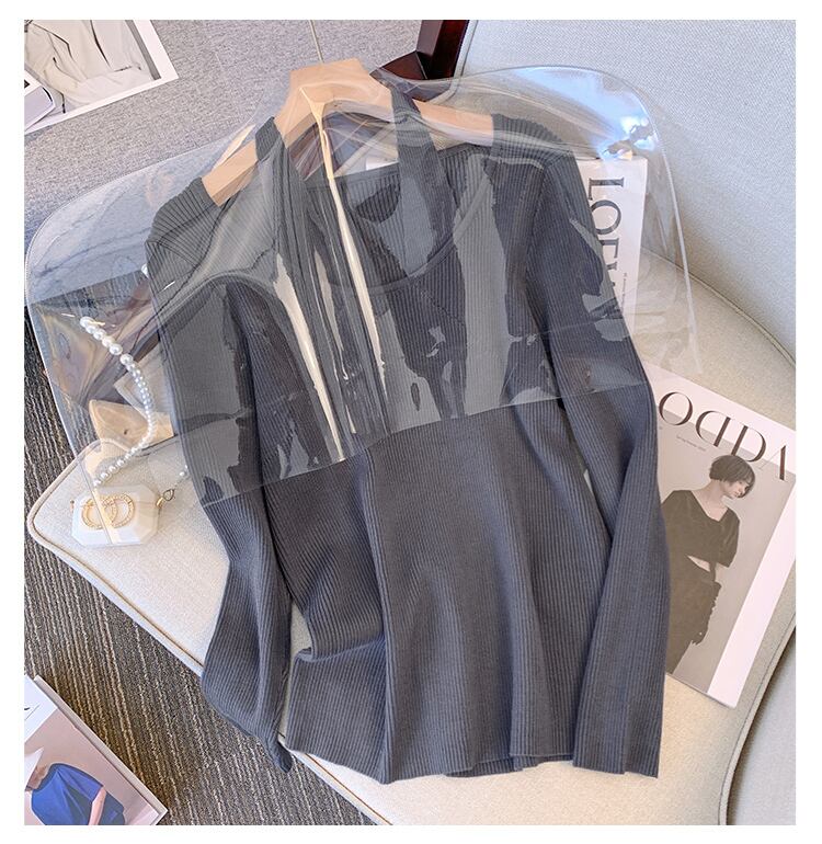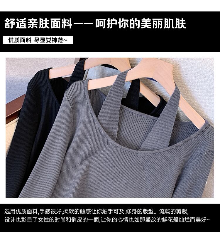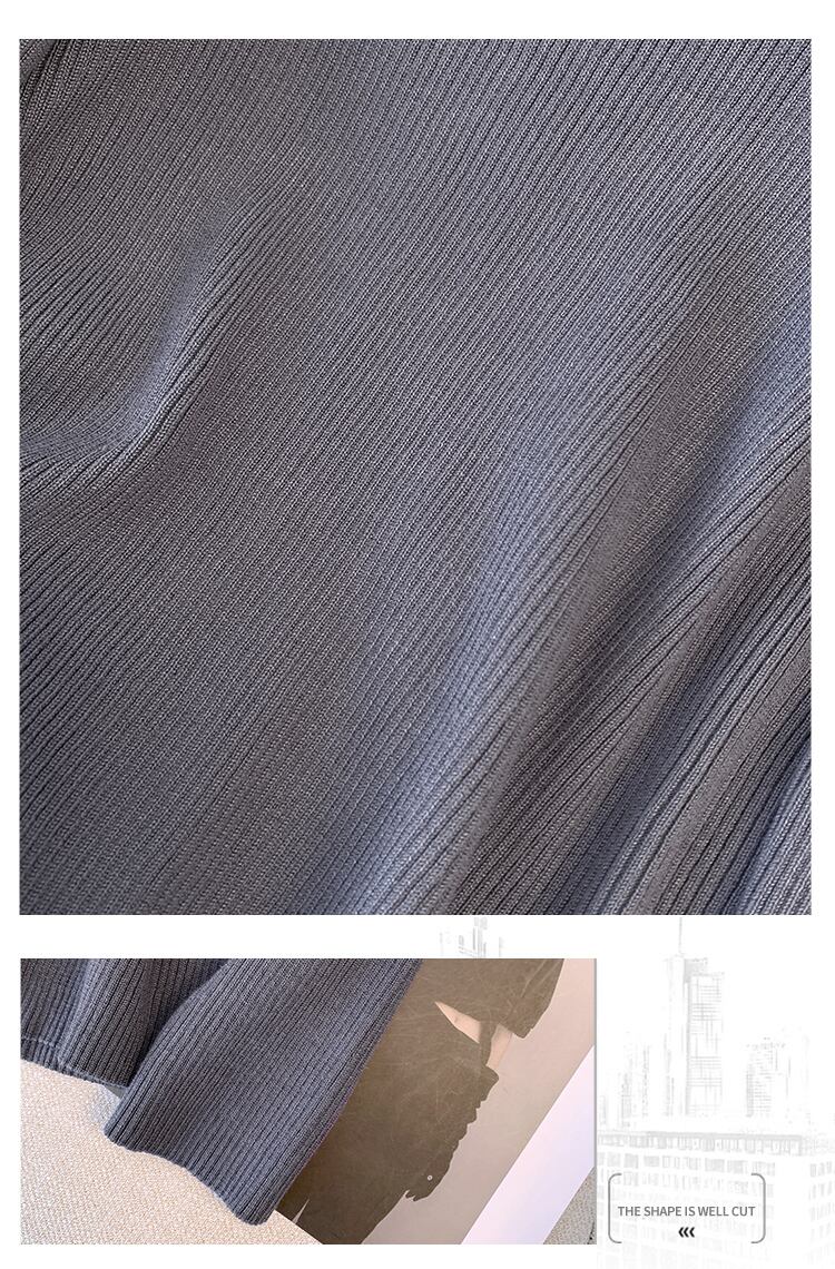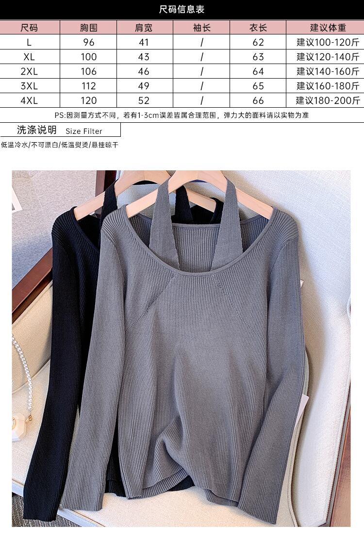 大きいサイズの婦人服 2023 春の新しい太った姉妹デザイン スプライシング偽ツーピース吊りネック無地長袖ニット セーター ロング 大きめサイズ スプリング 春物 ソリッドカラー 8884121419627181