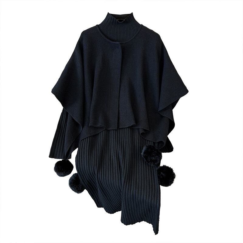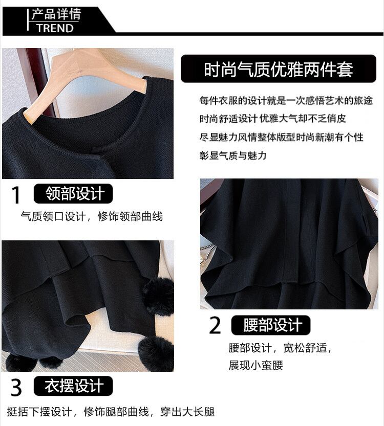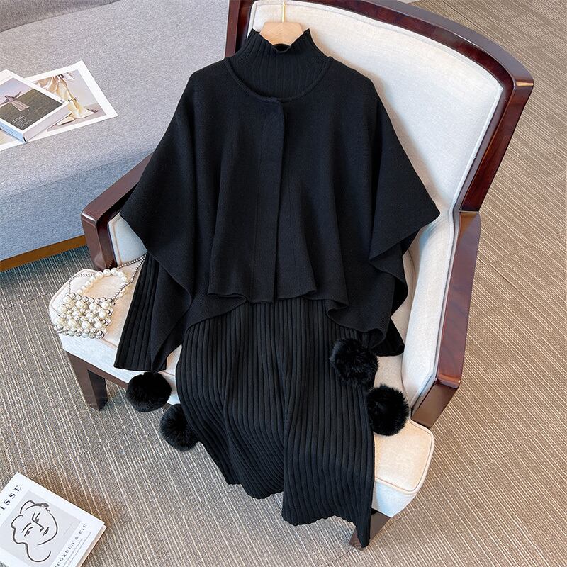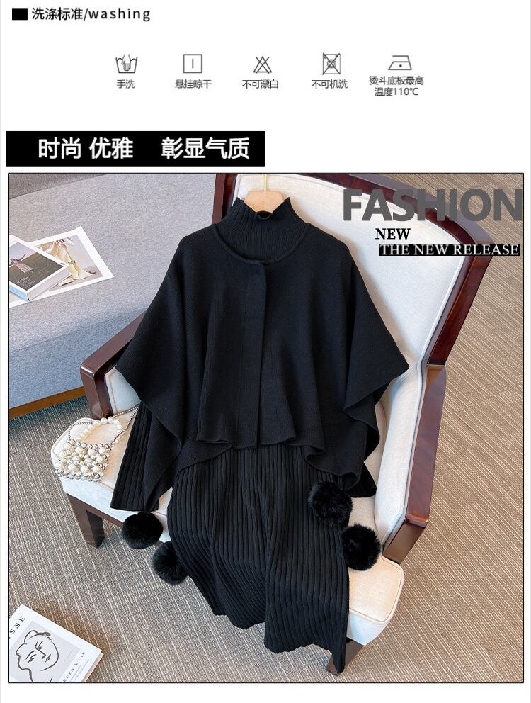 プラスサイズの婦人服 2023 ファットシスター春の新作ケープショールコートニットセータードレス 2 点セット 大きめサイズ スプリング 春物 8884174917320121