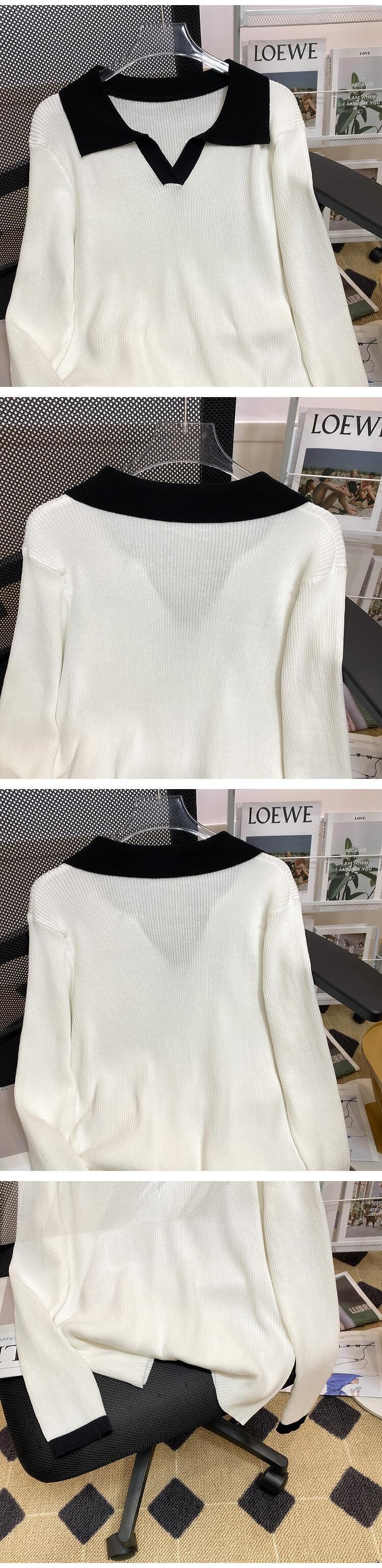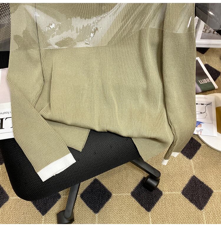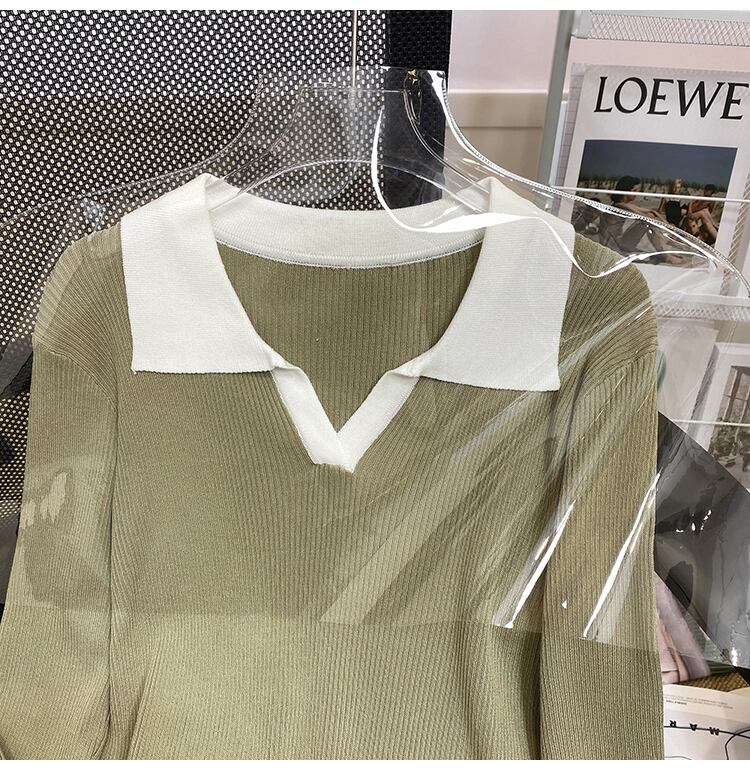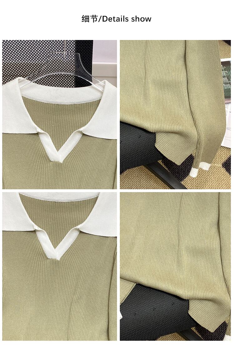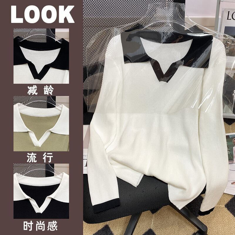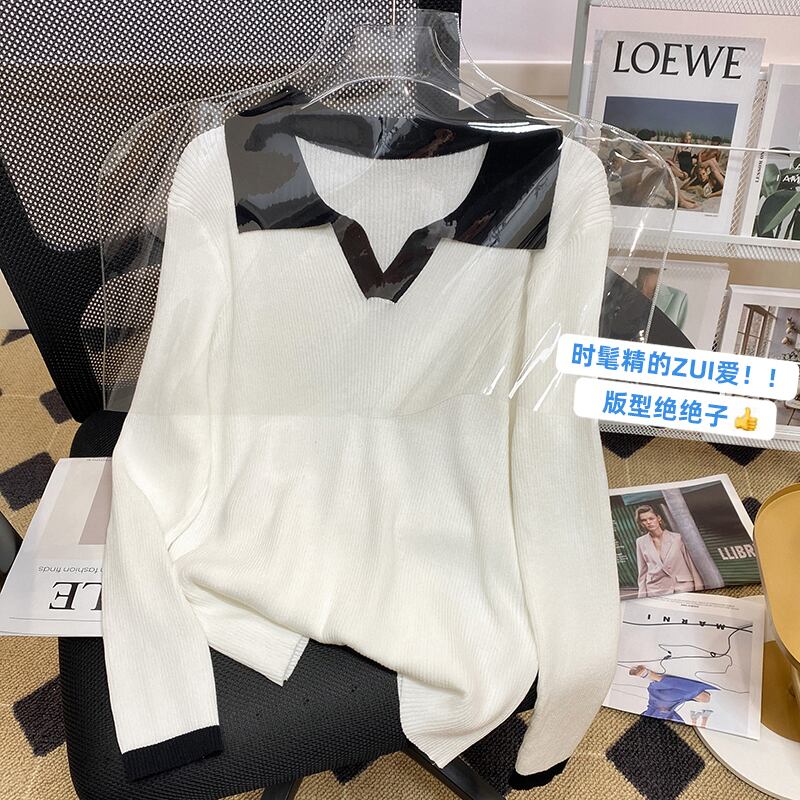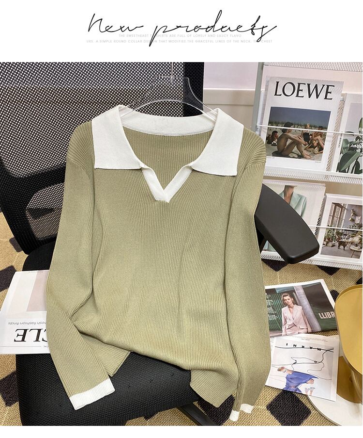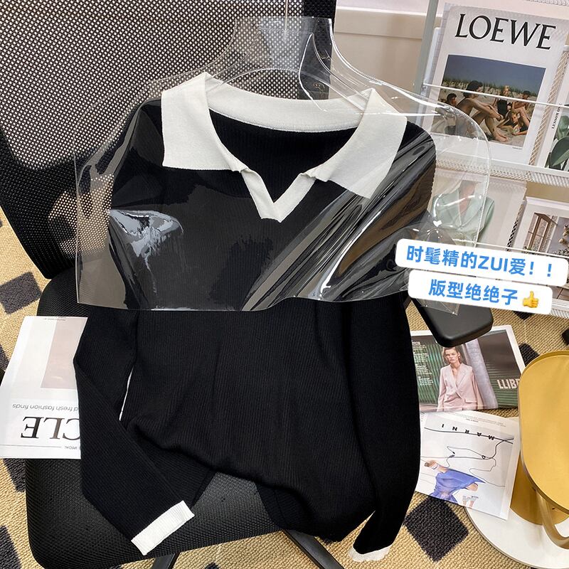 プラスサイズの婦人服 2023 ファットシスター春の新ルース eign スタイルオールマッチファッションポロ襟ボトムニットセータートップ 大きめサイズ スプリング 春物 888414838240647