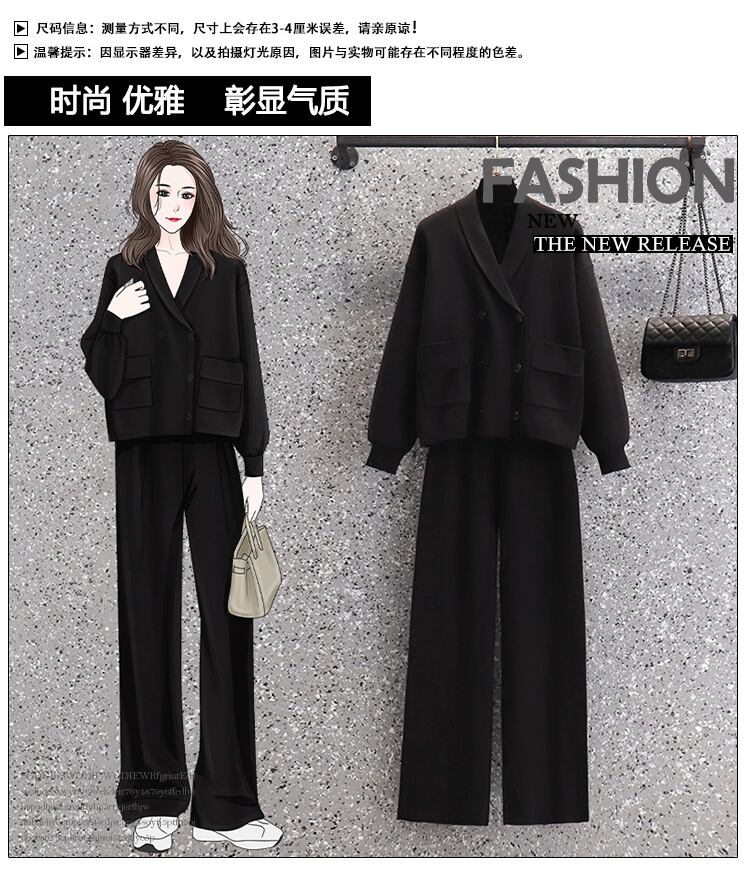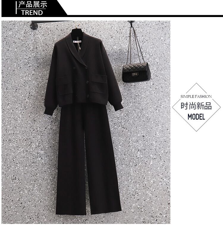 大きいサイズの婦人服 2023 ファットシスター春の新ファッション年齢引き下げ痩身セーターワイドレッグパンツツーピーススーツ 大きめサイズ スプリング 春物 8884174875564818