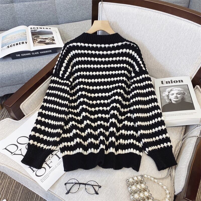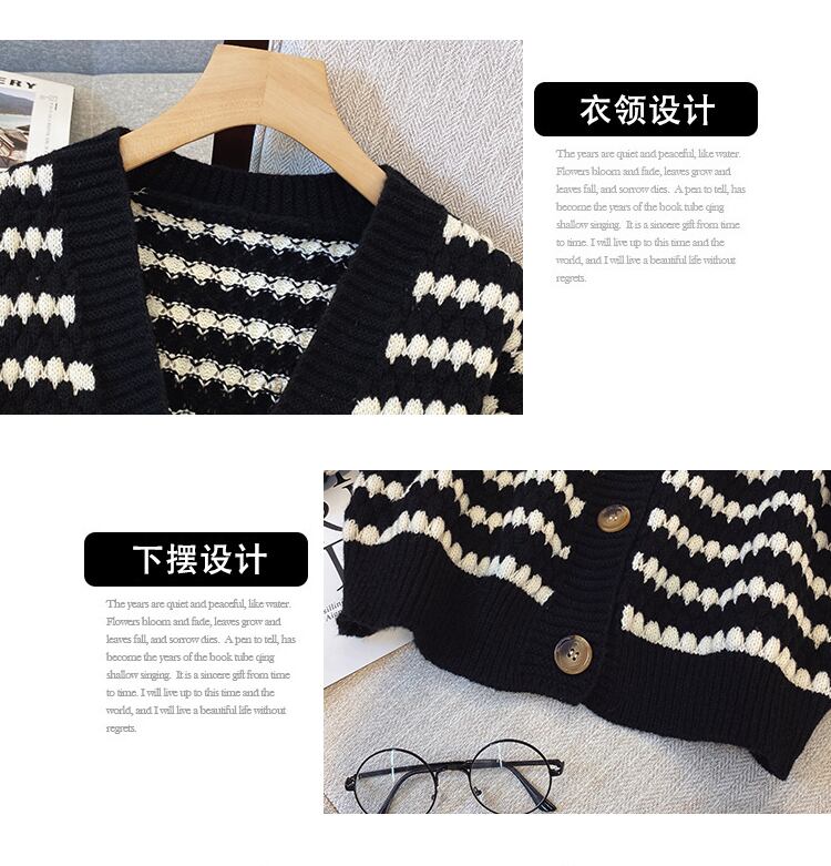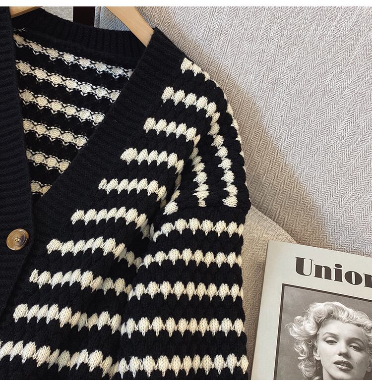 プラスサイズの婦人服 2023 ファットシスター春の新しいストライプの配色シングルブレストルーズセーターカーディガンジャケット女性 大きめサイズ スプリング 春物 8884172636138314