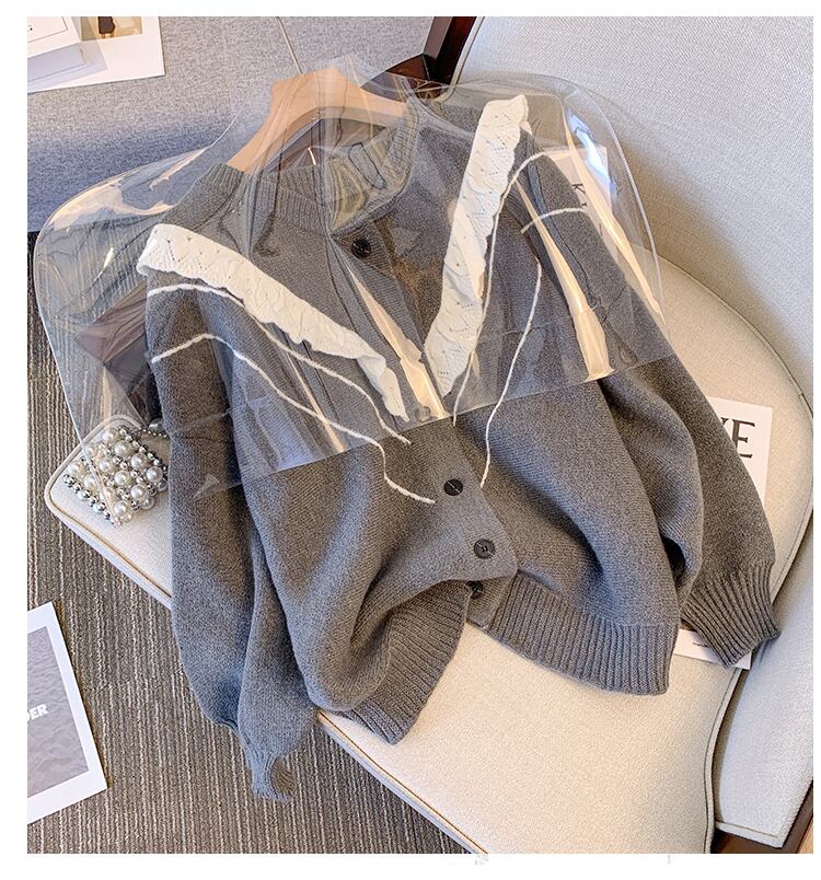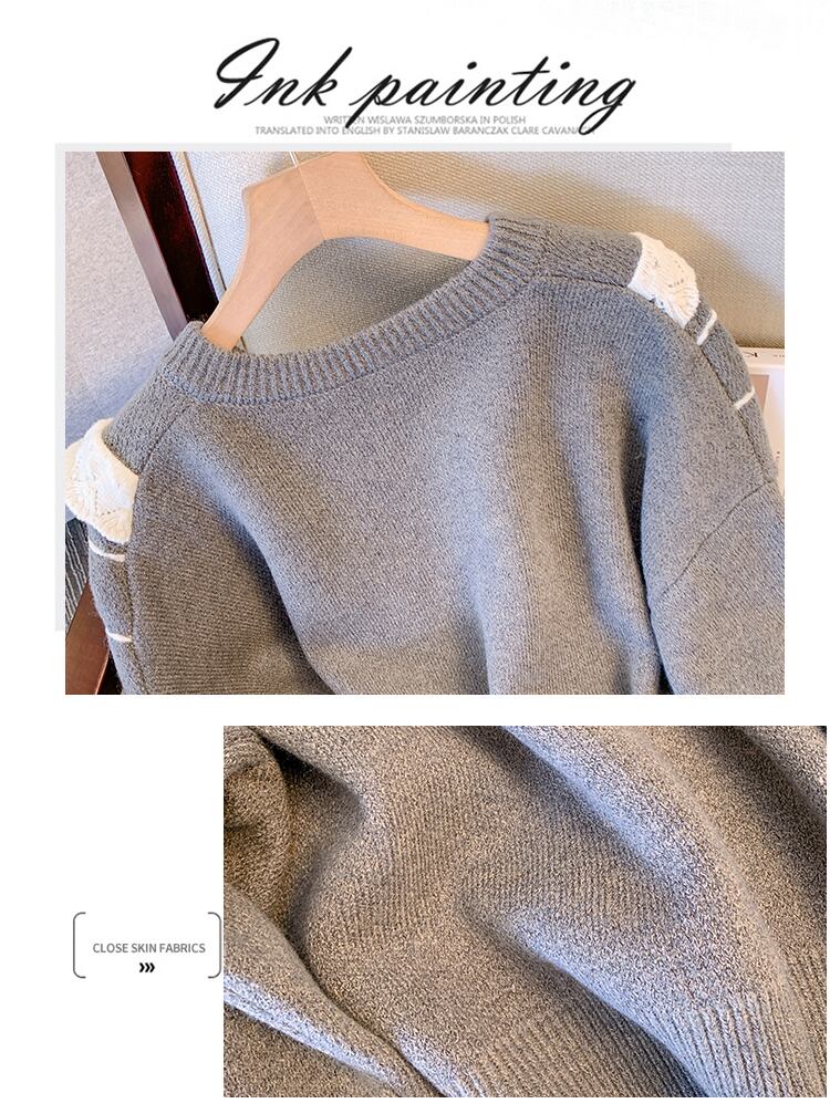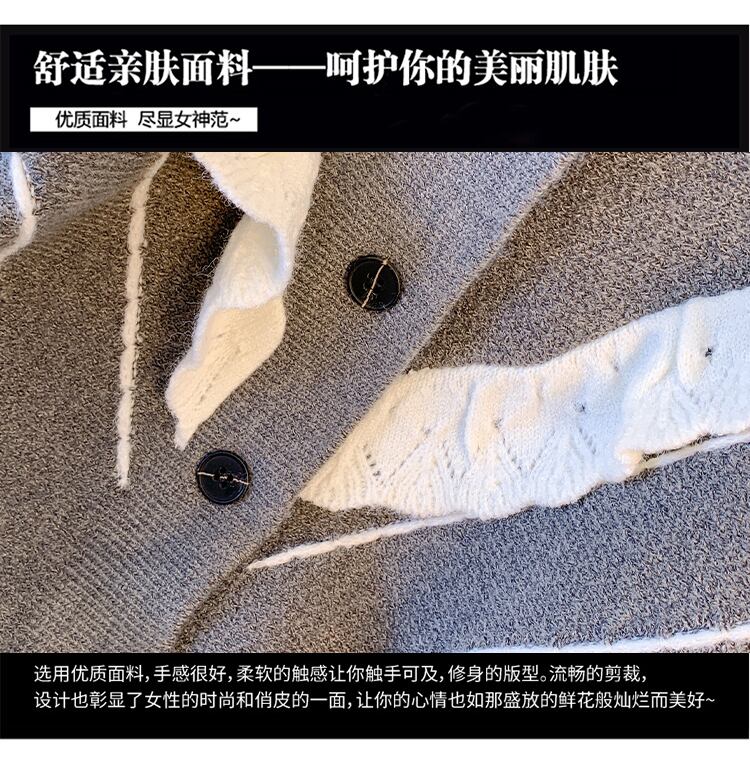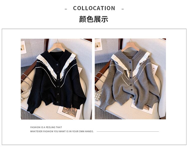 プラスサイズの婦人服 2023 ファットシスター春の新レーススプライシング木製耳エッジニットカーディガンセーターコート女性 大きめサイズ スプリング 春物 8884151666979051
