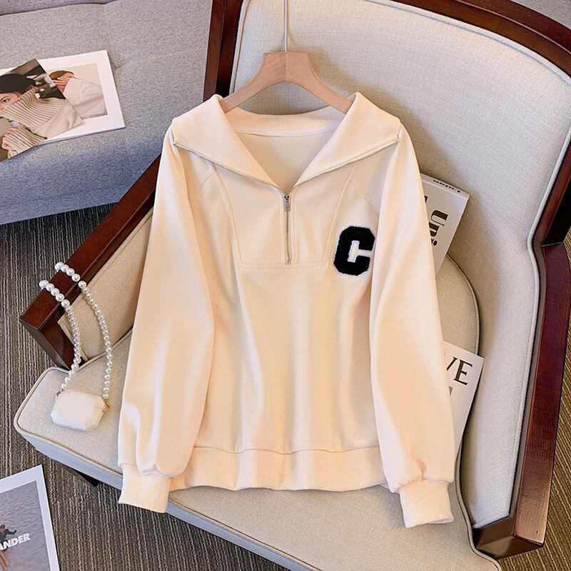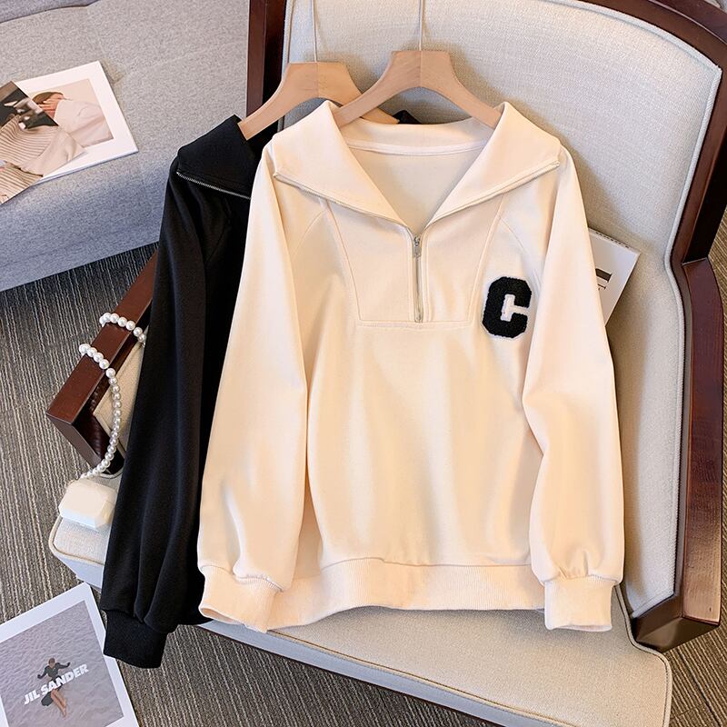 プラスサイズの婦人服 2023 脂肪姉妹春の新緩いハーフジッパーラペル緩い C レタープルオーバーセーター女性 大きめサイズ スプリング 春物 88841605887508