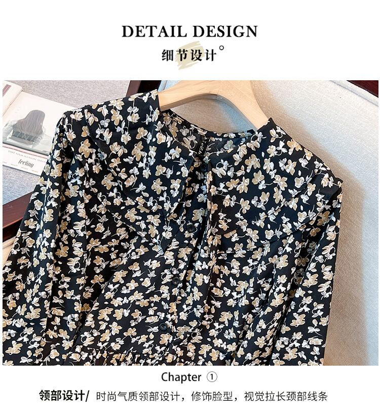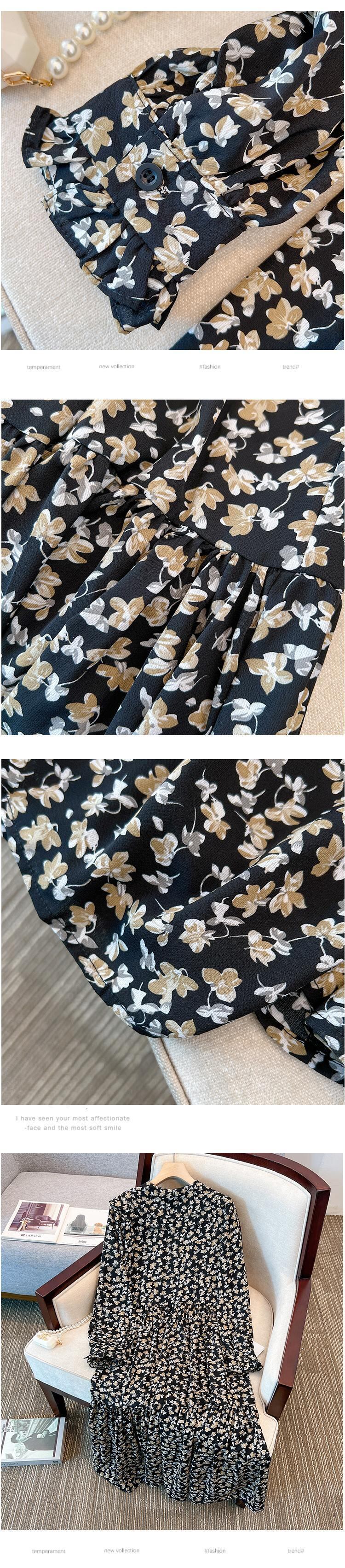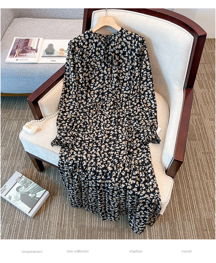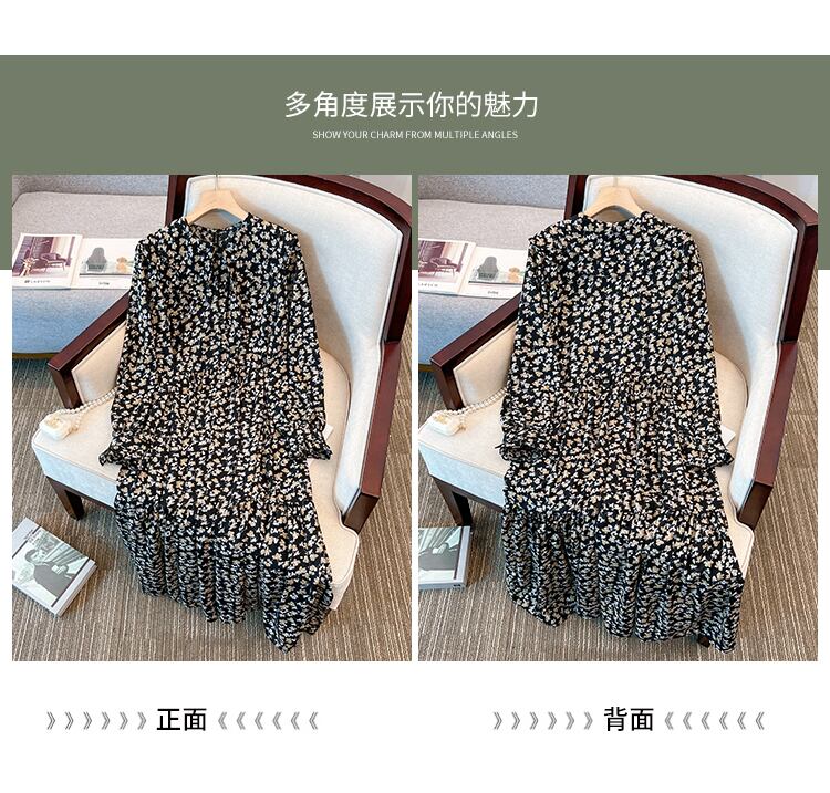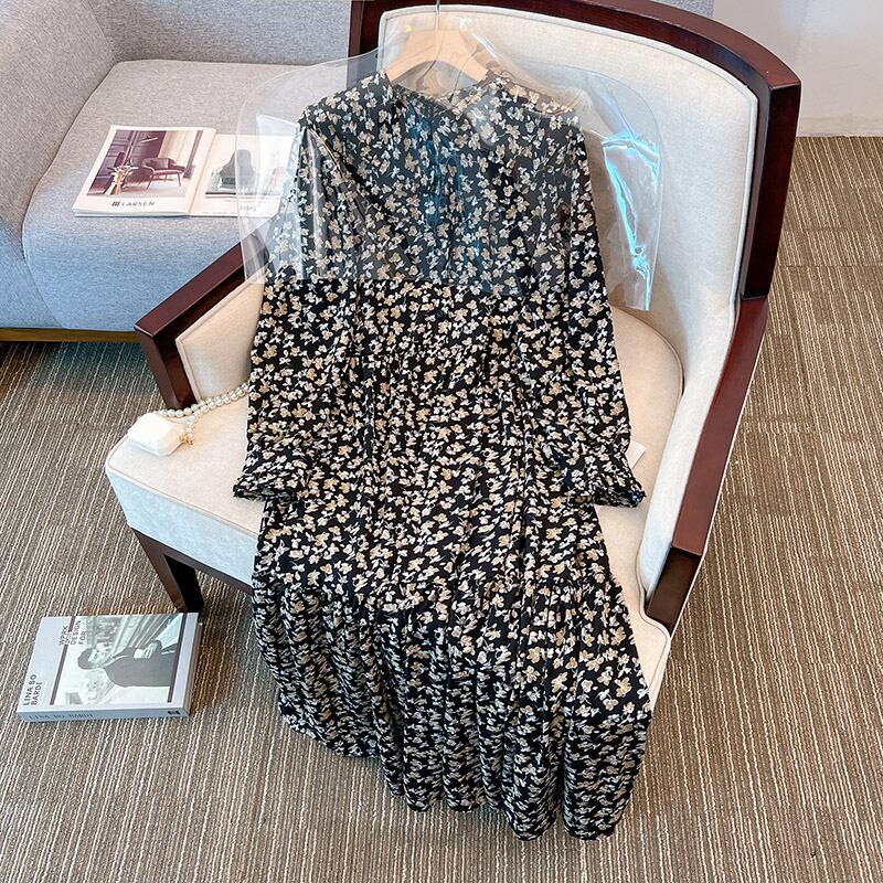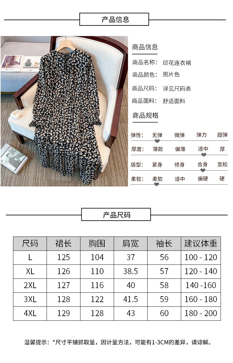 プラスサイズの婦人服 2023 ファットシスター春の新しい eign スタイル長袖の年齢を減らす底入れシフォン花柄のドレスの女性 ロング 大きめサイズ スプリング 春物 8884114796151903