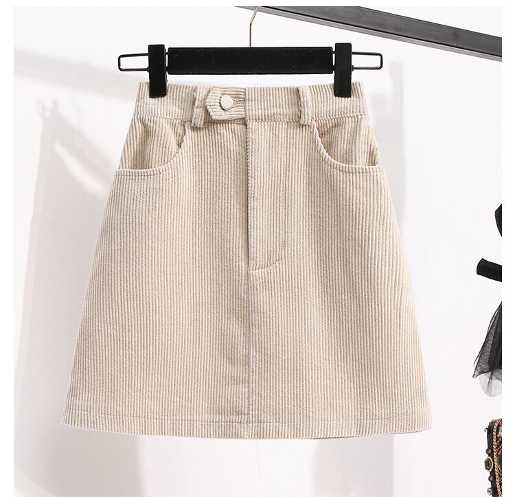 大きいサイズの婦人服 2023 春の新作ルーズで薄いハイウエストカジュアルウォッシュコーデュロイスカートの女性 ハイウェスト 大きめサイズ スプリング 春物 8884128555072655