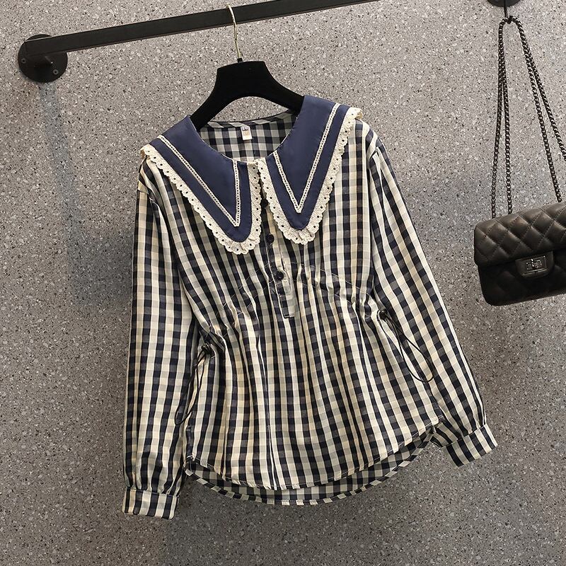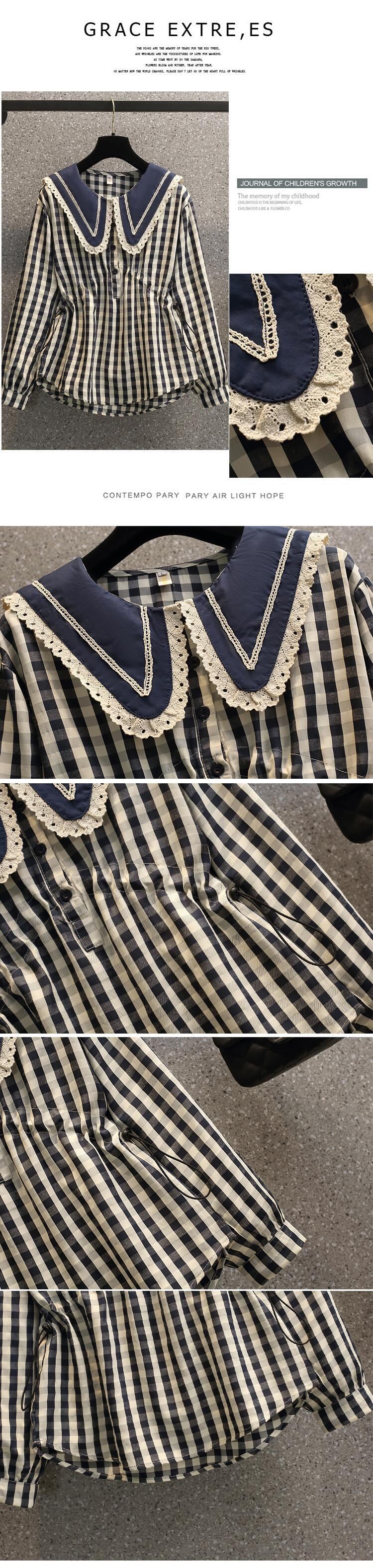 大きいサイズの婦人服 2023 春服脂肪姉妹新しい人形の襟シャーリングレースステッチウエスト長袖シャツ女性 ロング レッド 大きめサイズ スプリング 春物 8884189274931901