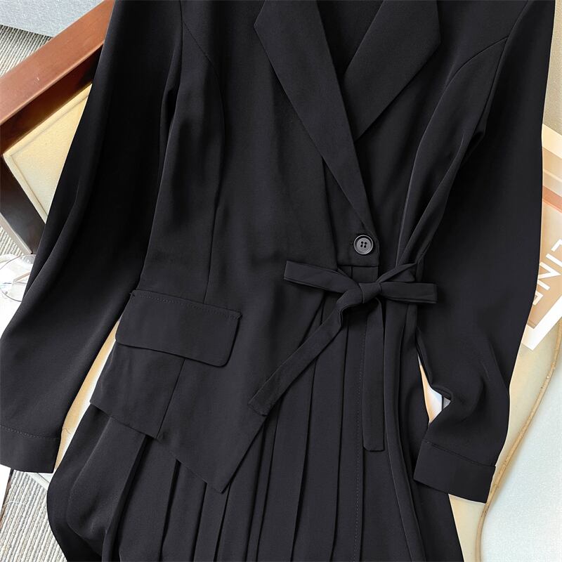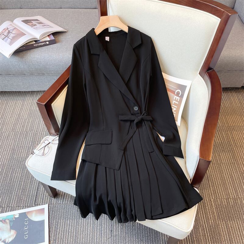 プラスサイズの婦人服 2023 春の新しいスタイルの脂肪姉妹気質スプライシングデザインカジュアルスリムプリーツドレス女性 大きめサイズ スプリング 春物 888416204460429
