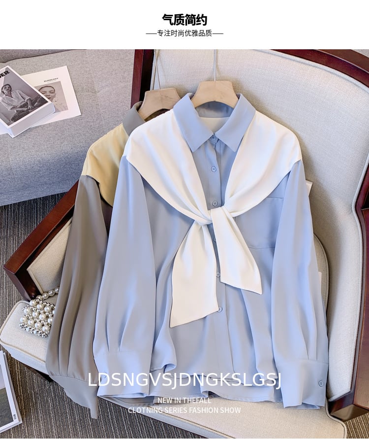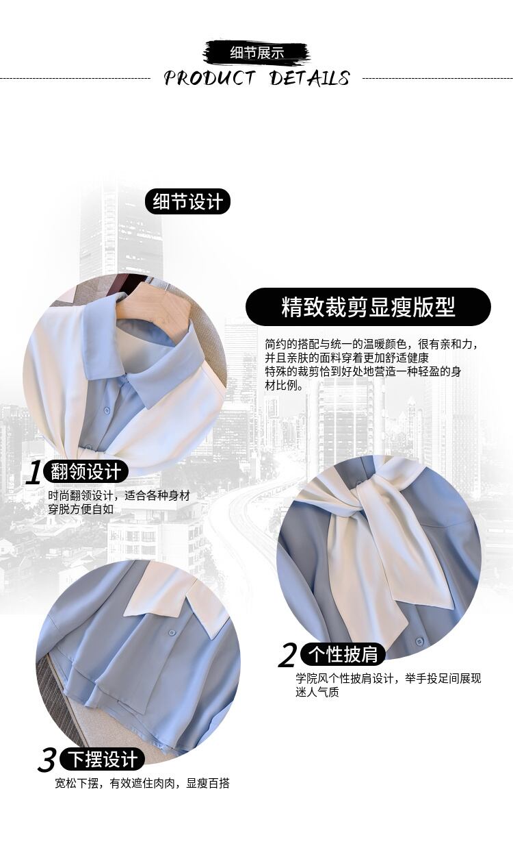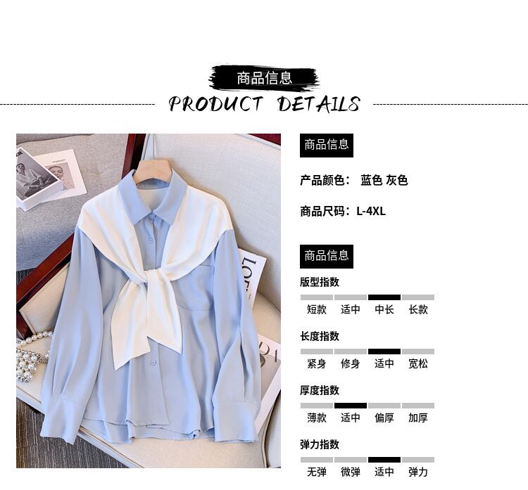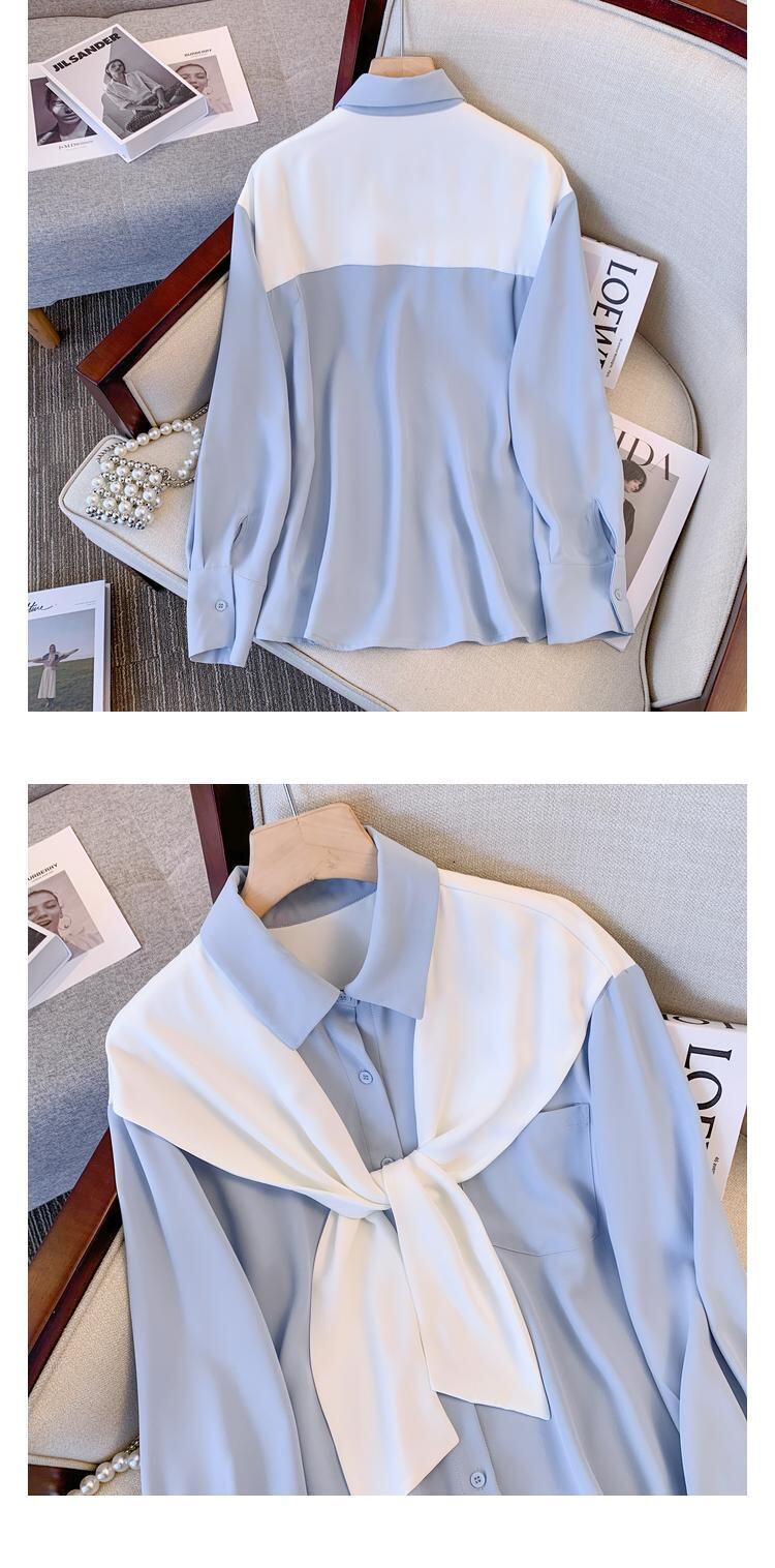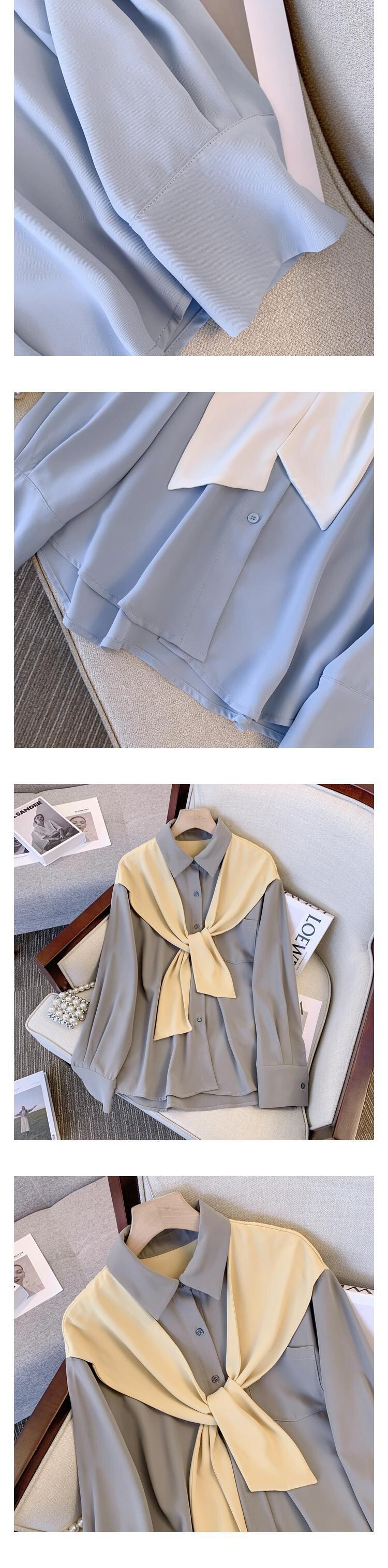 大きいサイズの婦人服2023トレンディな女性の春の新しいスタイルのファットシスタールーズでスリムなデザインのスプライシングフェイクツーピースの配色シャツ 大きめサイズ スプリング 春物 8884137268296450