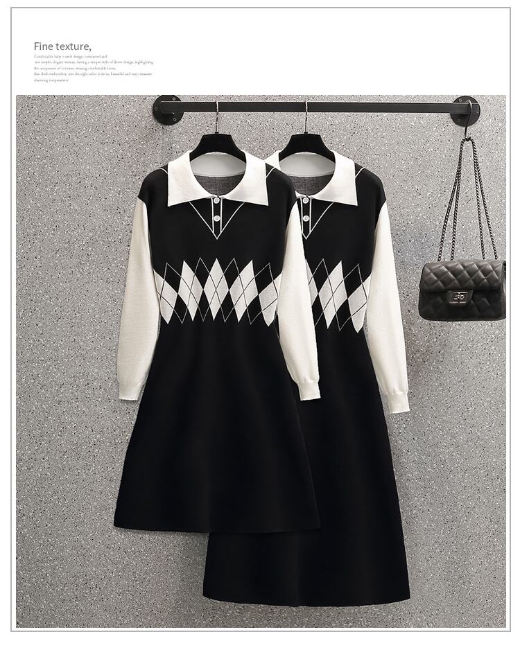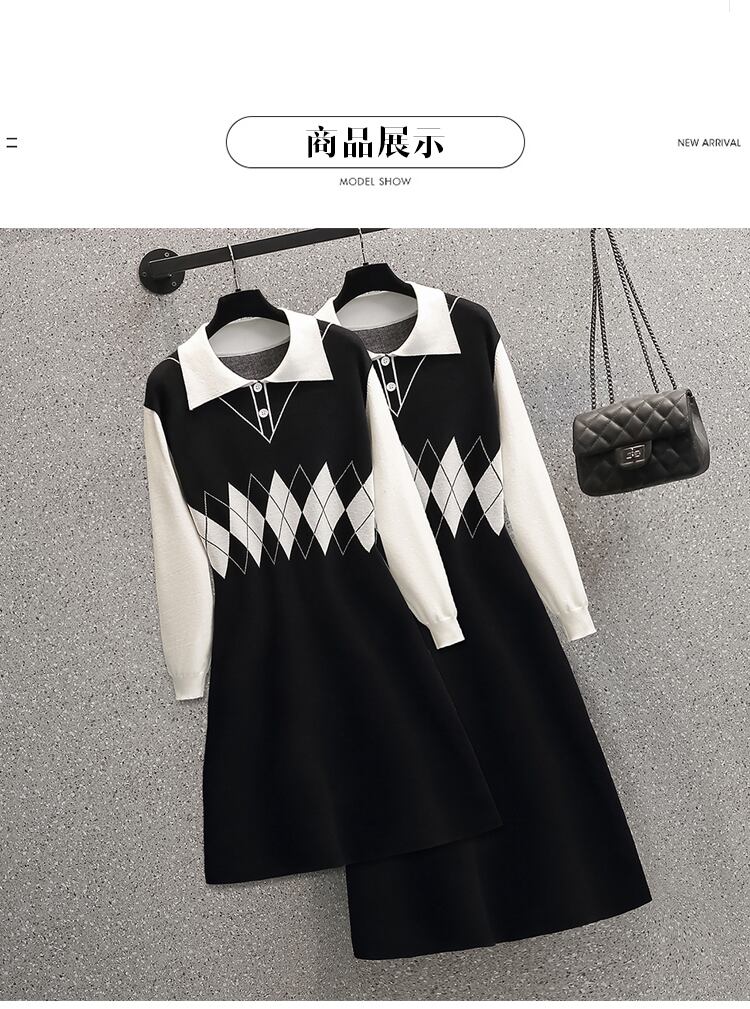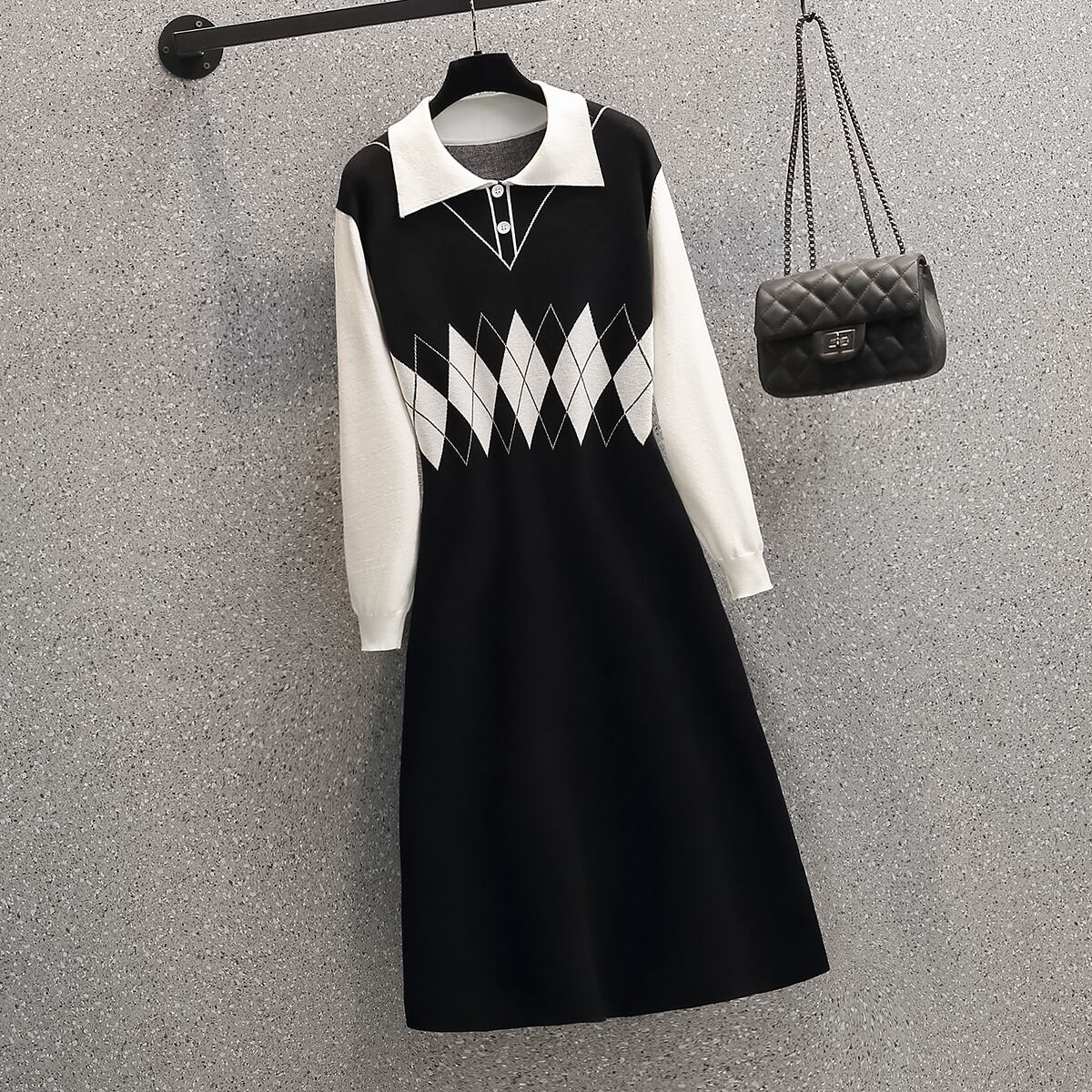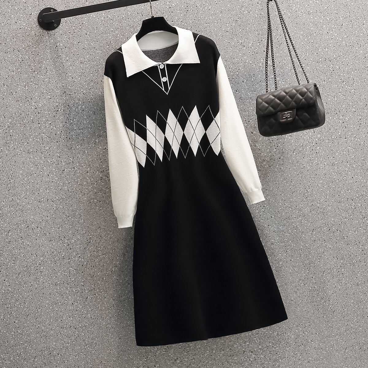 プラスサイズの婦人服 2023 太った姉妹春薄いファッション偽ツーピース ニット ステッチ ラペル ウエスト ウエスト ドレス 大きめサイズ スプリング 春物 8884192059467138