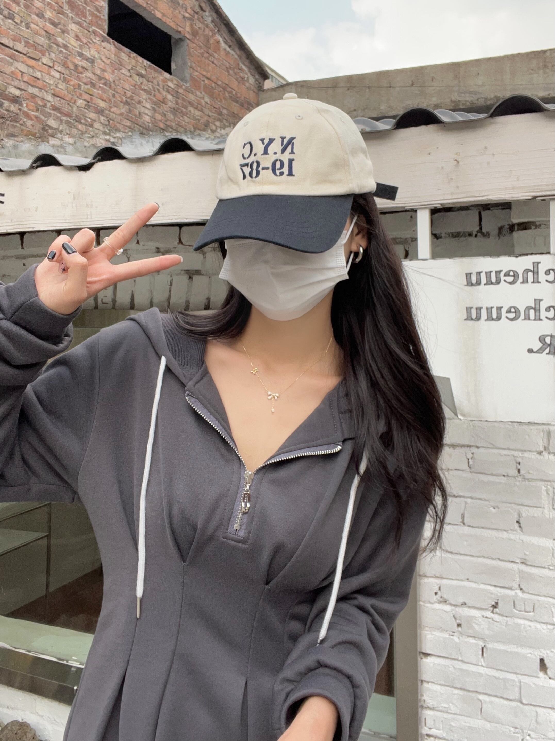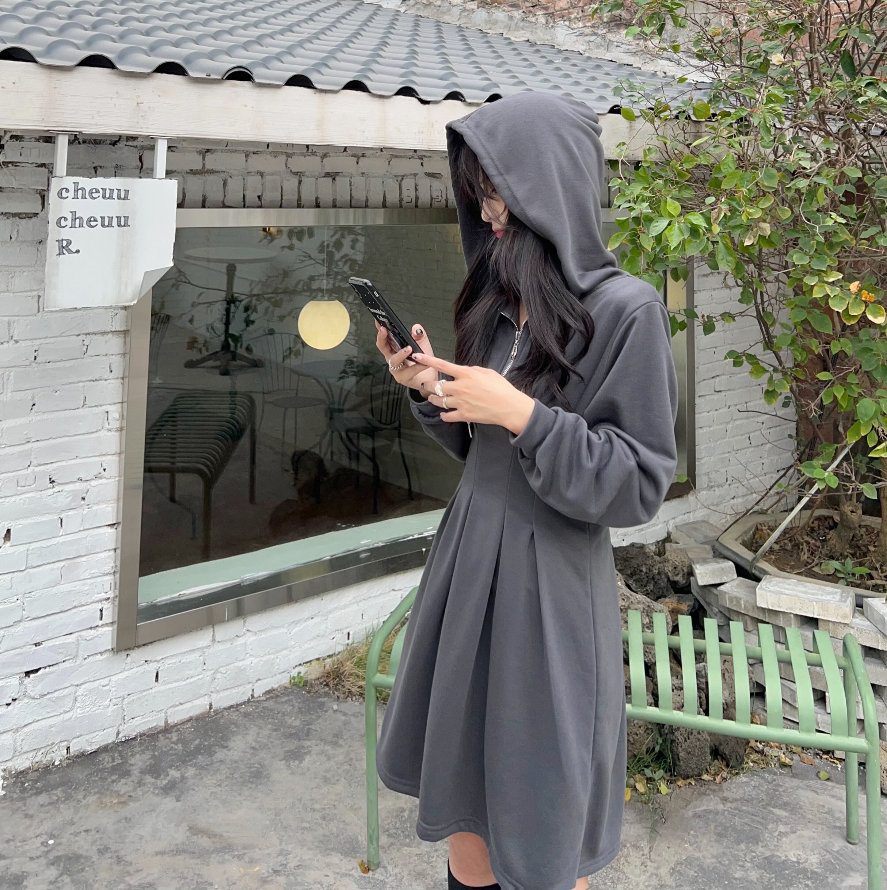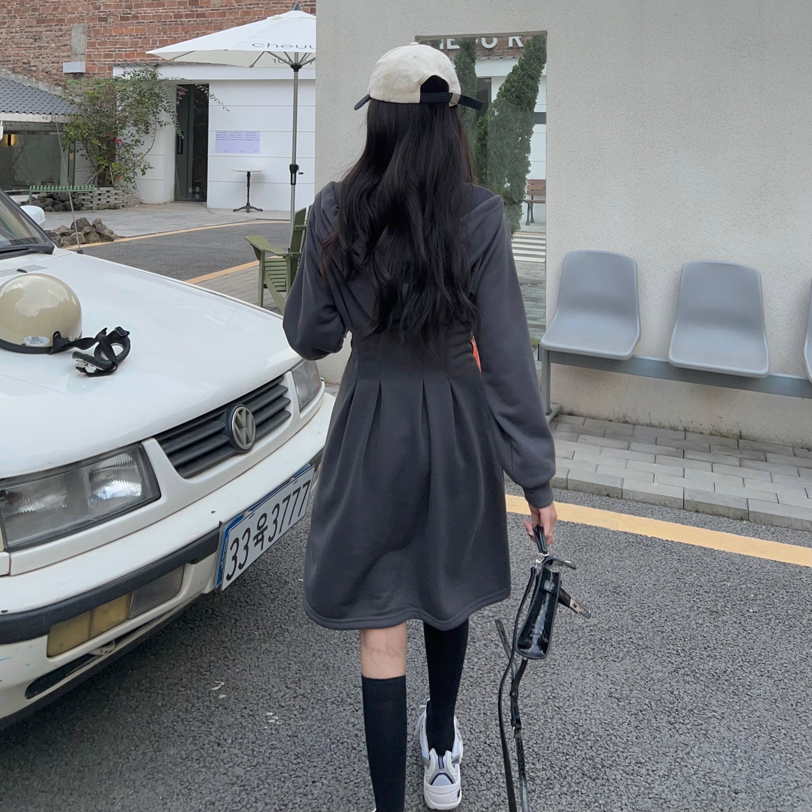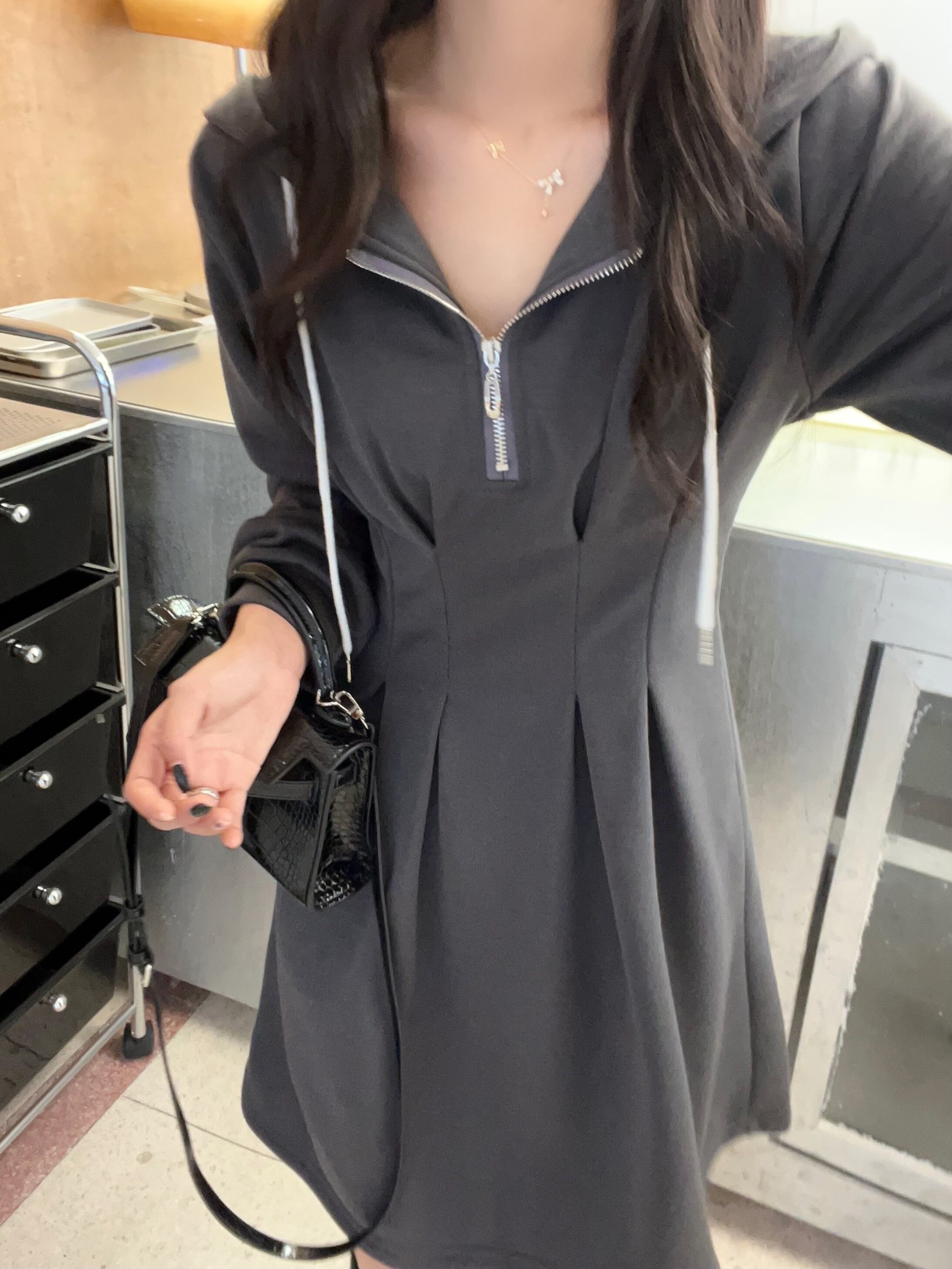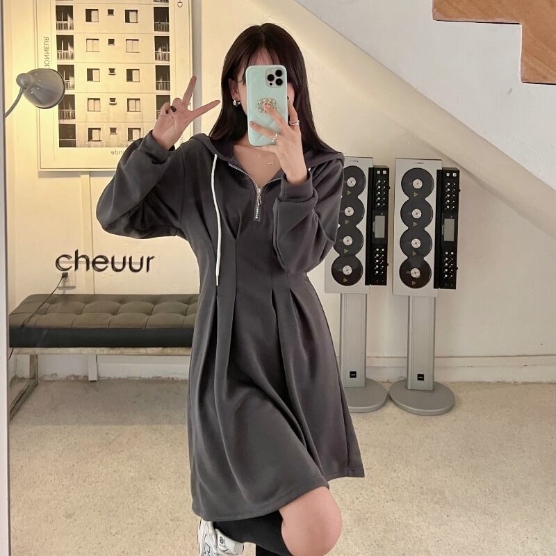プラスサイズの婦人服 2023 トレンディな女性の春の新しいファットシスターフード付き痩身ファッショナブルなジッパーデザインのウエストドレス 大きめサイズ スプリング 春物 8884151818261835