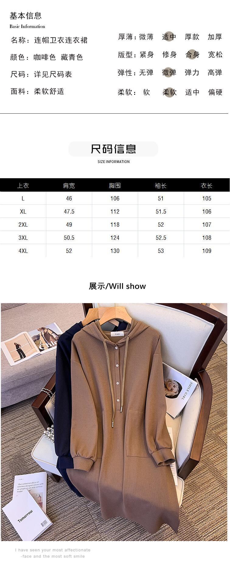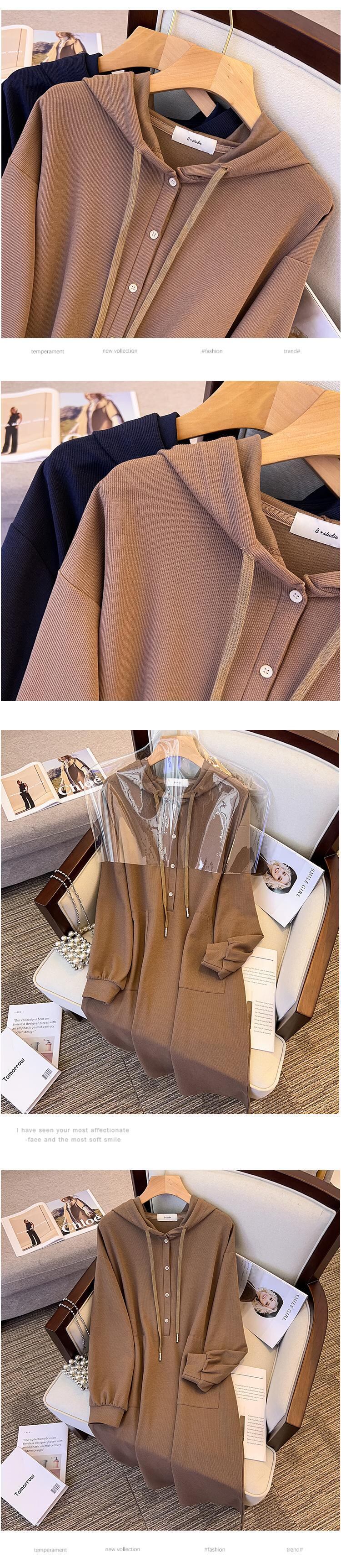 プラスサイズの婦人服 2023 トレンディな女性の春の新しいスタイルのファットシスタールーズでスリムなファッションフード付きパッチポケットオールマッチドレストレンディ 大きめサイズ スプリング 春物 8884123145352281
