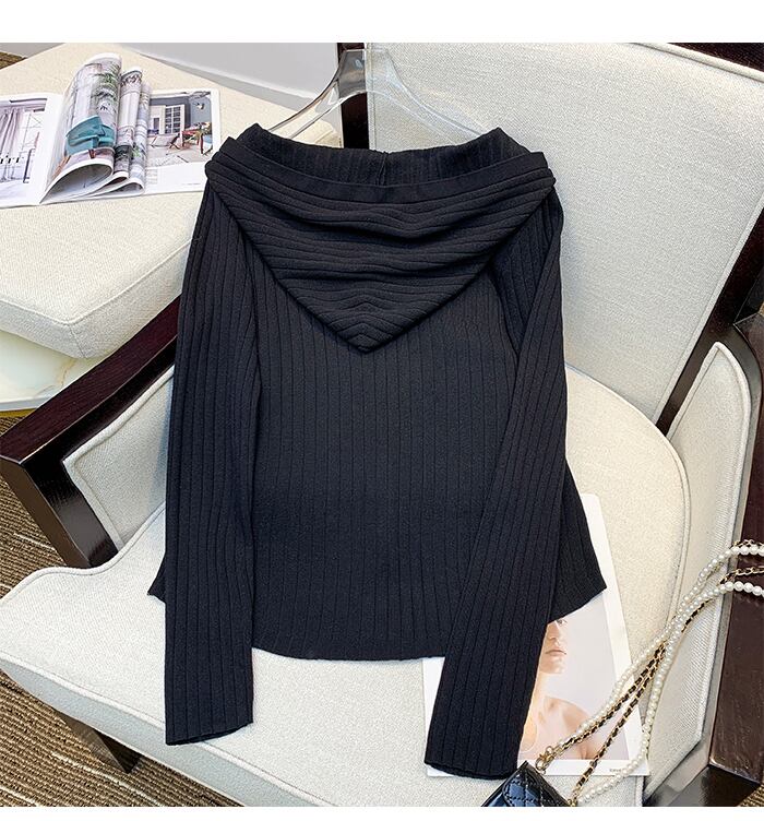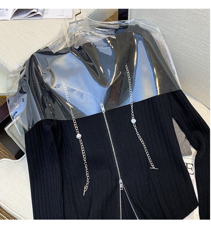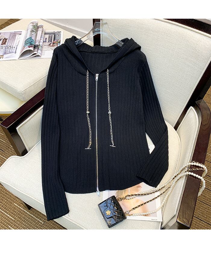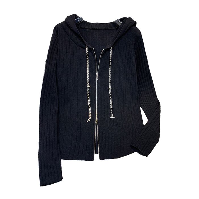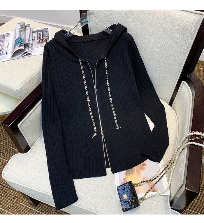 プラスサイズの婦人服 2023 ファットシスター春の新緩いフード付きセーター金属チェーンセーターカーディガンジャケット女性 大きめサイズ スプリング 春物 8884194400836601