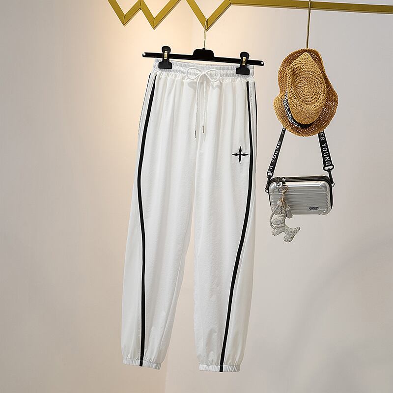 大きいサイズの婦人服 2023 年の新しい夏の服の太った姉妹の新しい春のゆったりとした薄いハイウエストの伸縮性のあるカジュアルな速乾性のズボン エラスティック 大きめサイズ スプリング 春物 サマー 夏物 8884177335610414