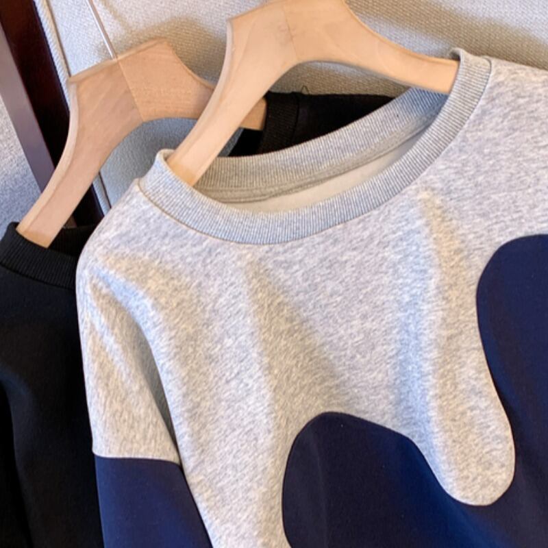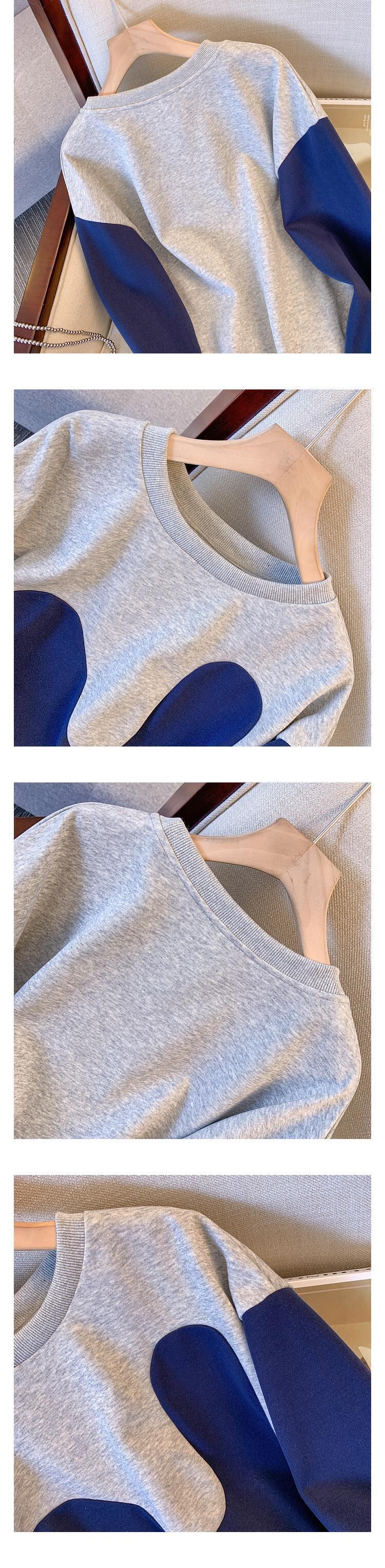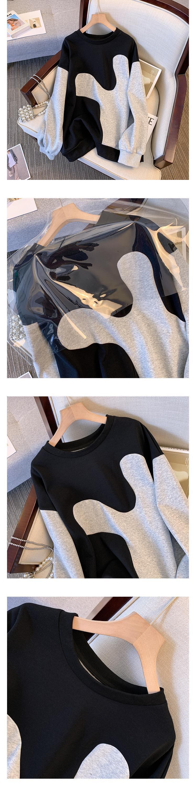 大きいサイズの婦人服 2023 春の新しいスタイルの太った姉妹は、薄いスタイルのデザインのセンスに合わせて、配色の肉のシックなニットのセーターに見えます 大きめサイズ スプリング 春物 8884156716904716