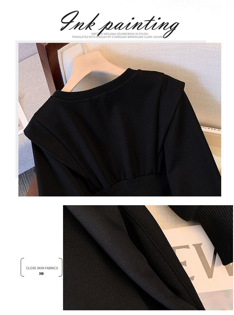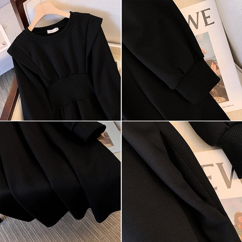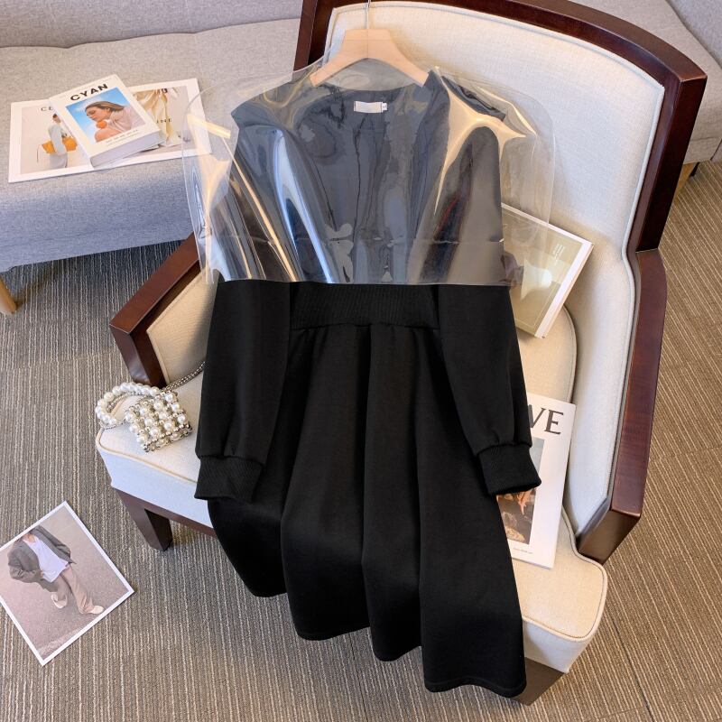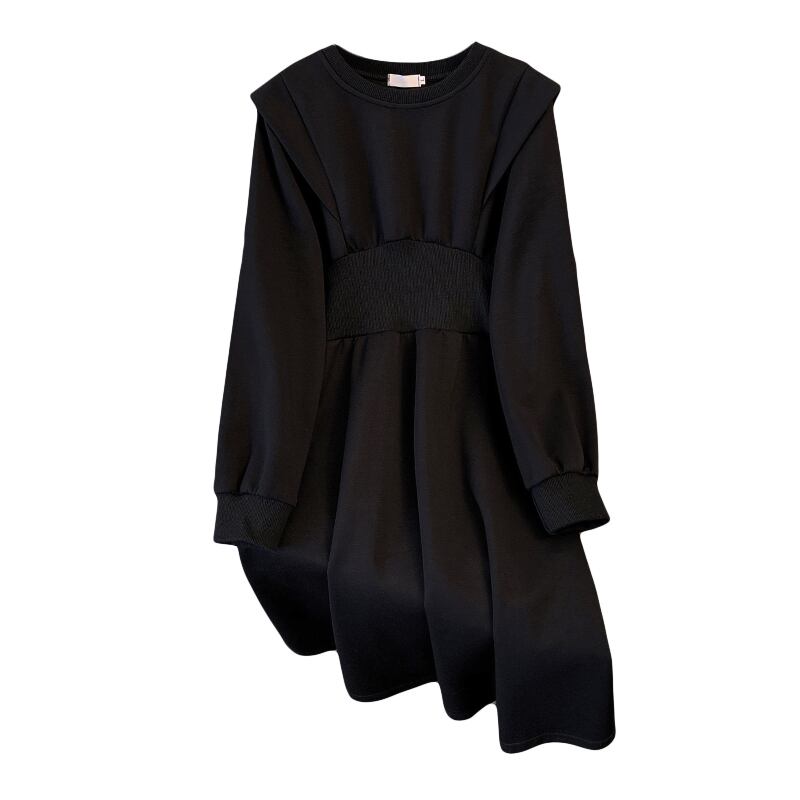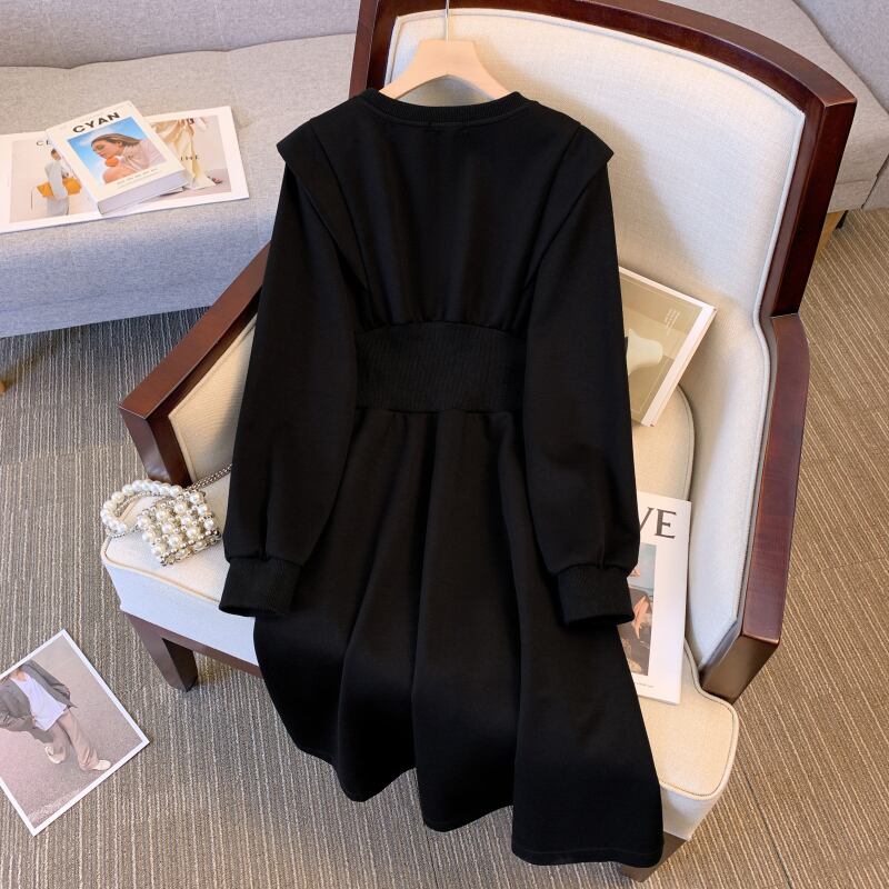 プラスサイズの婦人服 2023 ファットシスター春の新しいフレンチスタイルの薄い A ラインリトルブラックドレスウエストカバー肉ドレス 大きめサイズ スプリング 春物 Aライン 8884177908638575