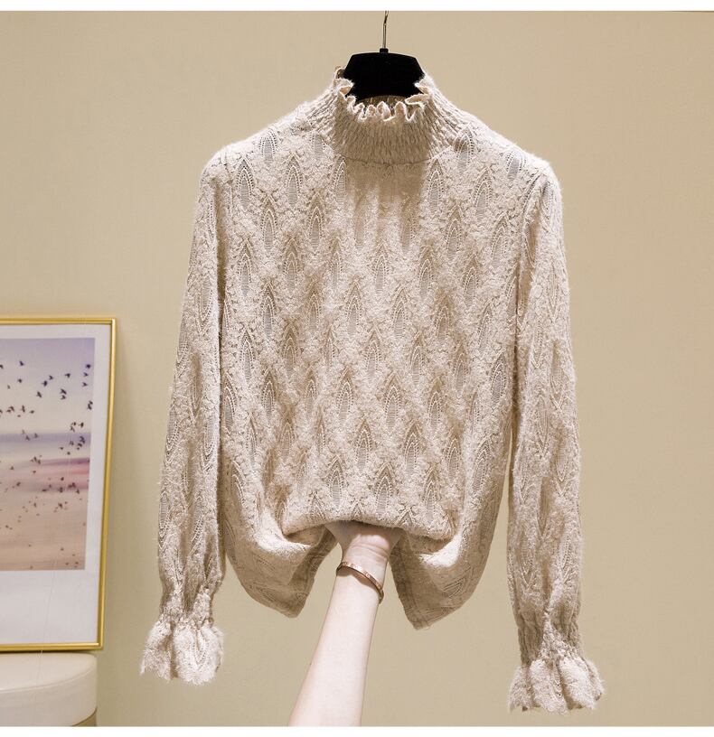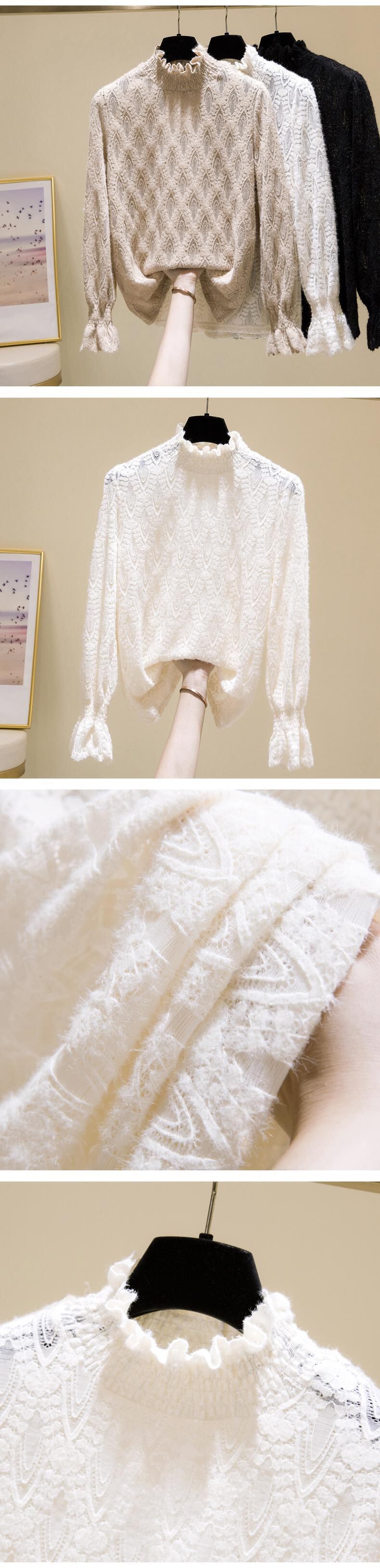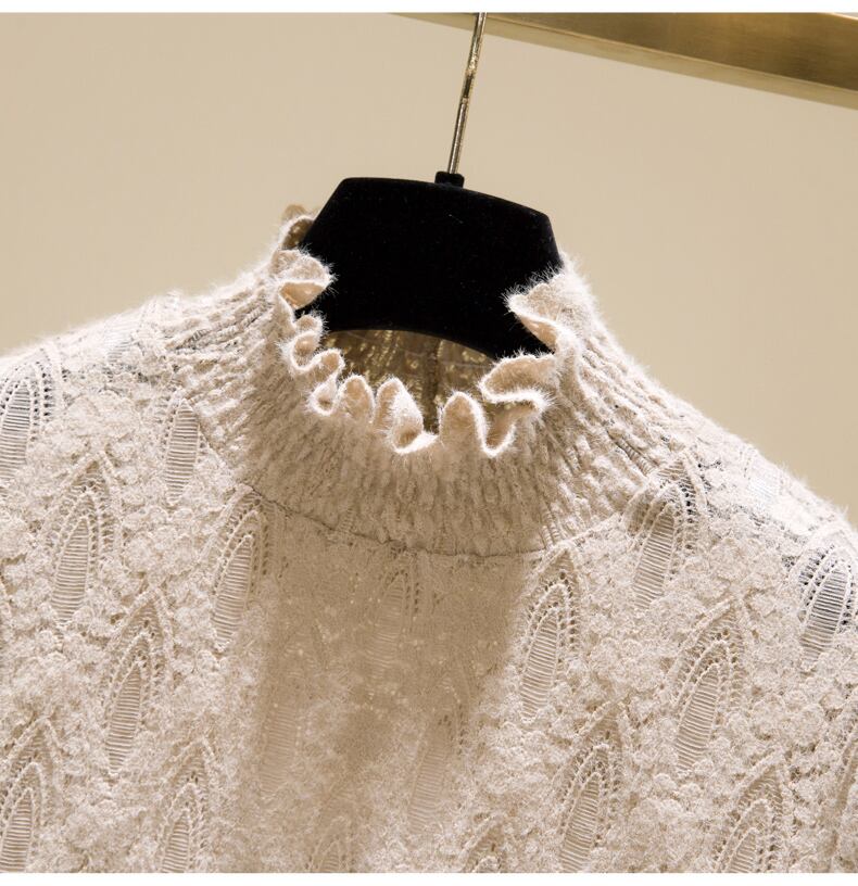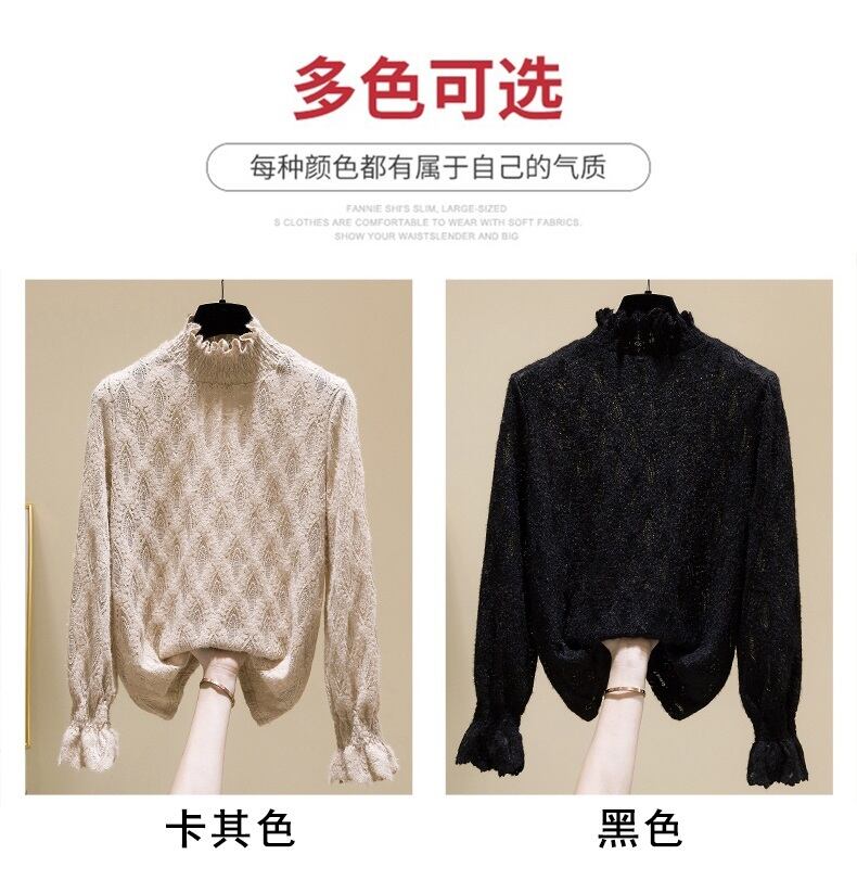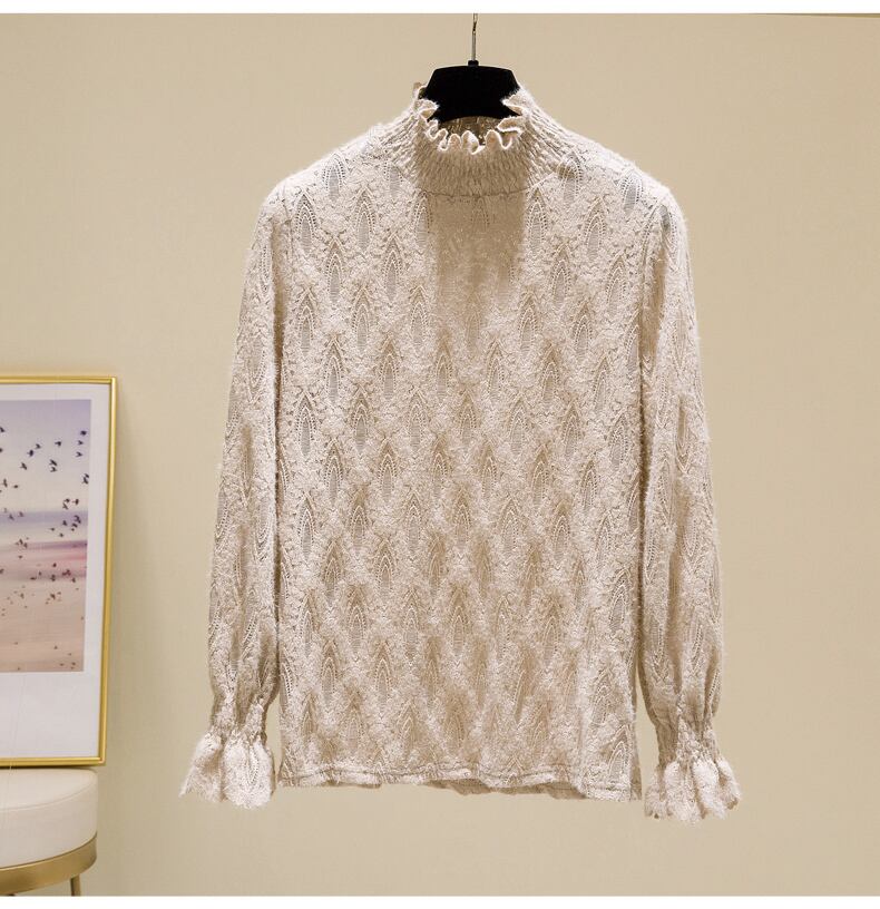 プラスサイズの婦人服 2023 ファットシスター春の新しいハーフハイカラーレースプラスベルベット底入れシャツ起毛木材耳エッジトップ 大きめサイズ スプリング 春物 8884117351172214