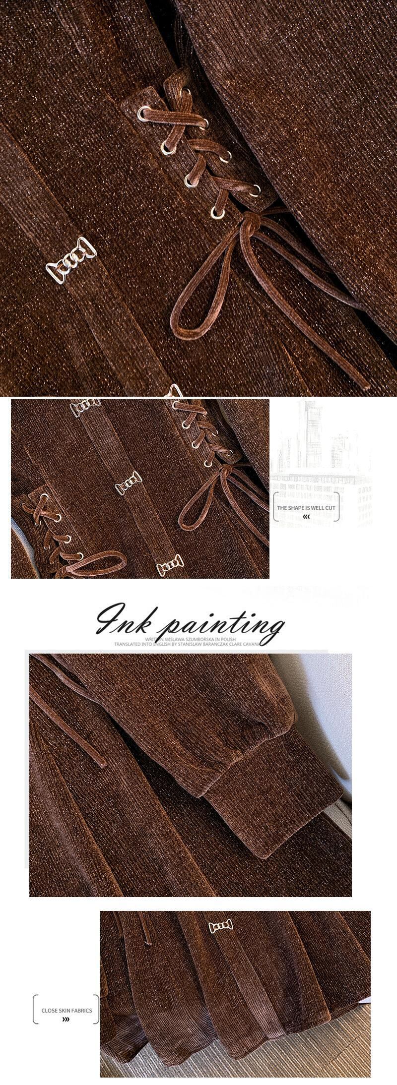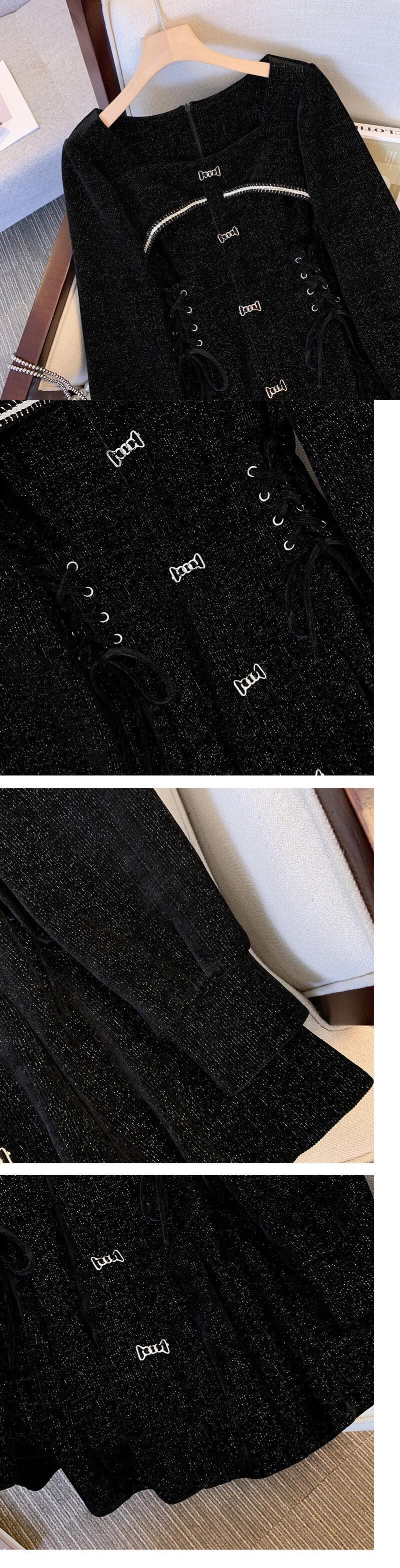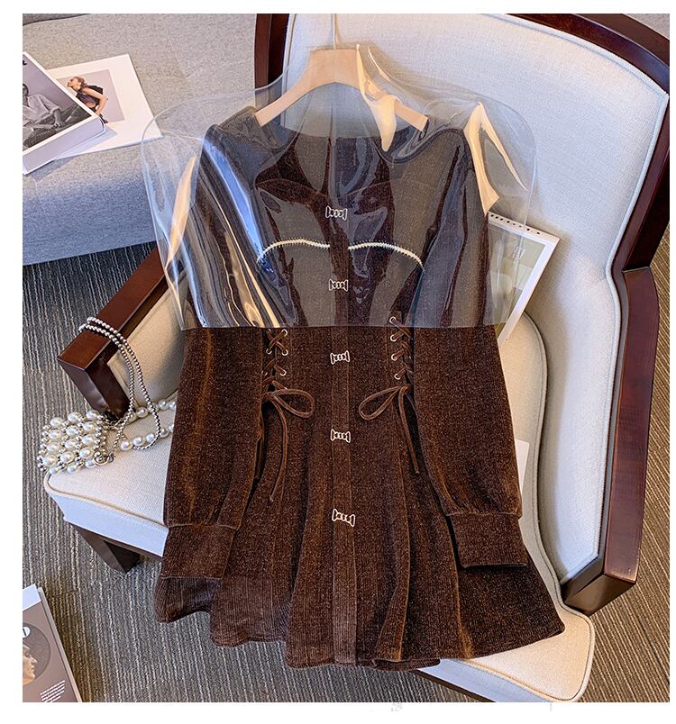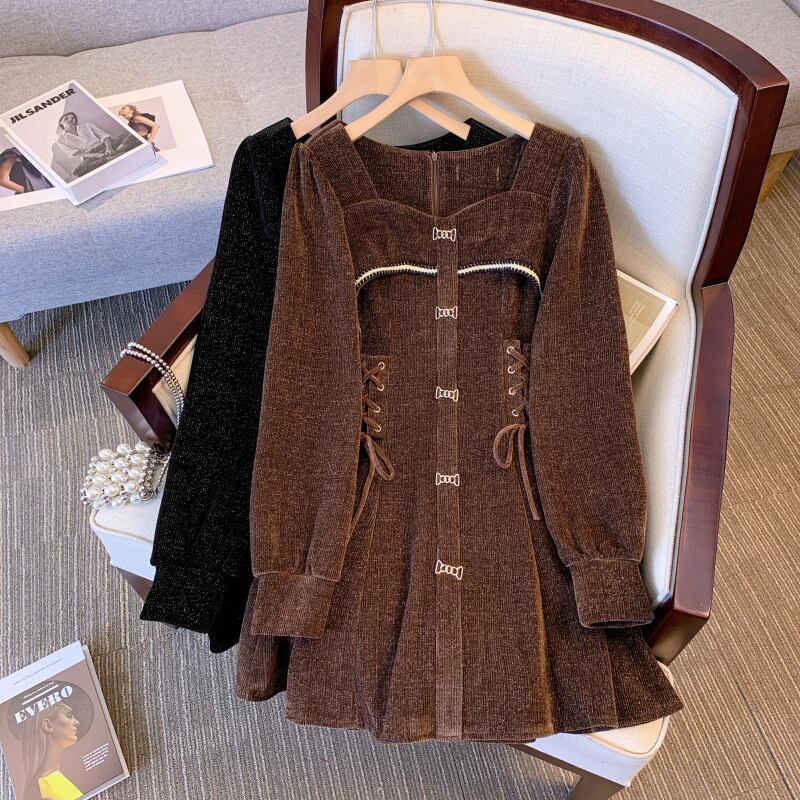 プラスサイズの婦人服2023ファットシスター春の新しいeignスタイルのスクエアカラードローストリングウエストカバーベリーカバーシェニールドレス 大きめサイズ スプリング 春物 スクウェア 8884138553166651