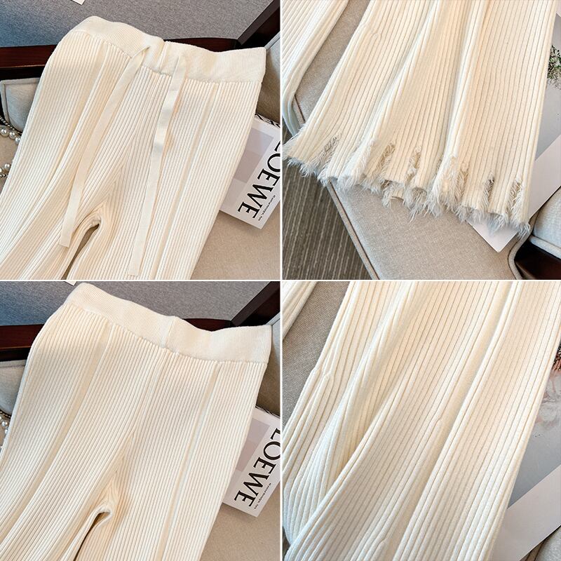 プラスサイズの婦人服 2023 太った姉妹春のカジュアルな外観薄いドレープ ファッション ピット ストリップ tel ニット マイクロベルボトム パンツ 大きめサイズ スプリング 春物 8884185229954601