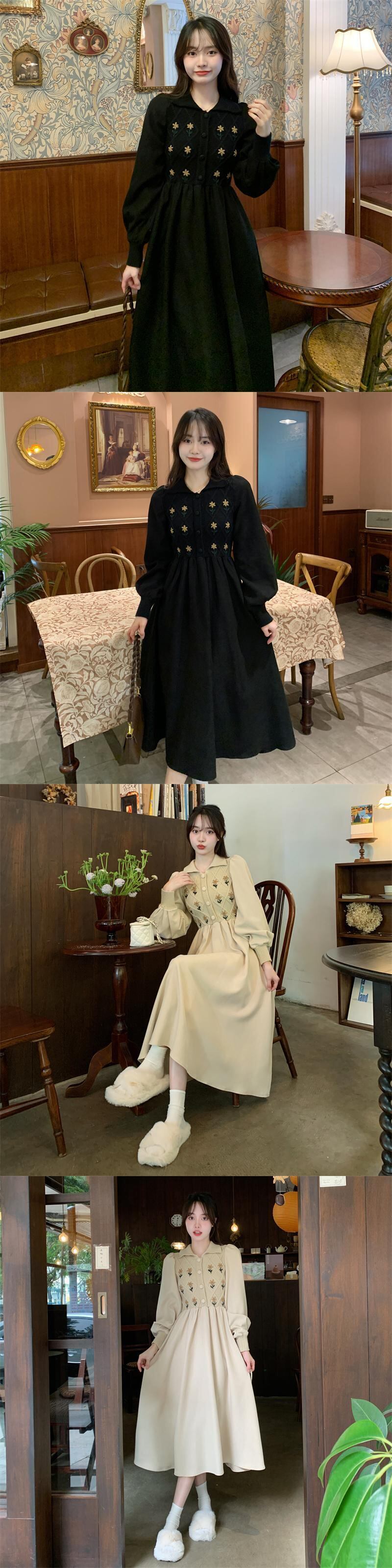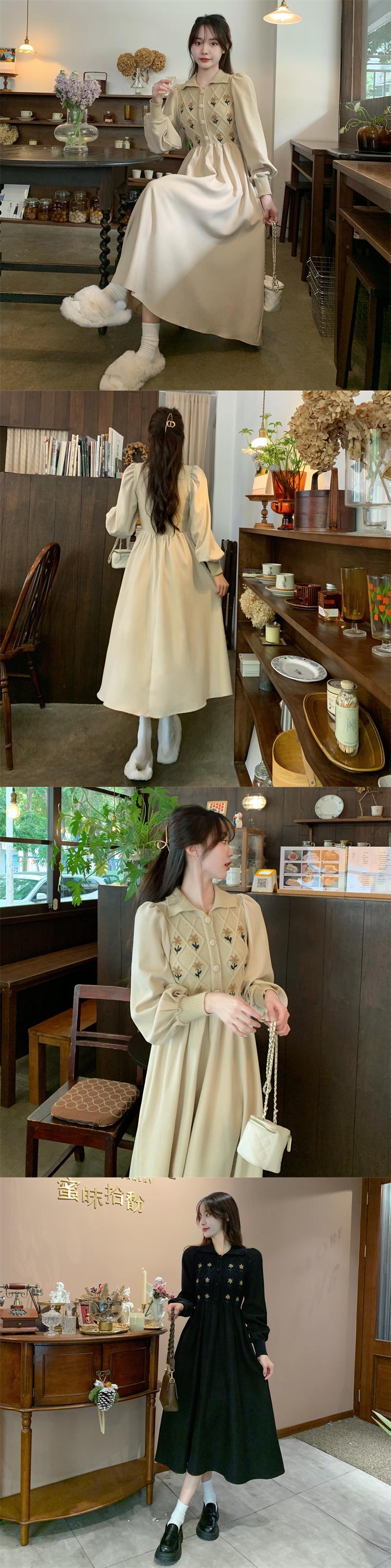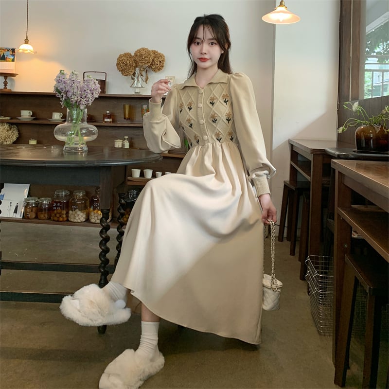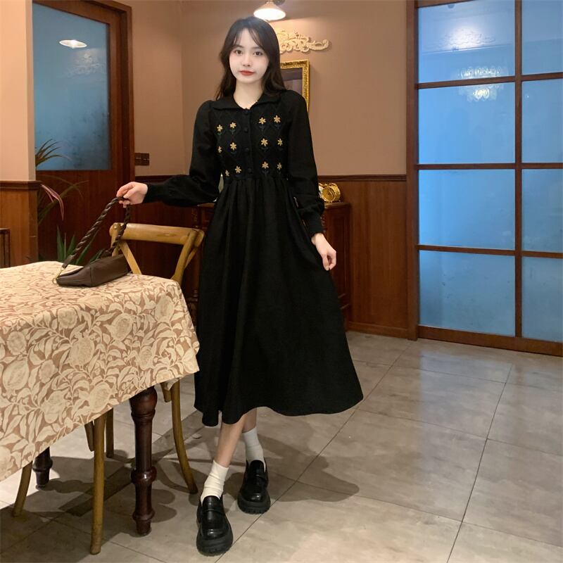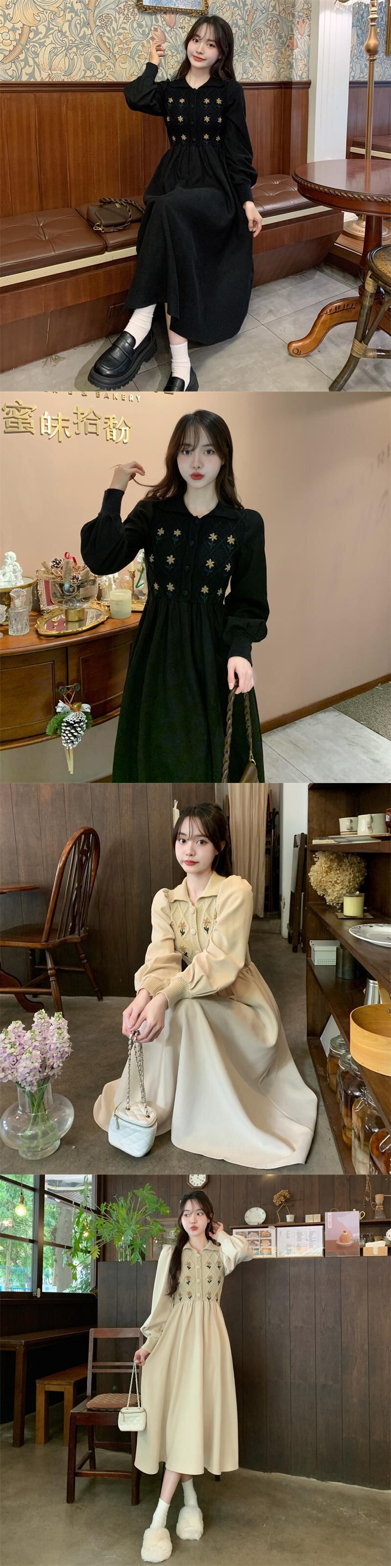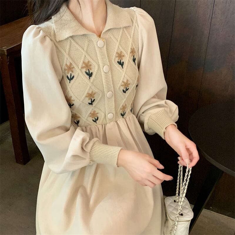 プラスサイズの婦人服 2023 ファットシスター春の新刺繍ニットステッチコーデュロイ偽ツーピースドレス女性 レッド 大きめサイズ スプリング 春物 8884187880843834