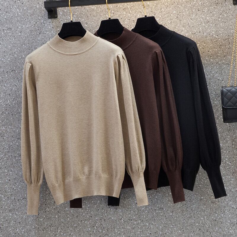 プラスサイズの婦人服 2023 ファットシスター春の新作ハーフハイカラー eign スタイルニットトップ痩身オールマッチボトムシャツ 大きめサイズ スプリング 春物 8884113510232537
