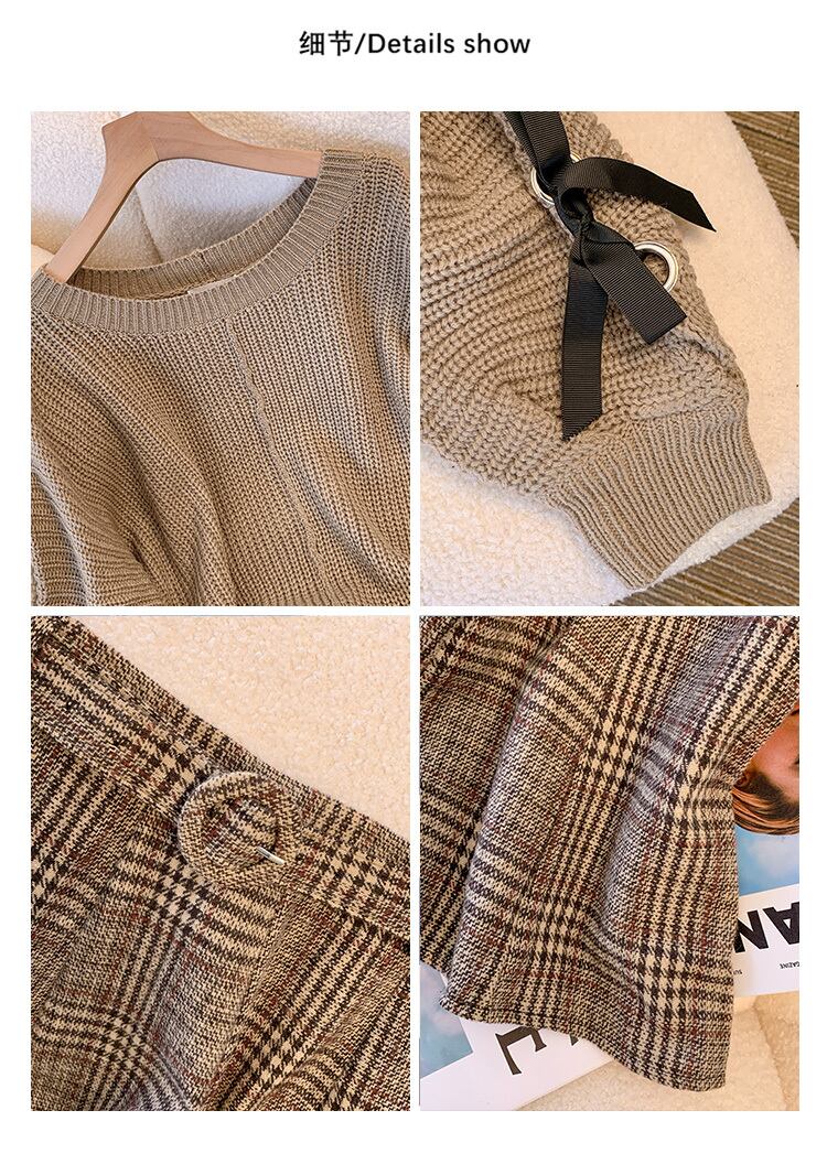 プラスサイズの婦人服2023ファットシスター春の新作ルーズで薄いちょう結びセータースカートツーピーススーツ リボン 大きめサイズ スプリング 春物 8884149049828638