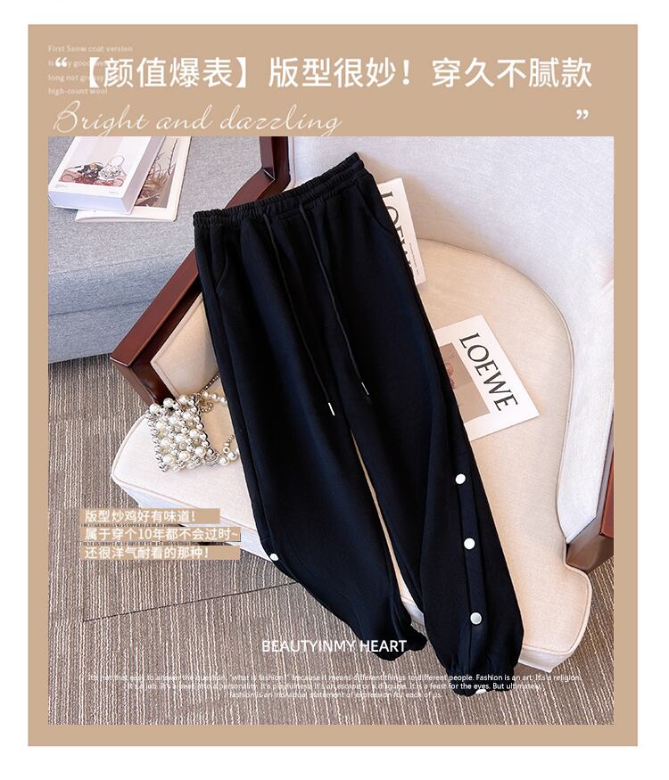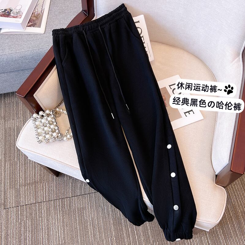 プラスサイズの婦人服 2023 脂肪姉妹春の新ファッションハーレムパンツ緩いカジュアルスリムボタンスウェットパンツ女性 大きめサイズ スプリング 春物 8884140027845923