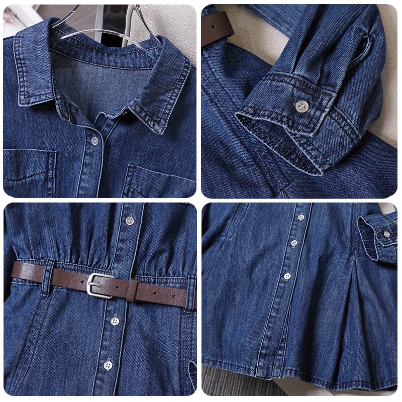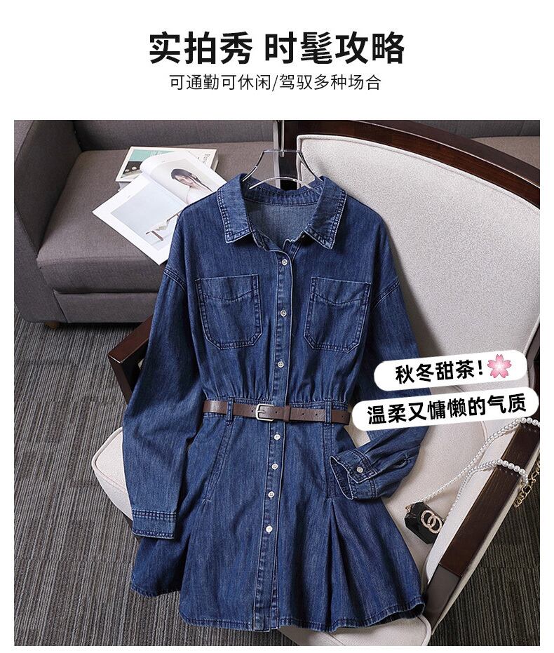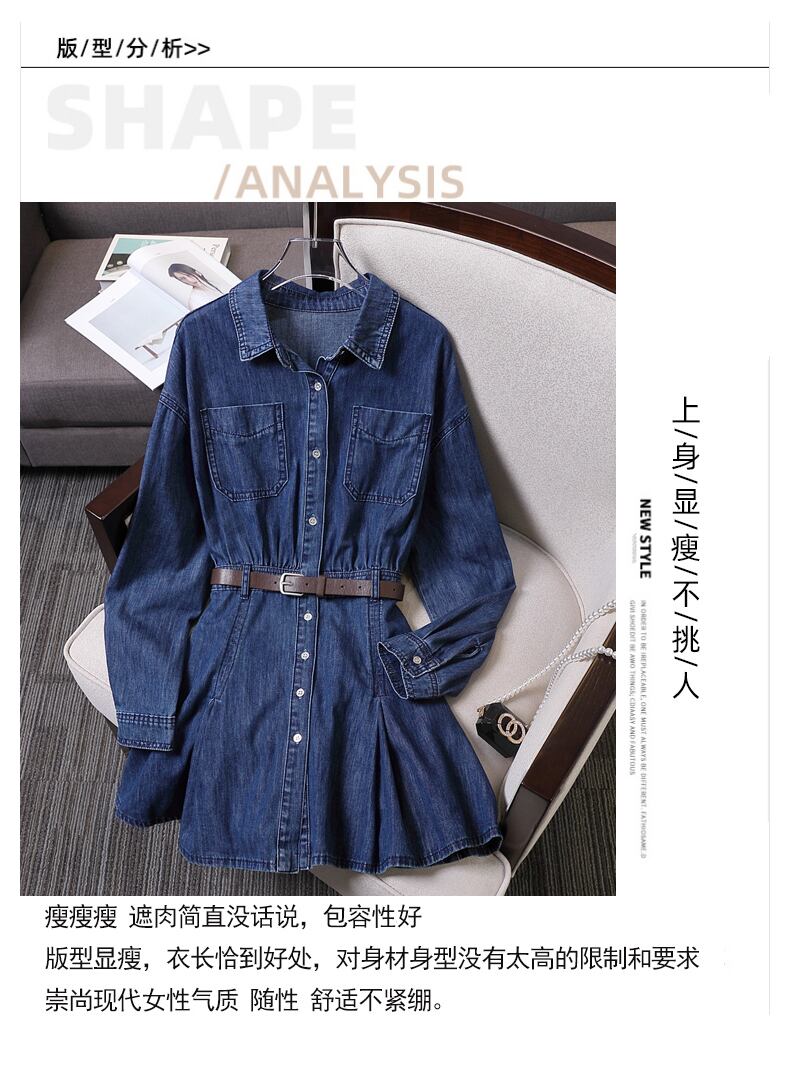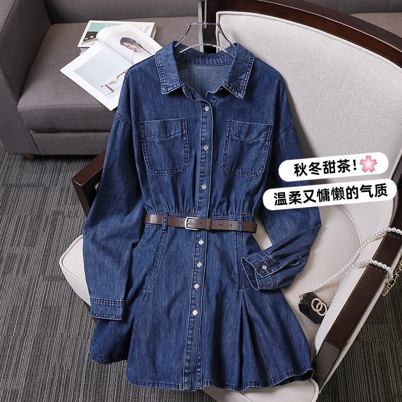 プラスサイズの婦人服 2023 ファットシスター春の新バージョンファッション年齢減少ウエスト痩身長袖デニムドレス ロング 大きめサイズ スプリング 春物 8884183773032360