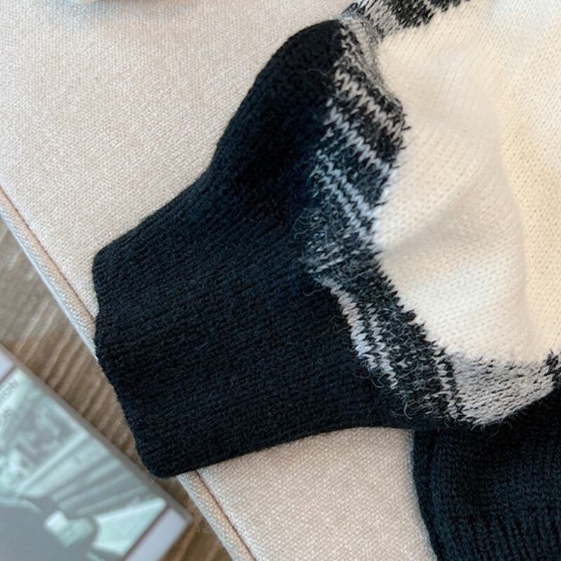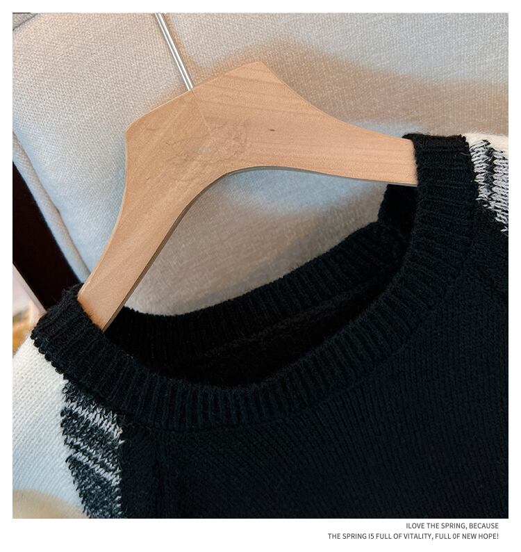 大きいサイズの婦人服 2023 春の新しいファットシスター年齢減少バージョンルーズなデザインセンスカラーマッチング長袖ニットセーターの女性 ロング 大きめサイズ スプリング 春物 8884118522558868