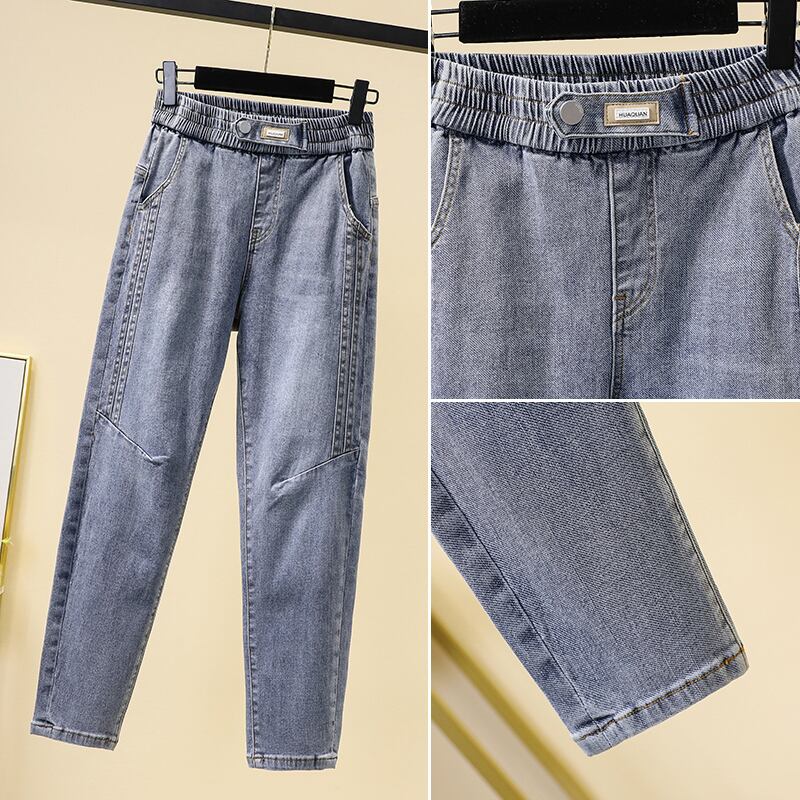プラスサイズの婦人服 2023 脂肪姉妹春の新パパジーンズ弾性ハイウエストルーズカジュアルハーレムパンツ女性 ハイウェスト エラスティック 伸縮 大きめサイズ スプリング 春物 8884192222832815