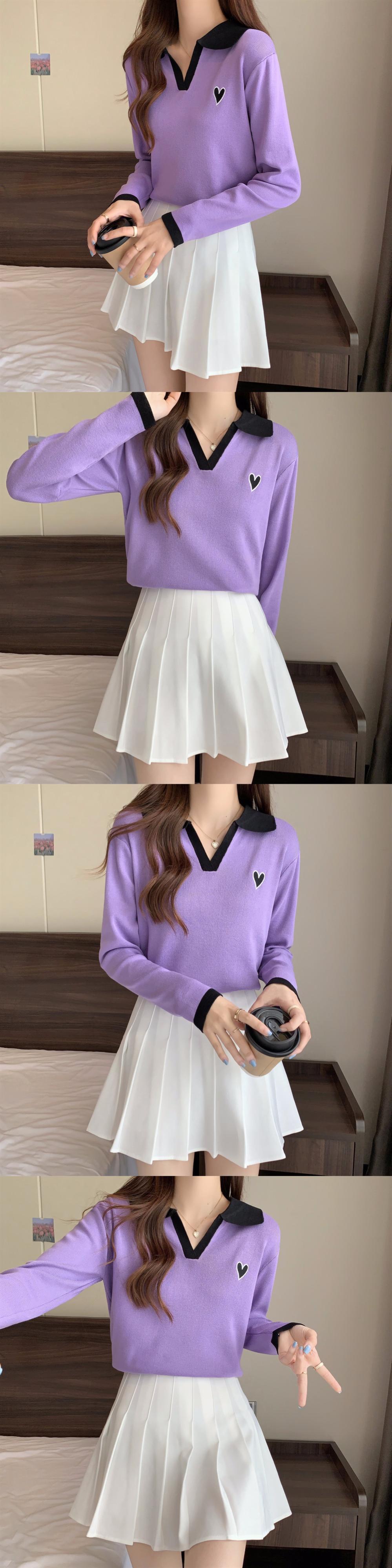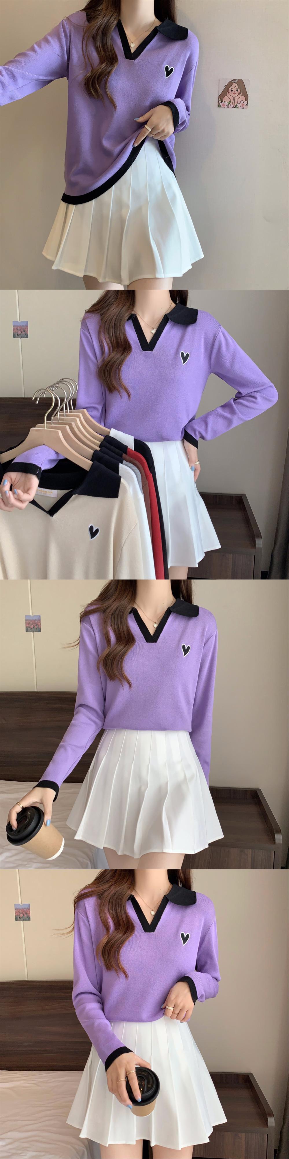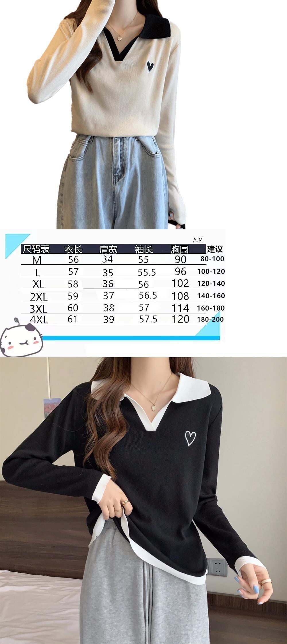 大きいサイズの婦人服 2023 春服脂肪姉妹新しい痩身コントラストカラー刺繍ポロ襟長袖ニットトップ女性 ロング 大きめサイズ スプリング 春物 8884110817143779