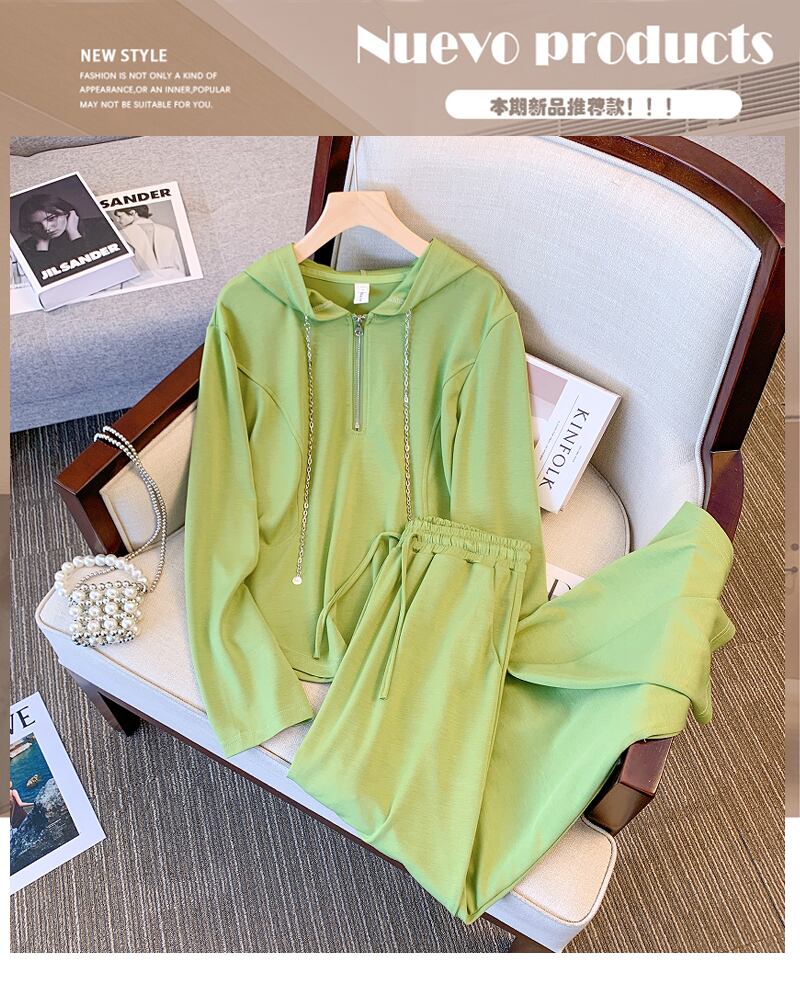 大きいサイズの婦人服 2023 ファット シスター 春の新しいファッション 年齢を減らすトップ 見せて薄い体をカバーするカジュアルなズボン 2点セット 大きめサイズ スプリング 春物 8884194067408228