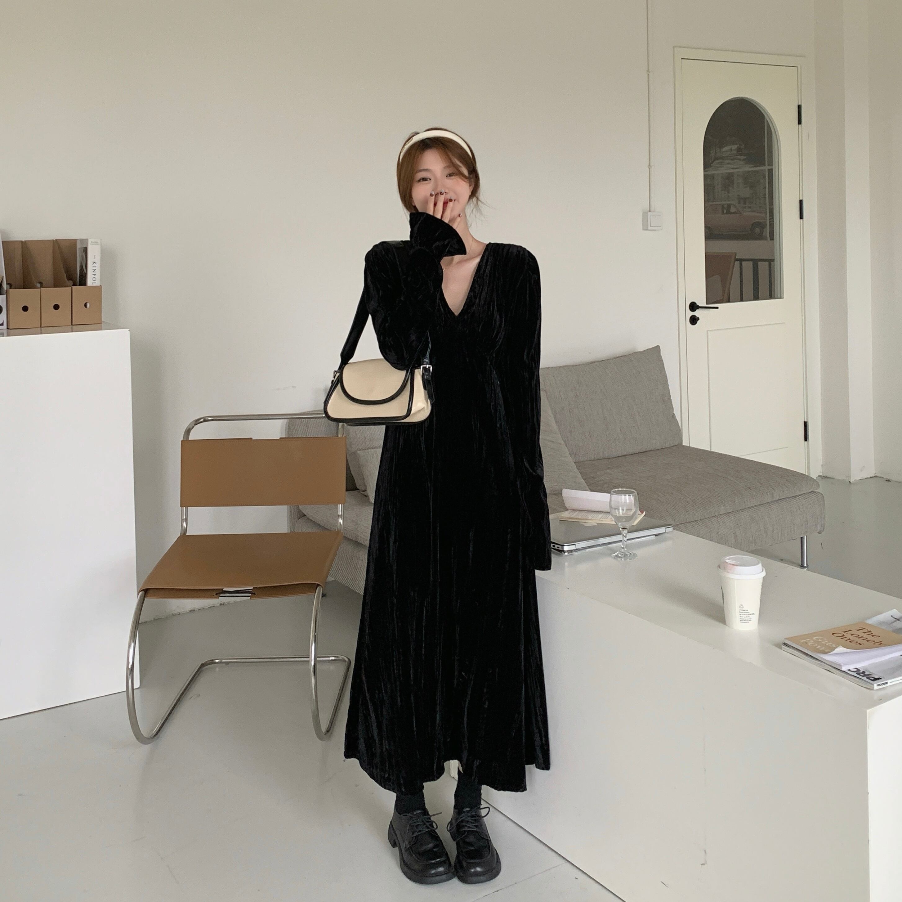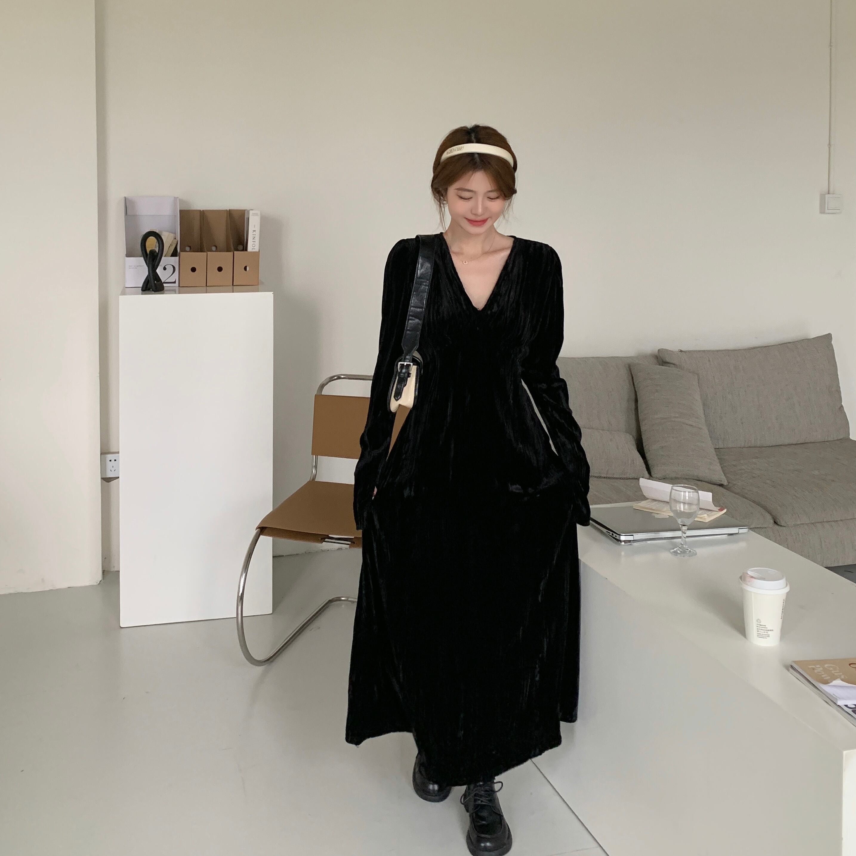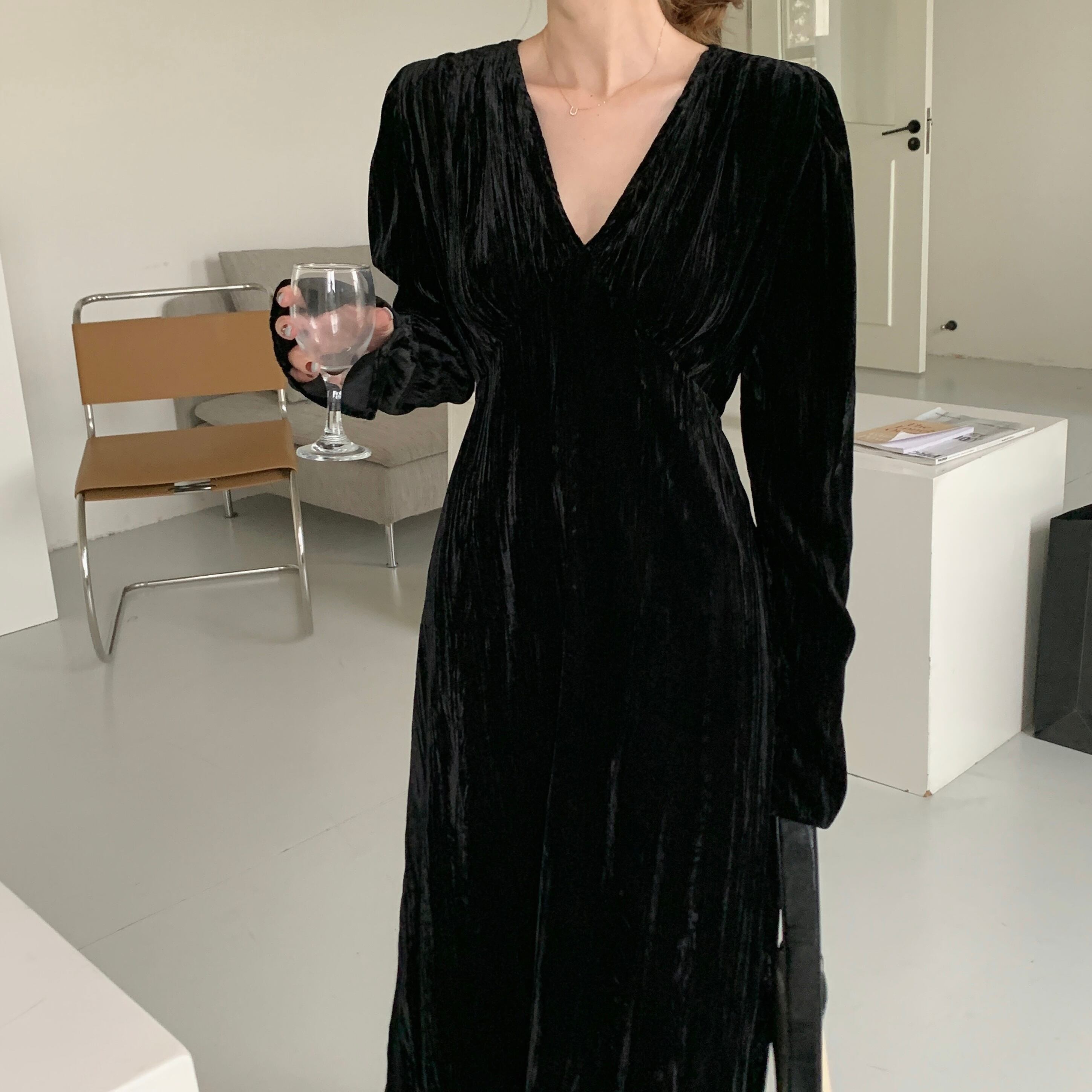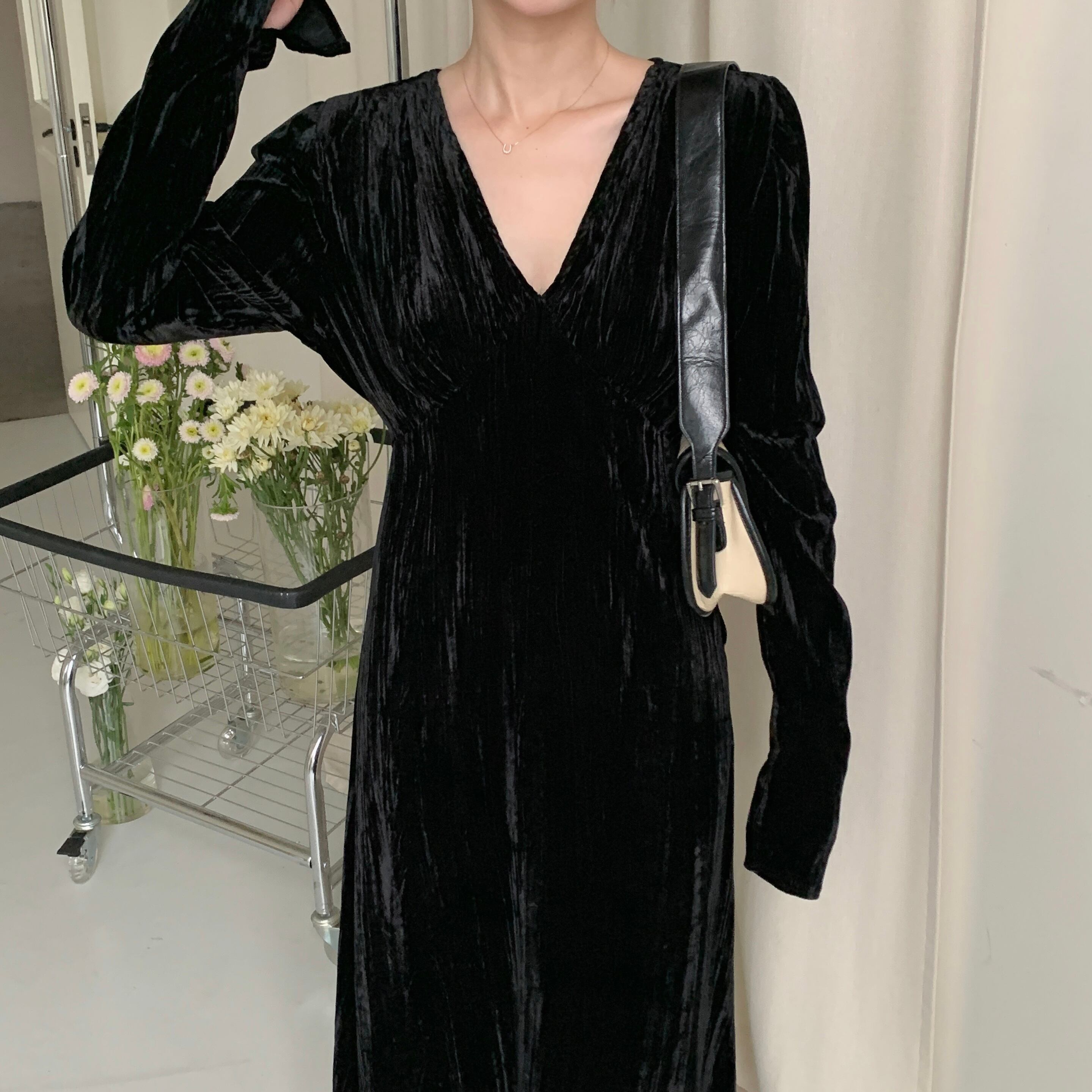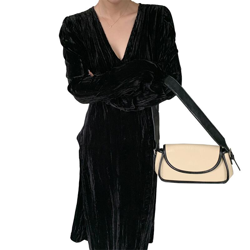 大サイズの女性 2023 脂肪姉妹春ドレス黒気質ロングスカートフレンチベルベットドレススカート ブラック 大きめサイズ スプリング 春物 8884178761121300