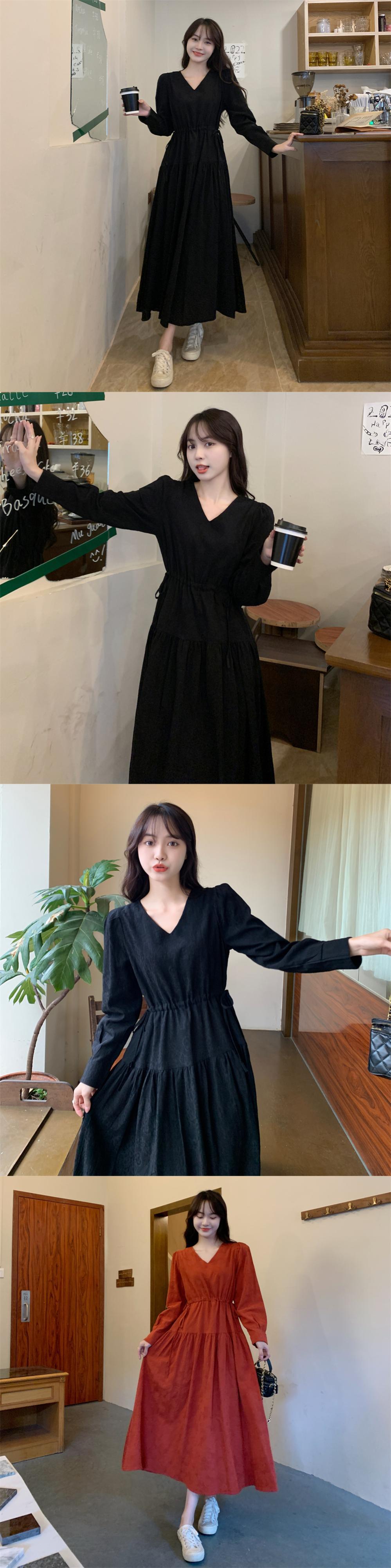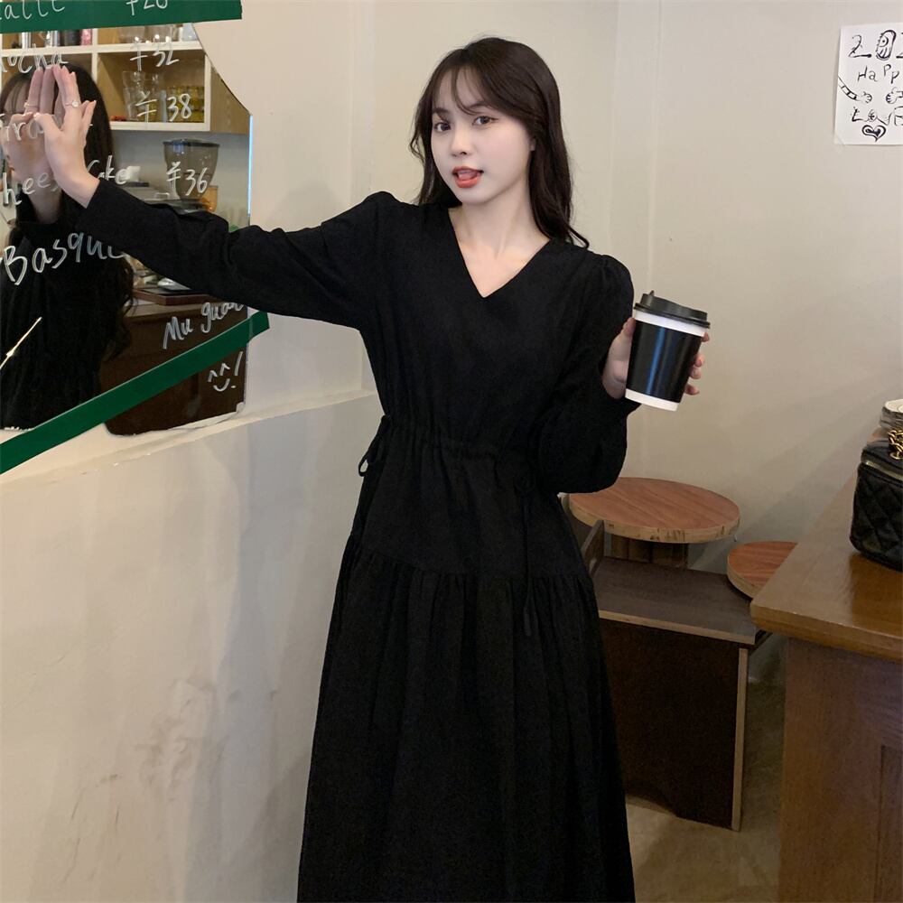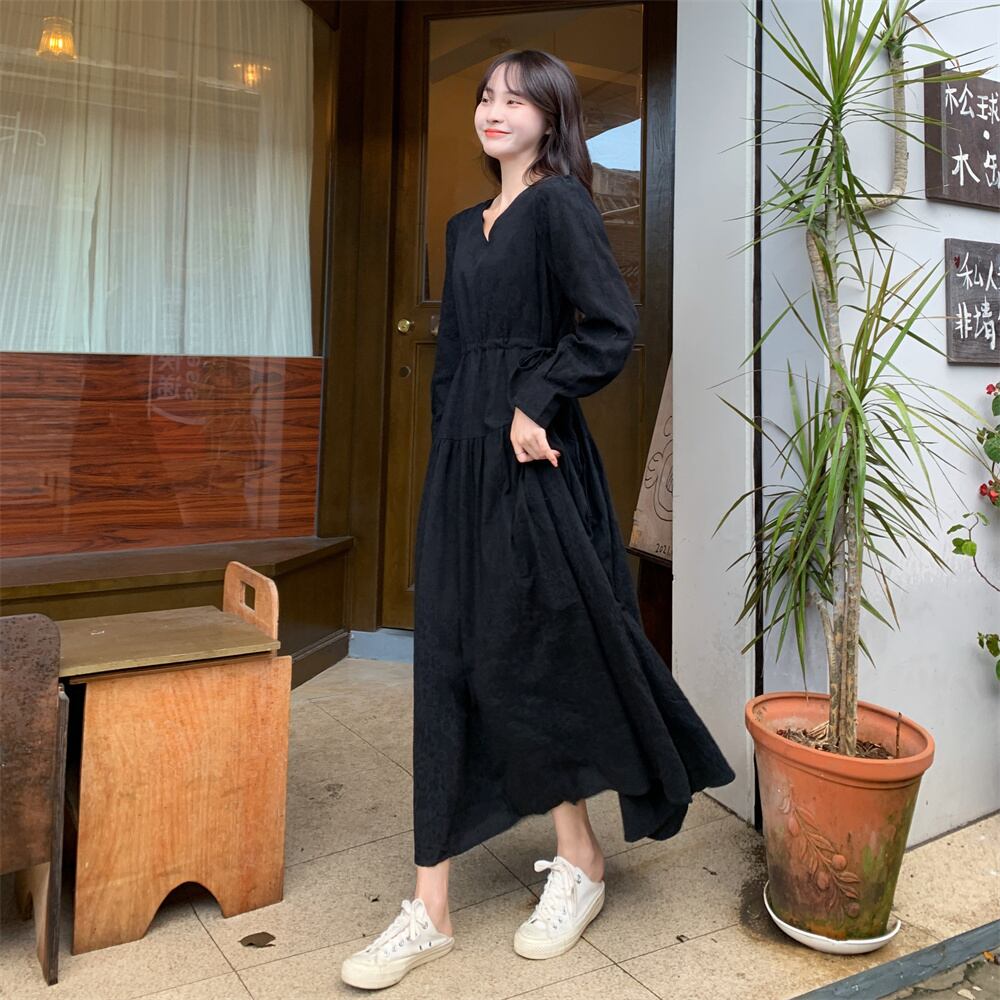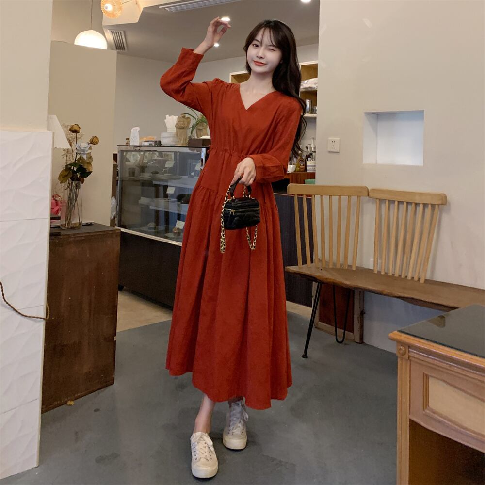 プラスサイズの婦人服2023ファットシスター春の新しいファッションの年齢を減らすロングスカートの気質スリムなウエストと薄いVネックのドレス 大きめサイズ スプリング 春物 8884115595786932