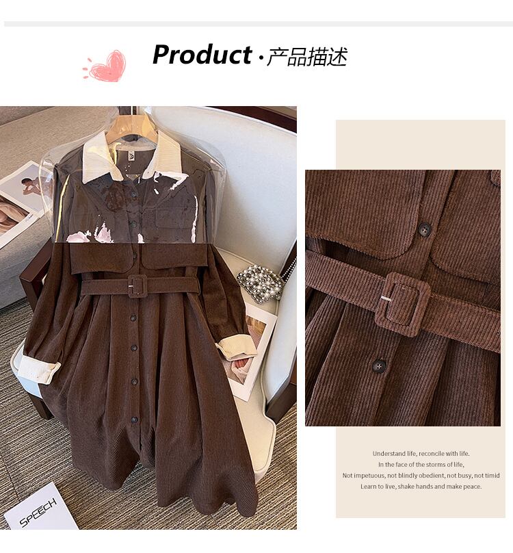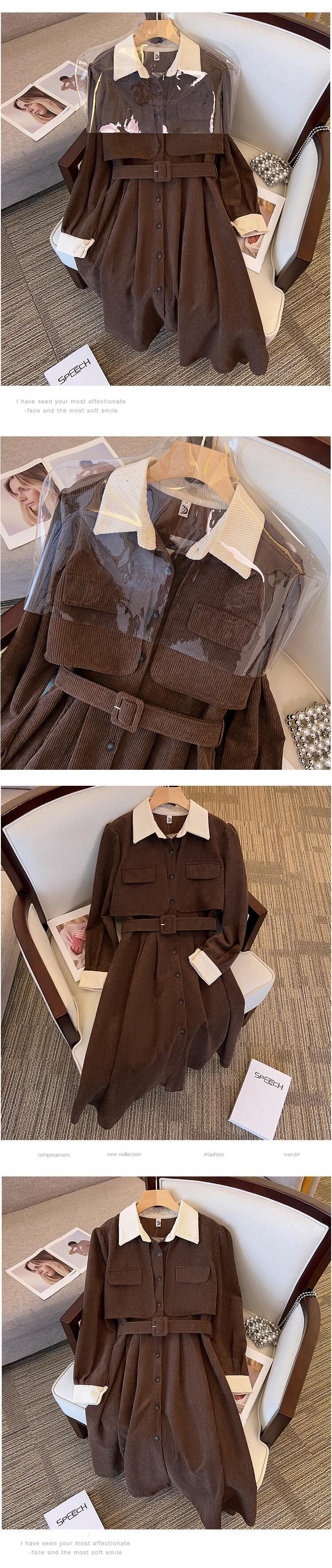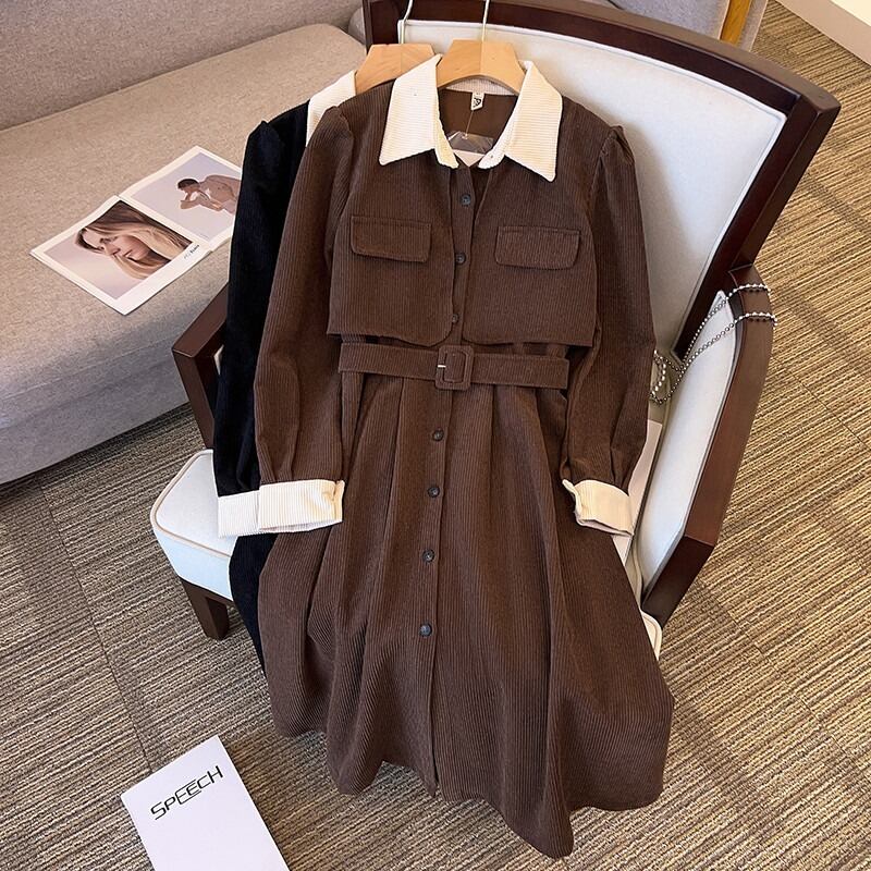 大きいサイズの婦人服 2023 トレンディな女性の春の新しい太った姉妹のファッションの年齢を減らすすべての試合の偽のツーピースのコントラストカラーのドレスの女性 大きめサイズ スプリング 春物 8884158764036067