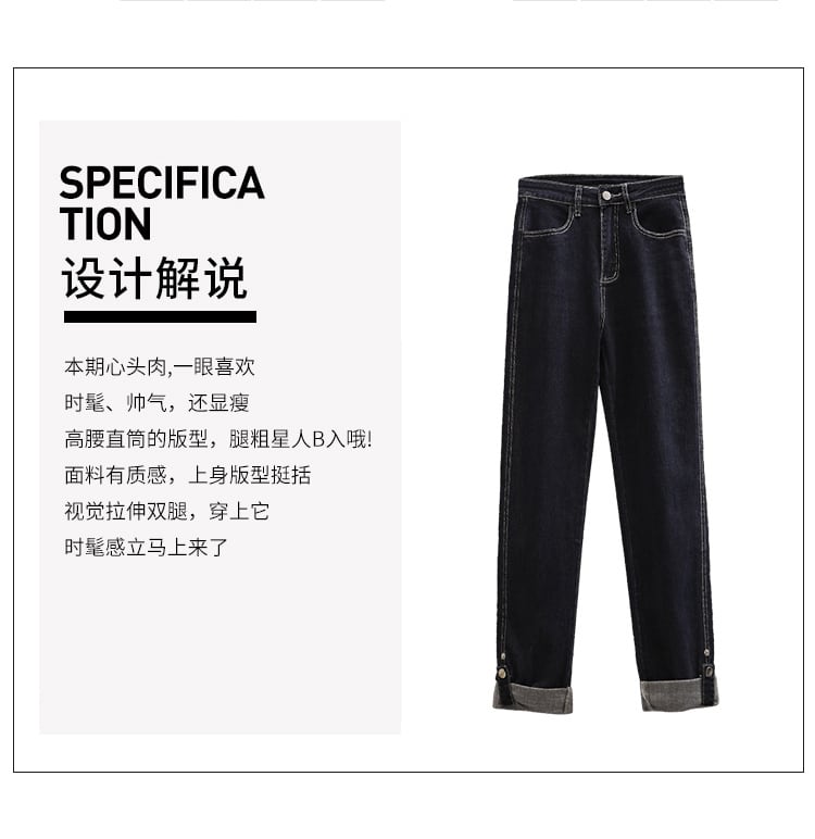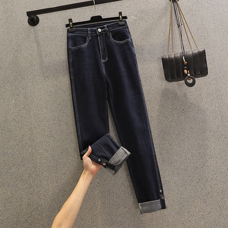 プラスサイズの婦人服 2023 ファットシスター春の新ファッション緩いストレートチューブロールエッジジーンズオールマッチスリムなズボン 大きめサイズ スプリング 春物 8884178630149690