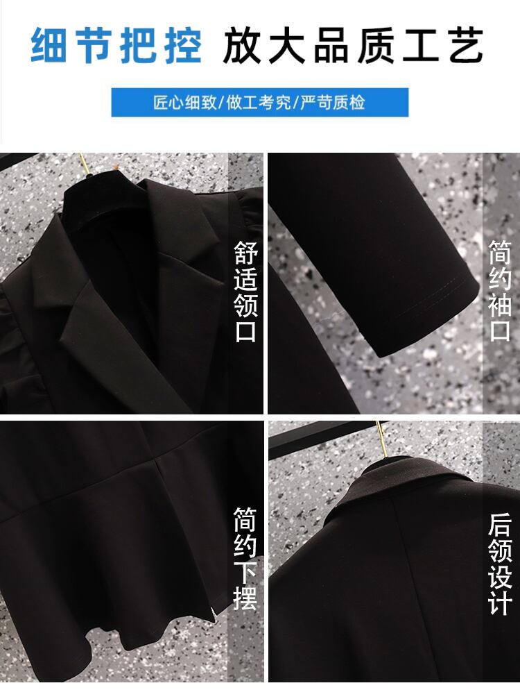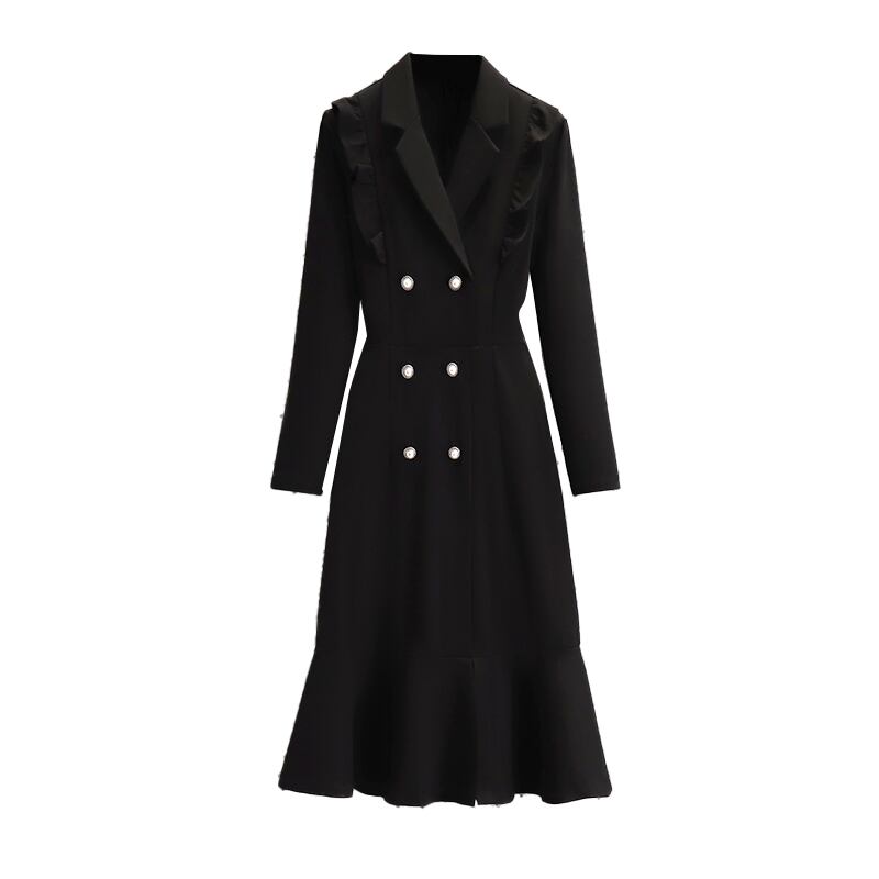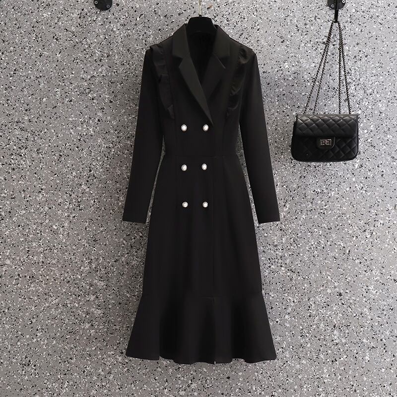 プラスサイズの婦人服 2023 脂肪姉妹春の新しいウエストスーツフィッシュテールスカートフリルダブルブレストドレススカート 大きめサイズ スプリング 春物 8884134488367505