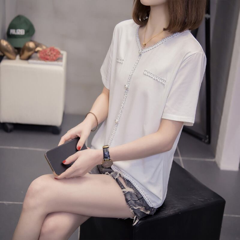プラスサイズの婦人服 2023 夏の新しい太った姉妹バージョンゆるい年齢を減らすトップスカバーベリーシックな半袖 Tシャツ 大きめサイズ サマー 夏物 8884199228689817