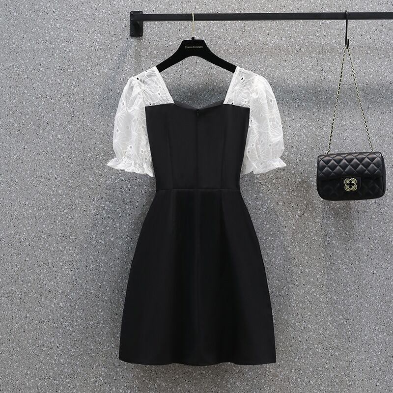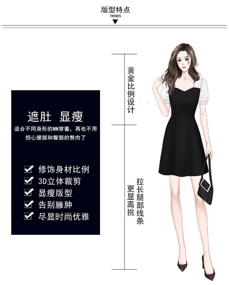 プラスサイズの婦人服 2023 トレンディな女性の夏の新しいファットシスターレーススプライシングをカバーするために肉オールマッチスリムヘップバーンドレス女性 大きめサイズ サマー 夏物 8884136761168986