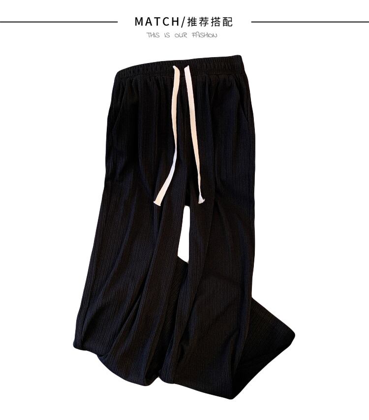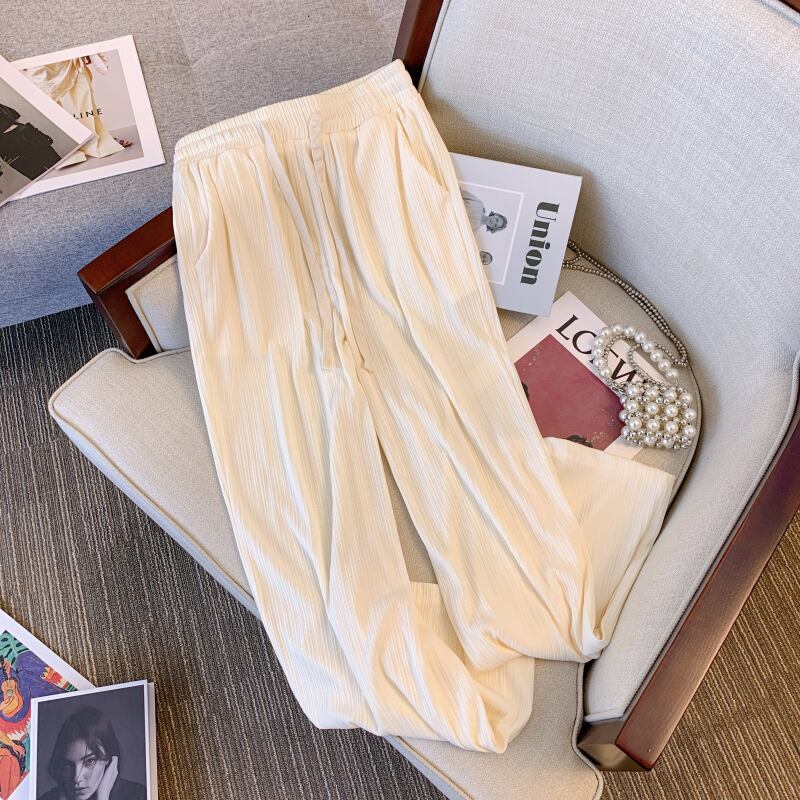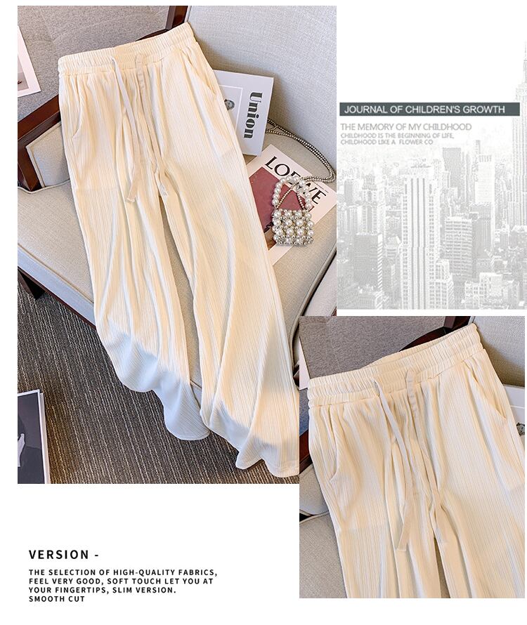 プラスサイズの婦人服 2023 春服脂肪姉妹新しいアイスシルクワイドレッグパンツ薄手のハイウエストカジュアルストレートレッグパンツ ハイウェスト 大きめサイズ スプリング 春物 8884159432559901