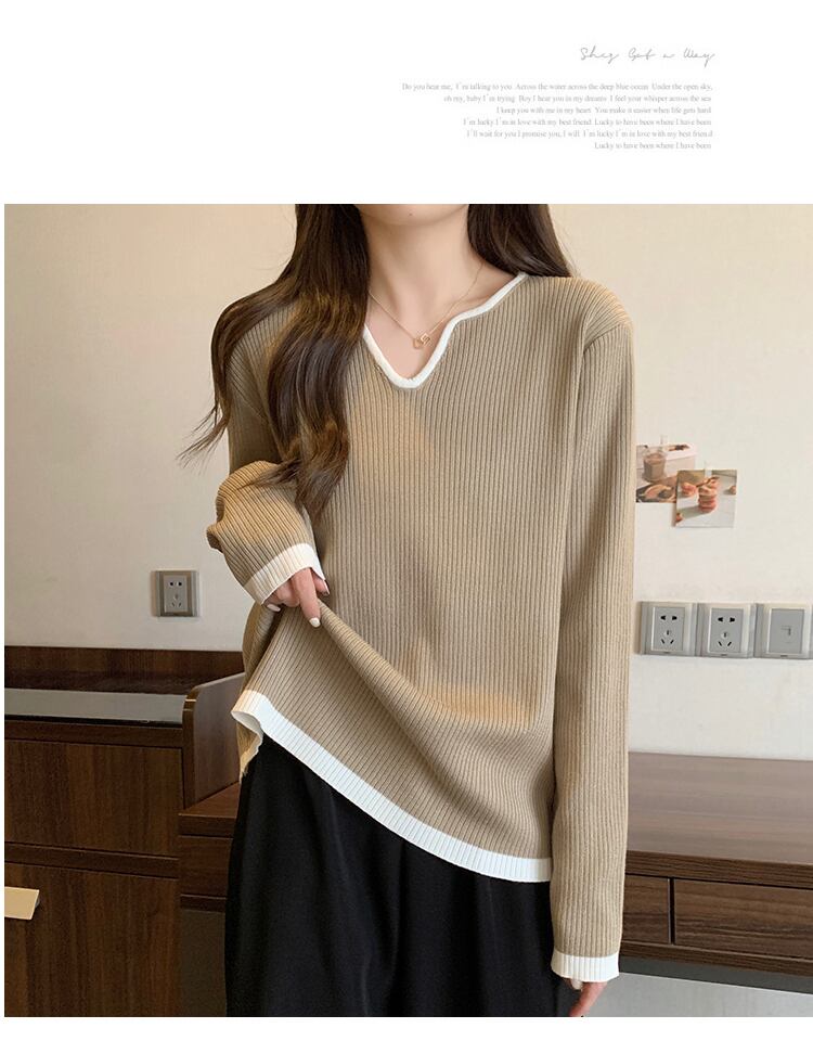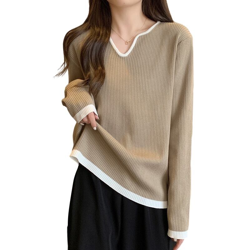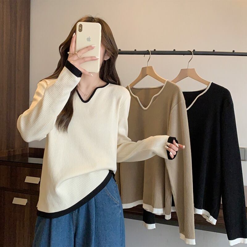 大きいサイズの婦人服 2023 トレンディな女性の春の新しい太った姉妹 eign スタイル V ネック緩い痩身オールマッチ底入れニットウェア女性 大きめサイズ スプリング 春物 Vネック 8884113401012175