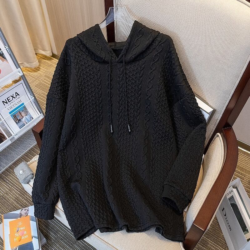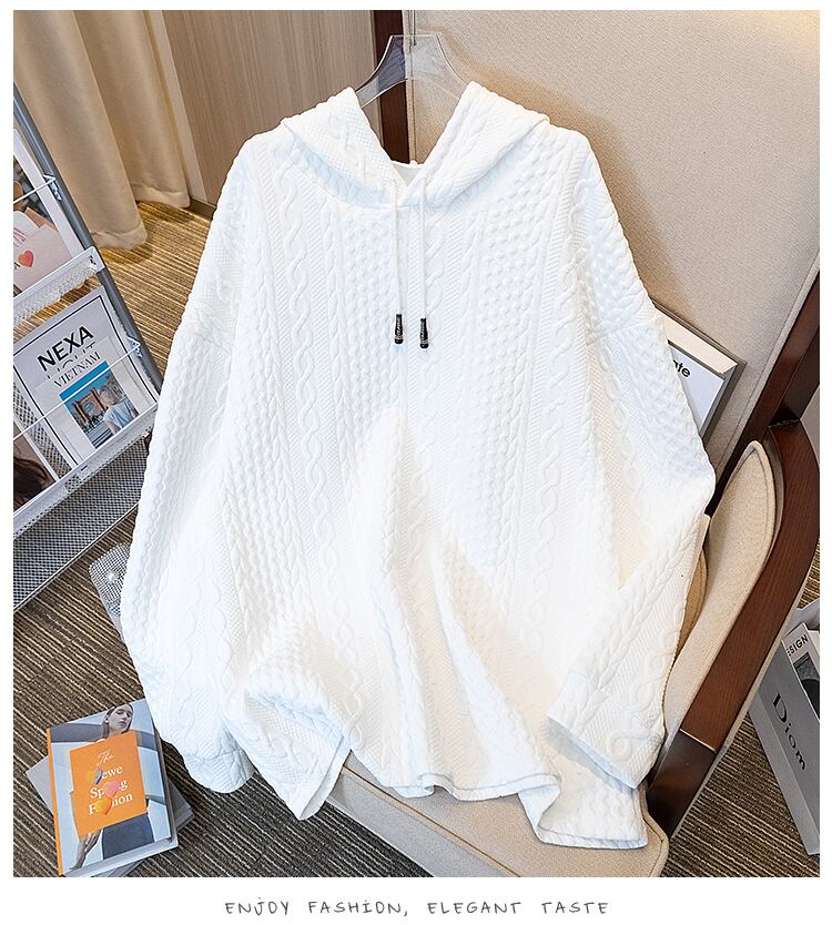 大きいサイズの婦人服 2023 トレンディな女性の春の新しいファットシスター長袖のフード付きのゆったりとした余暇の年齢と薄いオールマッチのセーターを減らします ロング 大きめサイズ スプリング 春物 8884110036364304