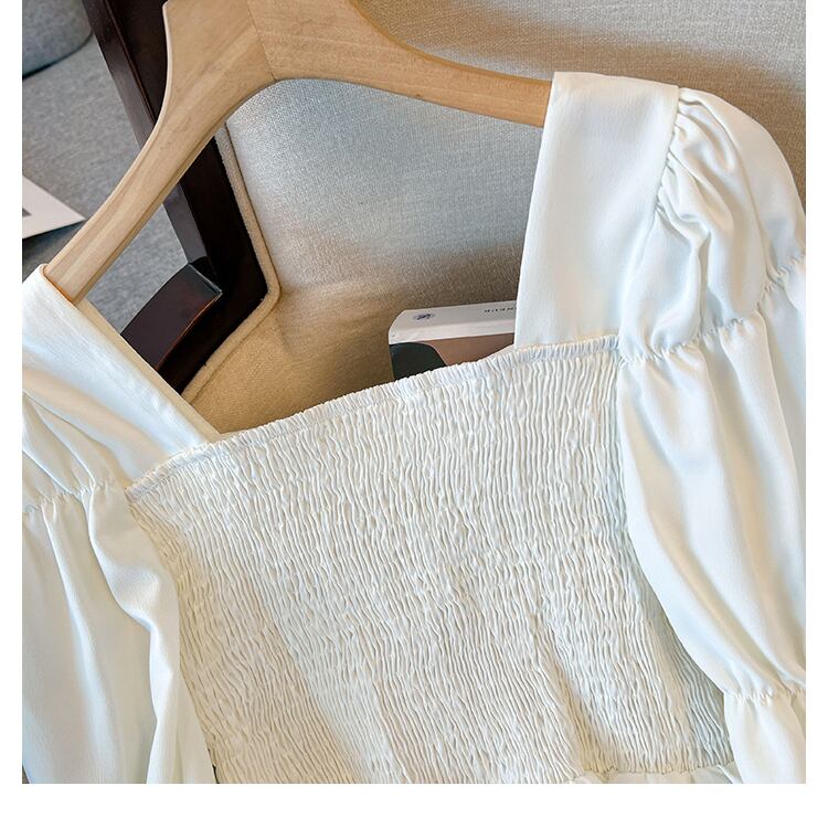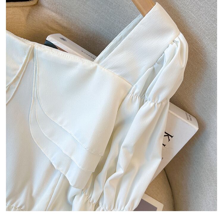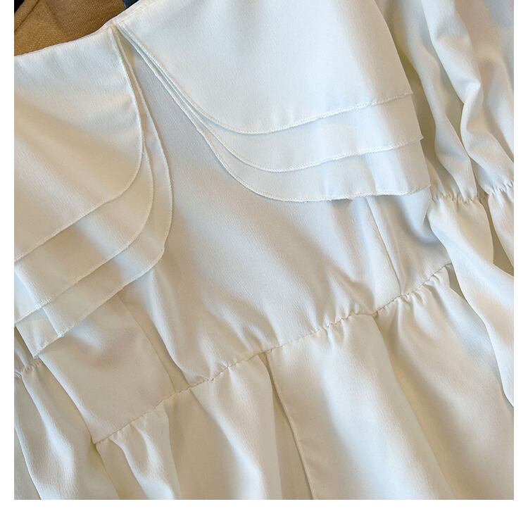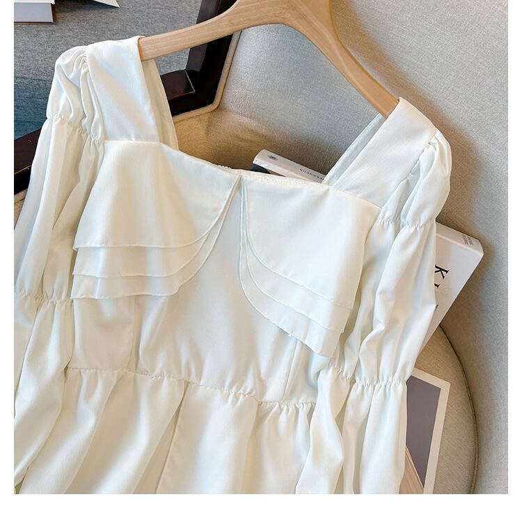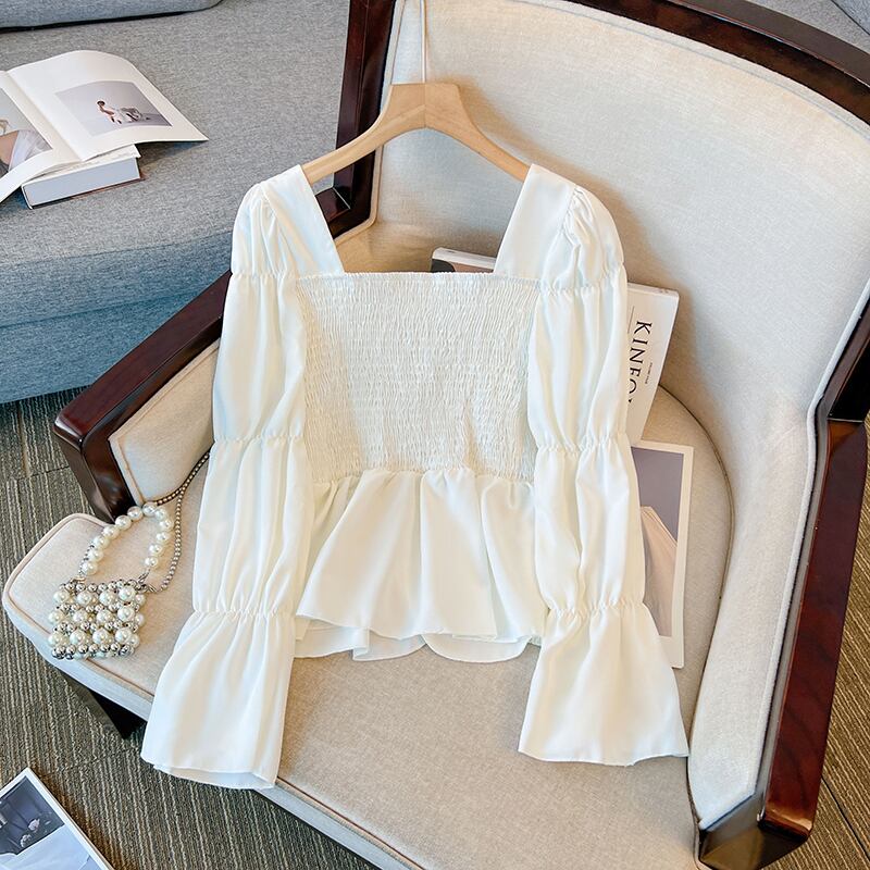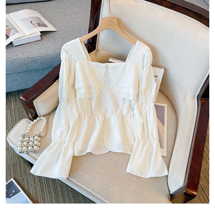 大きいサイズの婦人服 2023 春の新しい太った姉妹フレンチ フリル スクエア カラー長袖シャツ肉をカバーし、薄く見える ロング ラッフル 大きめサイズ スプリング 春物 スクウェア 8884150900859786